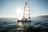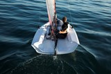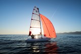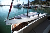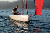 Designed by Sam Manuard, the First 14’s planing hull strives to achieve the best compromise between speed and stability. The dinghy’s double centre-board casing means that she can be sailed solo (centreboard further aft and cat rig) or two-up (centreboard further forward and with a set of three sails). With a sail area varying between 8.5 and 21.5 m², the First 14 is highly adaptable and suited to all levels of ability. Designed for a wide range of crew sizes and weights, the cockpit has several seat heights. With a set of removable wheels, every detail on the First 14 aims to simplify sailing in every way.