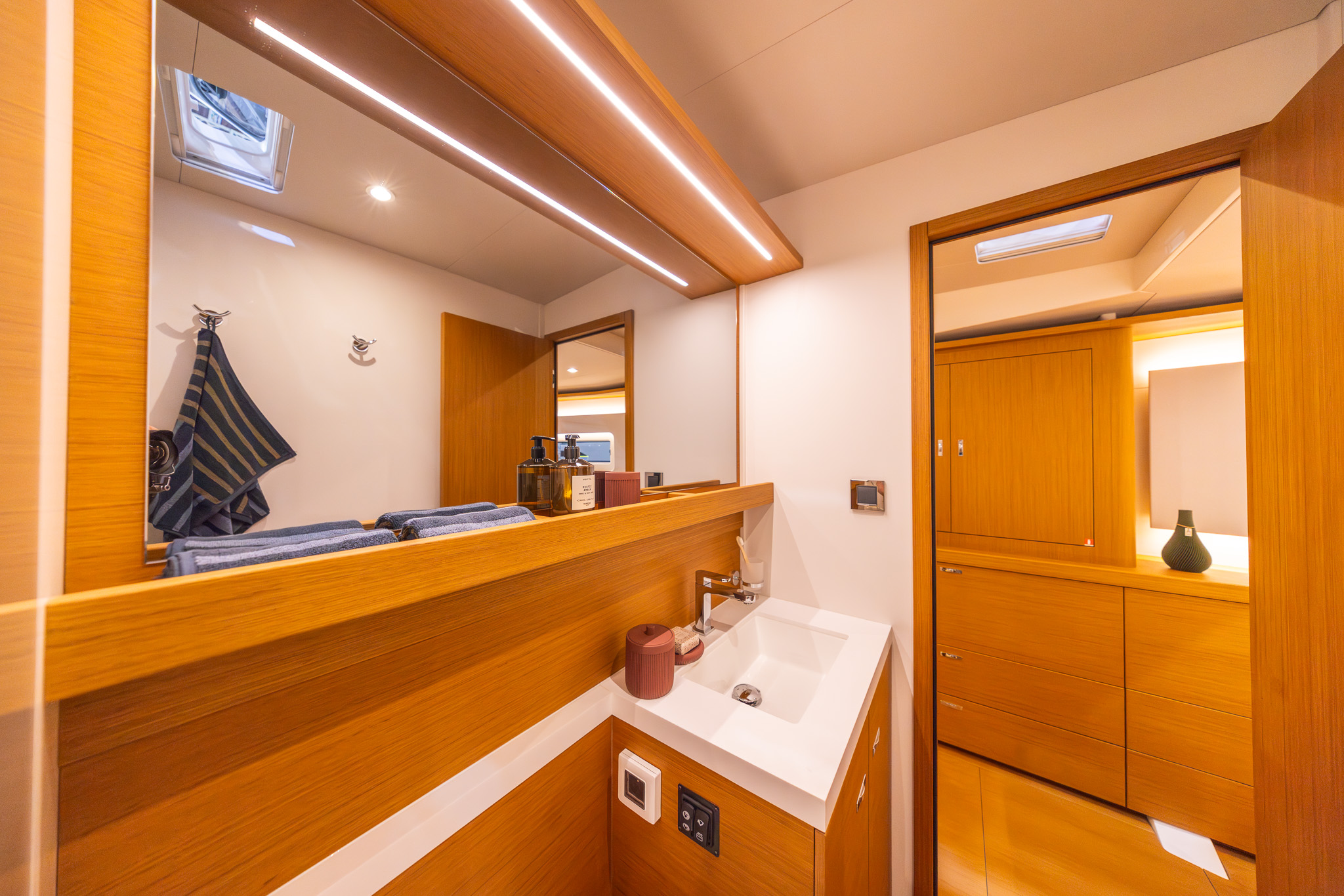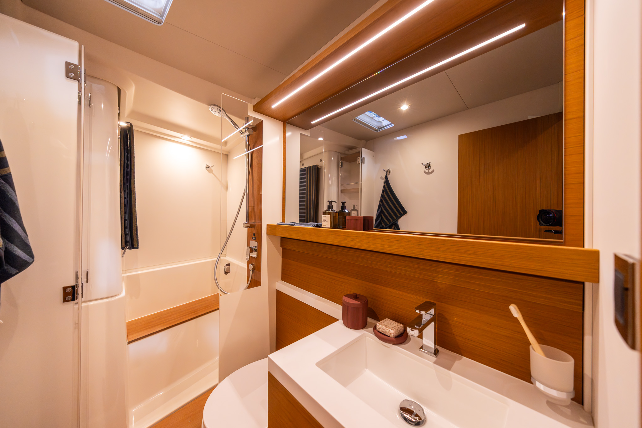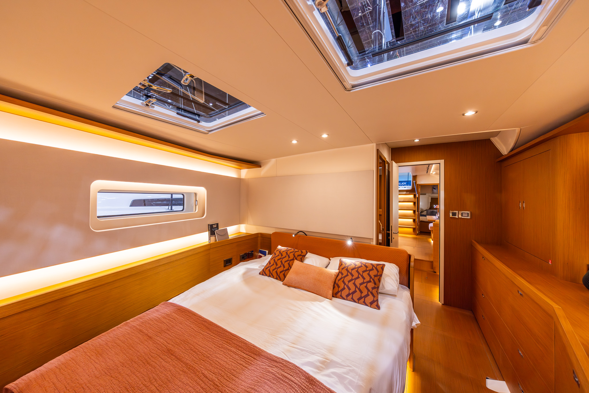 Ship Control technology control numerous functions from the navigation screens (or from a tablet or smartphone using a dedicated app):- Anchoring and masthead navigation lights- Lighting of boom, spreaders (optional), underwater spotlights (optional)- Courtesy light in cockpit- Direct lighting- Deck searchlight- Inverter- Fridge- Water unit- Bilge pumps- Air conditioning (Option)- Generator (Option)- Audio- Control of levels (diesel, fresh water, black water)- Battery monitoring