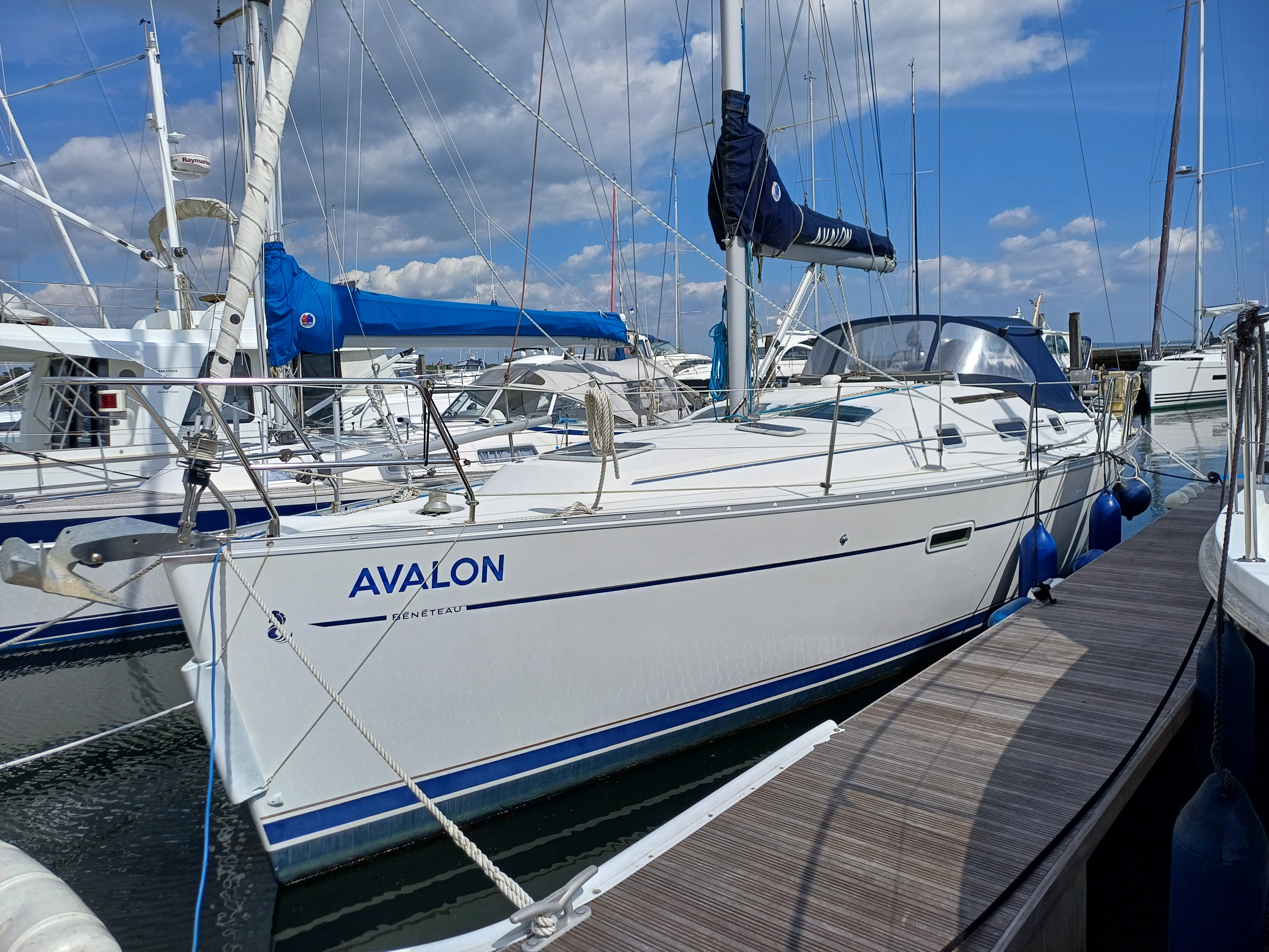 Beneteau Oceanis 343 Clipper bult in 2005 sleeps seven in a two cabin layout plus saloon. 'Avalon' comes with a Yanmar 29hp engine on a shaft drive, cherry interior with blue upholstery, heating, autopilot, Raymarine electronics, midship cleats, opening side gates and much more. A very popular cruising boat ideal for a couple, family and friends