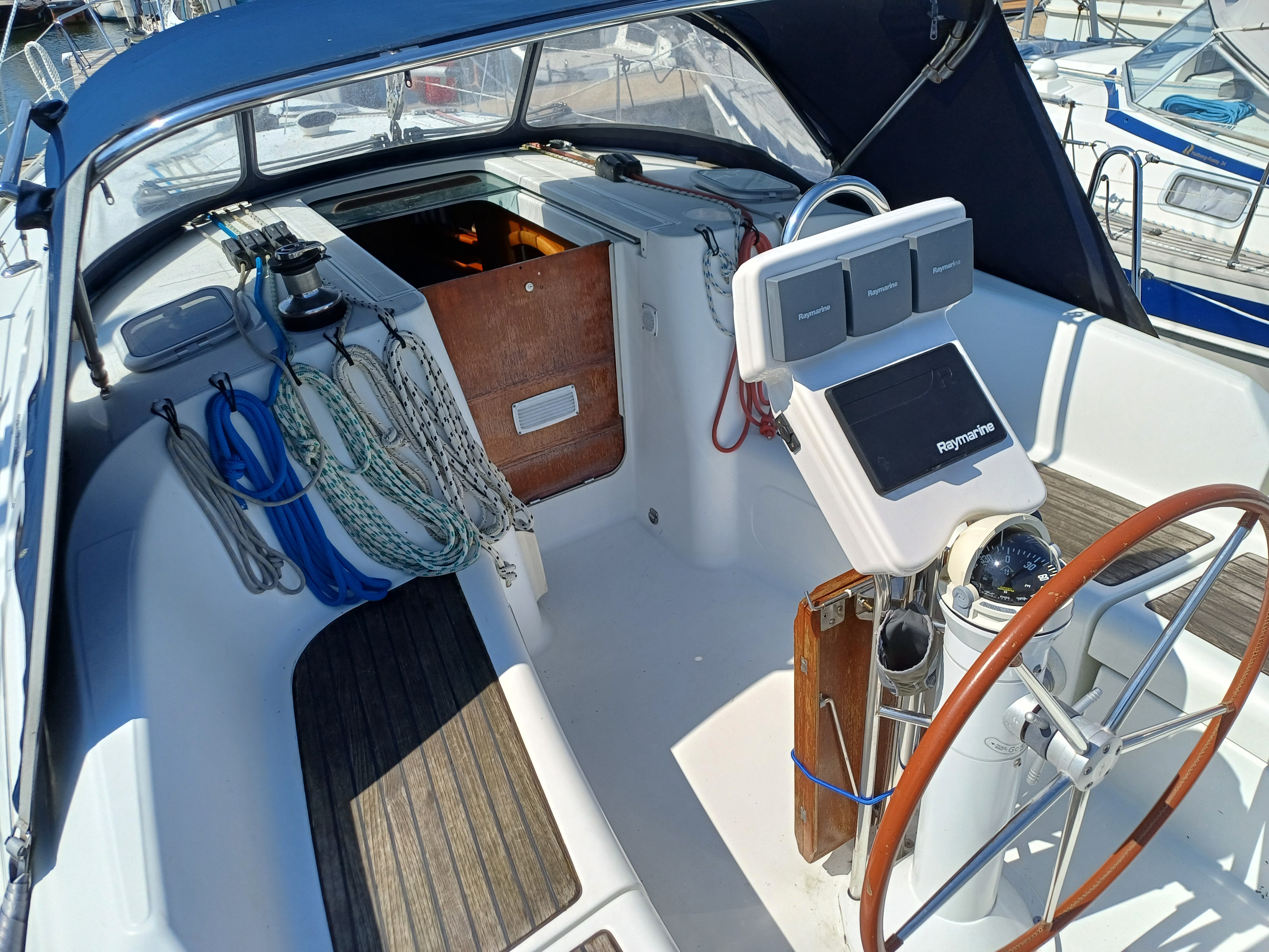 Teak laid to cockpit seats