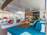 The Lagoon 55 has been designed around sailing performance and ease of use, combined with supreme comfort and luxury finish, this new design will appeal to those wishing to stretch their cruising legs on long term liveaboard adventures and those simply wanting a comfortable family boat with space and style. The open cockpit with optional hydraulic bathing platform provides a 'terrace on the water', with incomparable cockpit space and open style..