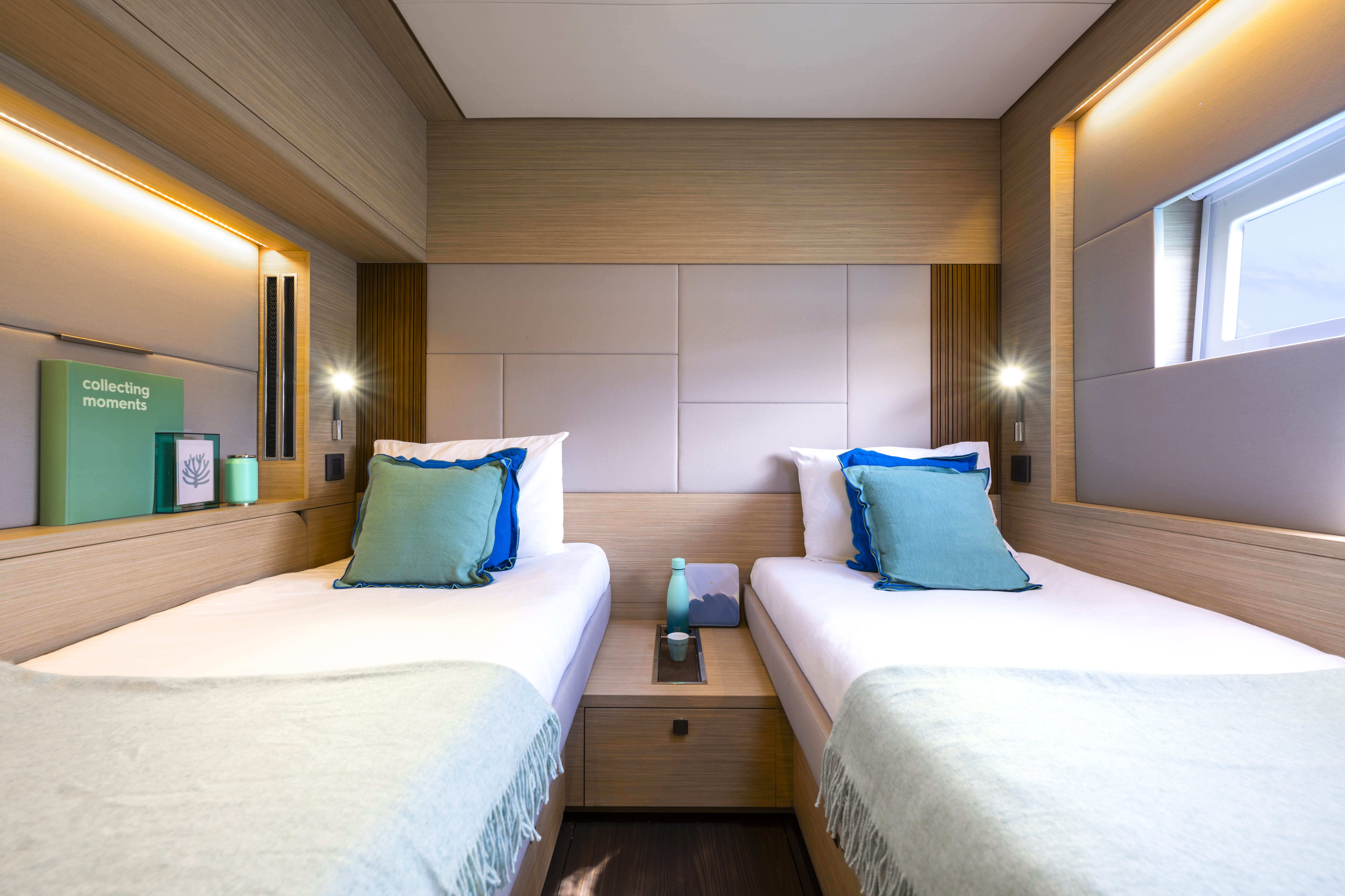 The Lagoon 60 is powered by twin engines, each offering up to 150 horsepower, giving it strength and agility on the water. This yacht is ideal for both long voyages and shorter cruises, featuring advanced water and waste management systems, solar panels, and optional lithium-ion batteries to support extended time off-grid..