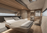 The MC86 whilst remaining true to McConaghy's identifiable exterior lines and key performance attributes, is a full-custom yacht in build philosophy. This allows owners to set out the interior’s general arrangement and equipment in a way that is unique to their own requirements, with multiple bespoke options. A true "wind speed" catamaran, the MC86 has an extensive range under power as well with up to 2,000 nm at economical revs. Her bespoke carbon centre boards allow her to point much higher than other cats, yet are safely housed below decks in their carbon watertight boxes. The MC86 benefits from many of the yards in house production, with extensive use of carbon and bespoke interiors from m2Atilier. A serious, capable offshore catamaran indeed.