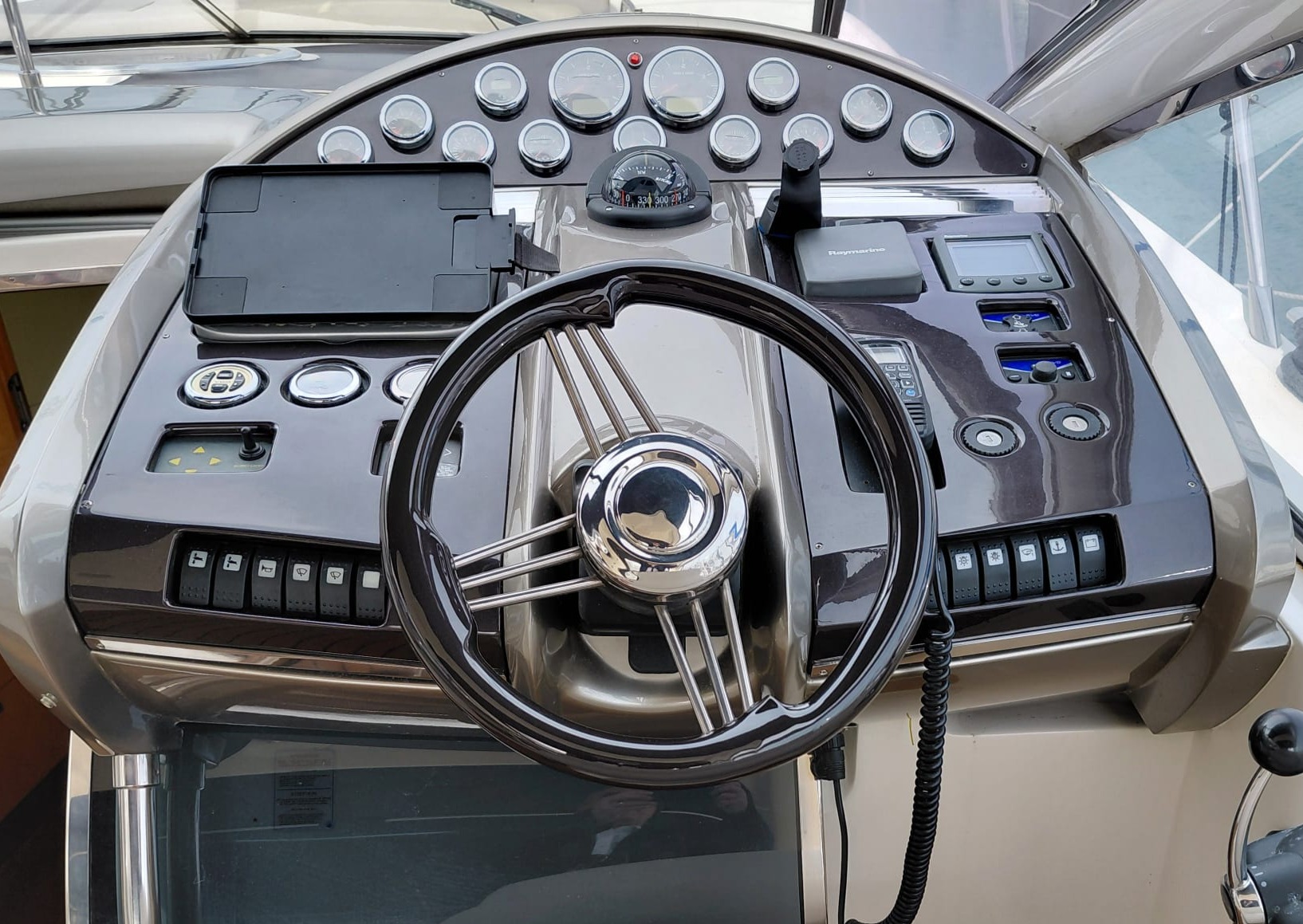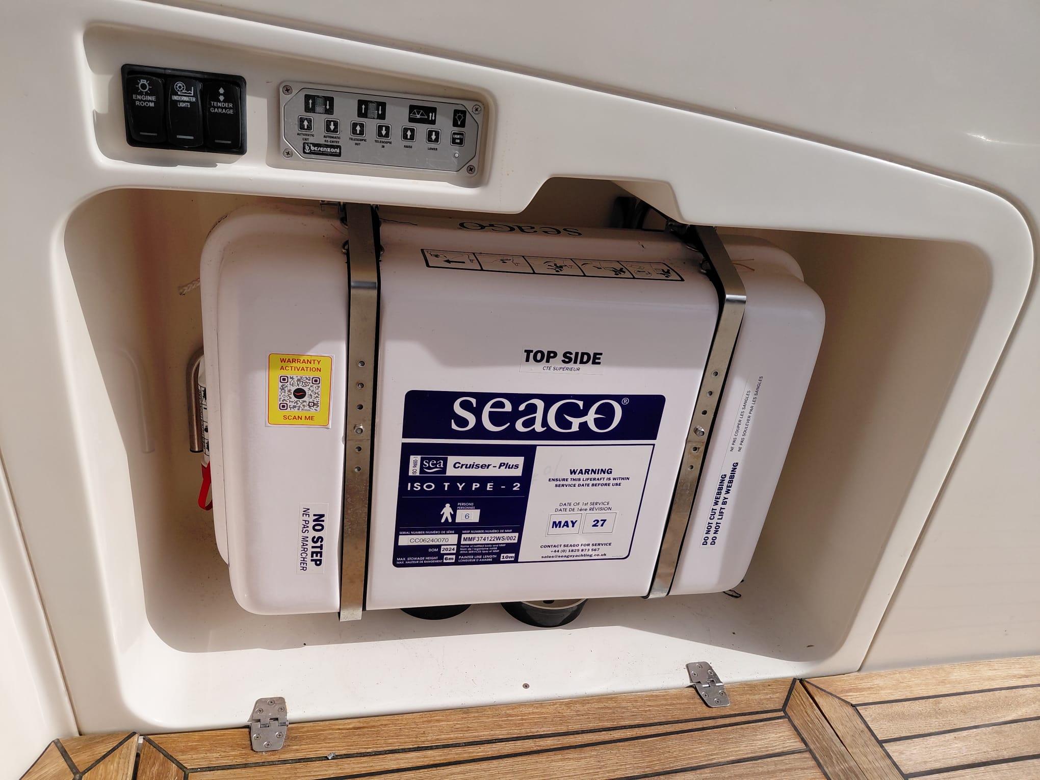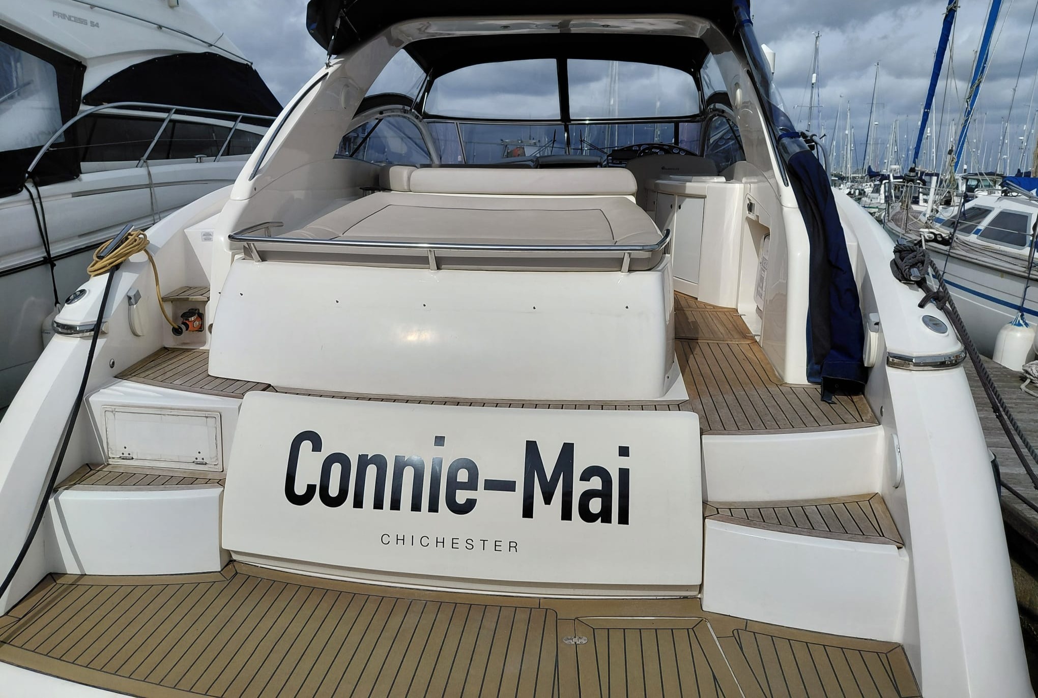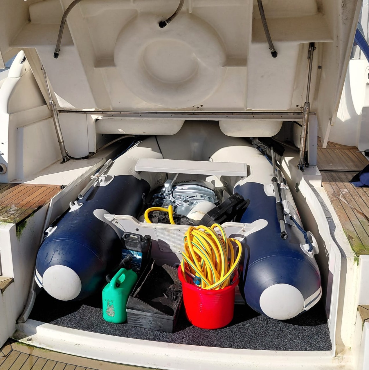 A premium finish inside and out. The 45 is generously proportioned and has a good top speed and cruising speed. The palatial aft cabin may prove irresistible for some and the big portholes fill the saloon with light. This a is true sports boat - fun to drive, good cockpit entertaining, big sunpad, tender garage along with beautiful interior styling. Available to view in Gosport.