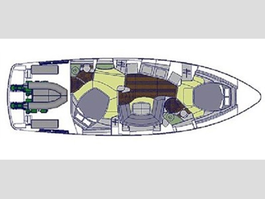 Accommodation features a double cabin forwards with ensuite and a palatial master double cabin aft with ensuite. Further two berths in the saloon. Bedcovers and pillows are included.
