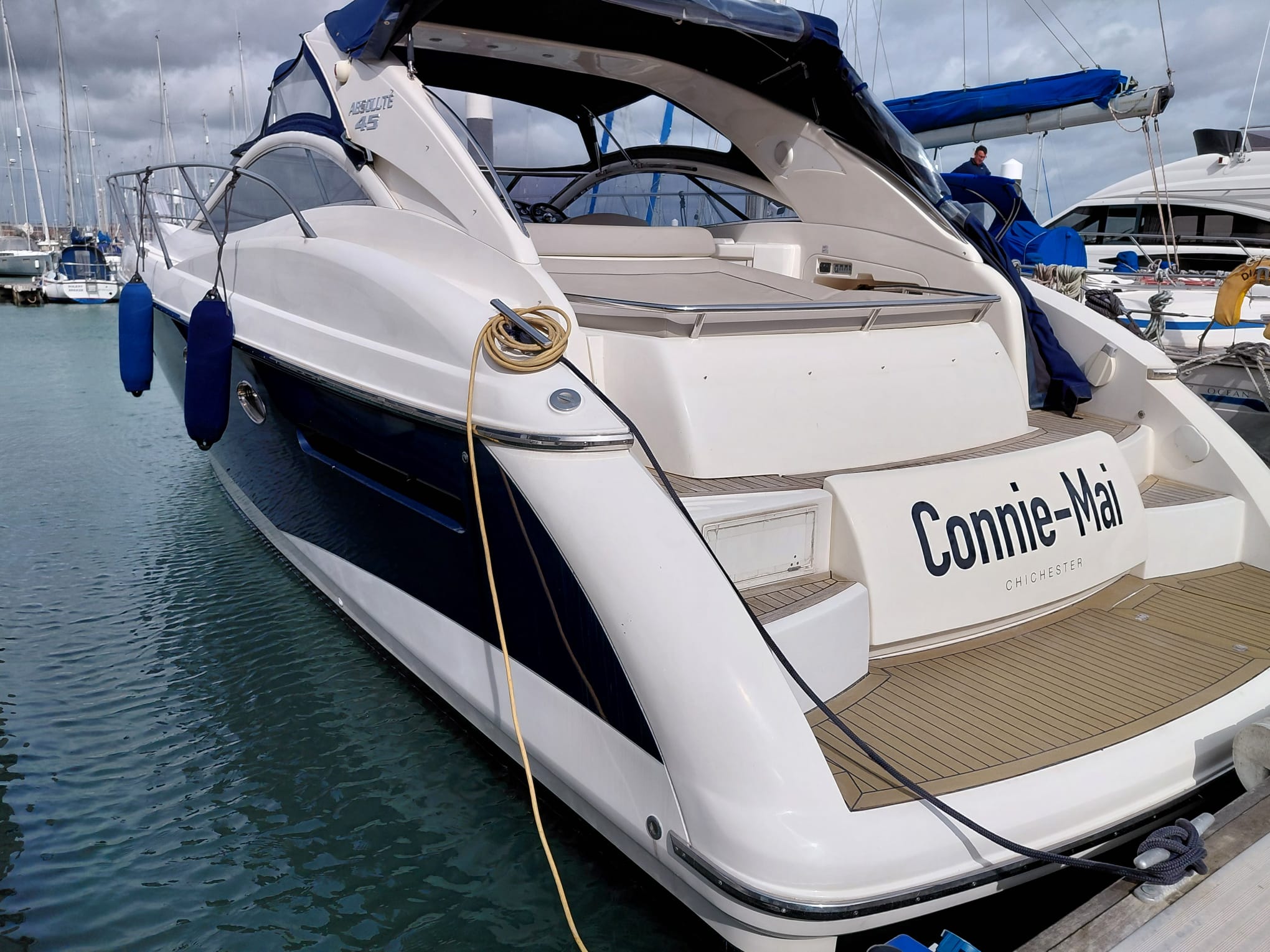Absolute 45 built in 2007 in Italy with twin Volvo Penta D6 350hp engines. Useful inventory includes generator, passerelle, hydraulic tender garage, air con, holding tank, bow thruster and lots more. A stunning sports cruiser with smart blue and white hull and a beautiful interior (including an impressive saloon with striking windows and a very spacious aft cabin). Afloat in Gosport UK, viewings are highly recommended for those seeking a boat with style, comfort and presence.