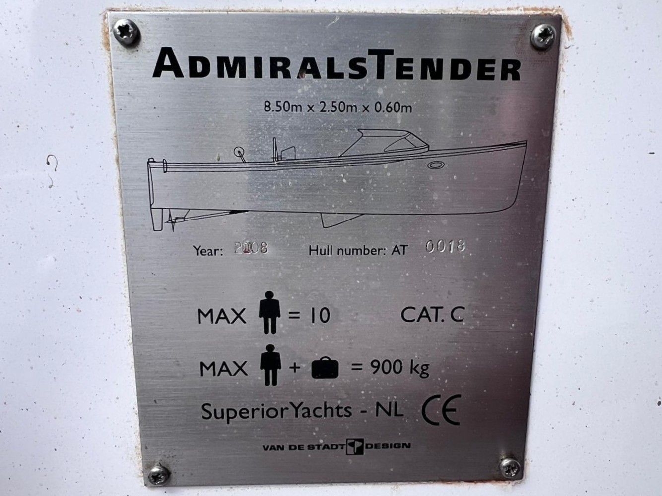 2008 Superior Yachts Admirals Tender – Spirit of KK is a stylish, comfortable, and highly versatile luxury motorboat. Built by Superior Yachts and designed by Van de Stadt, she is powered by a single 110hp Yanmar inboard diesel—the largest engine option available for this model.
