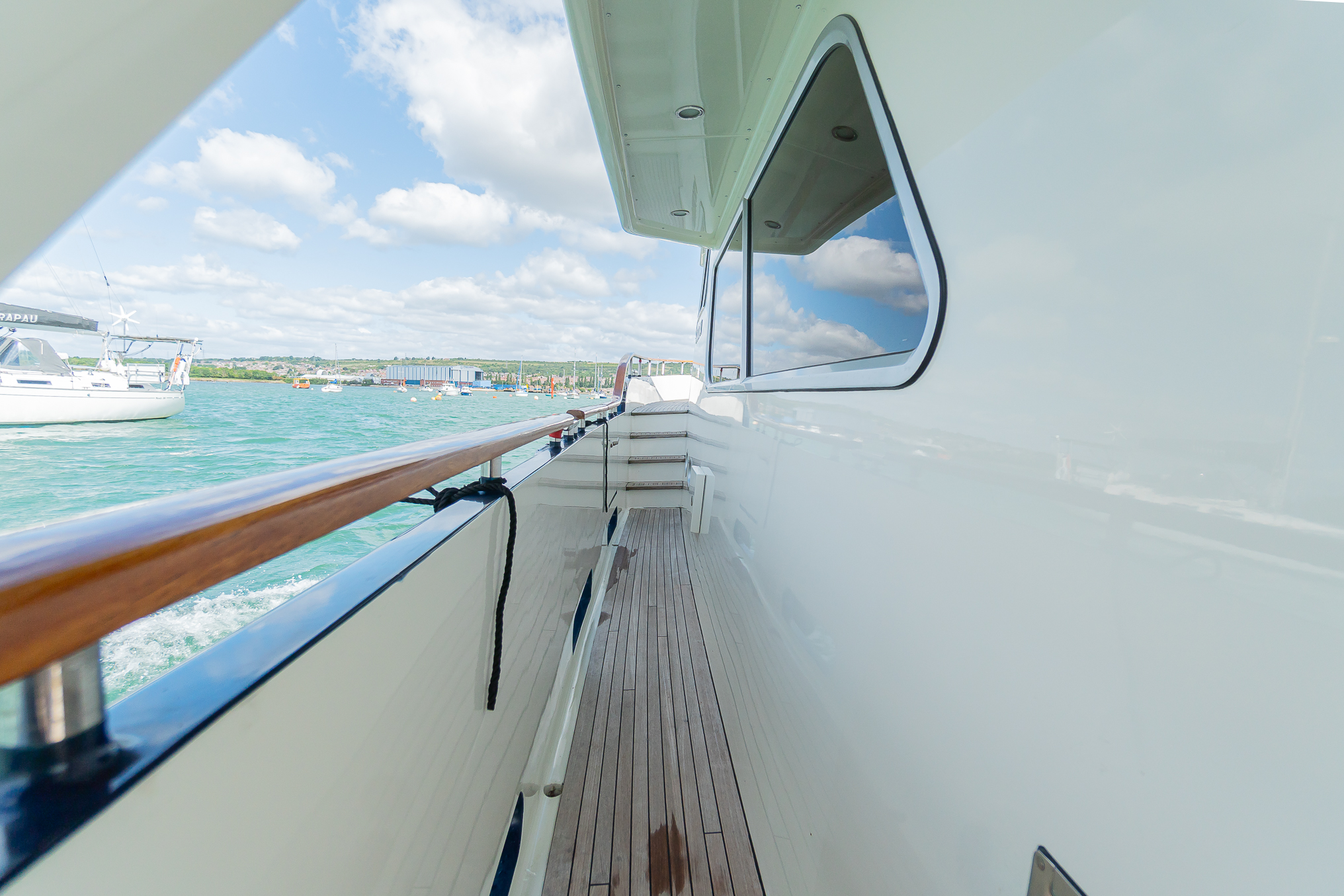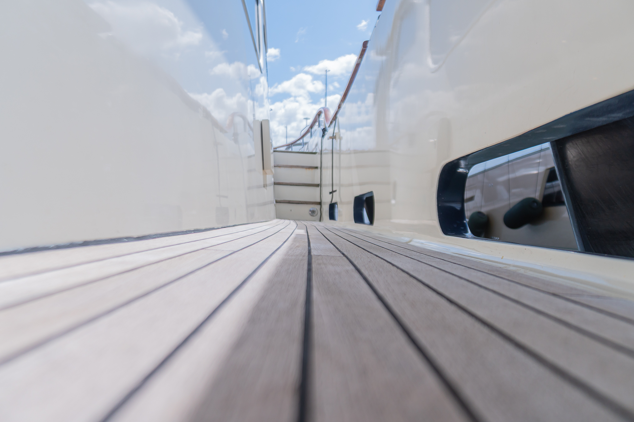 Teak cockpit, side decks, flybridge and bathing platform (cleaned and updated 2023)