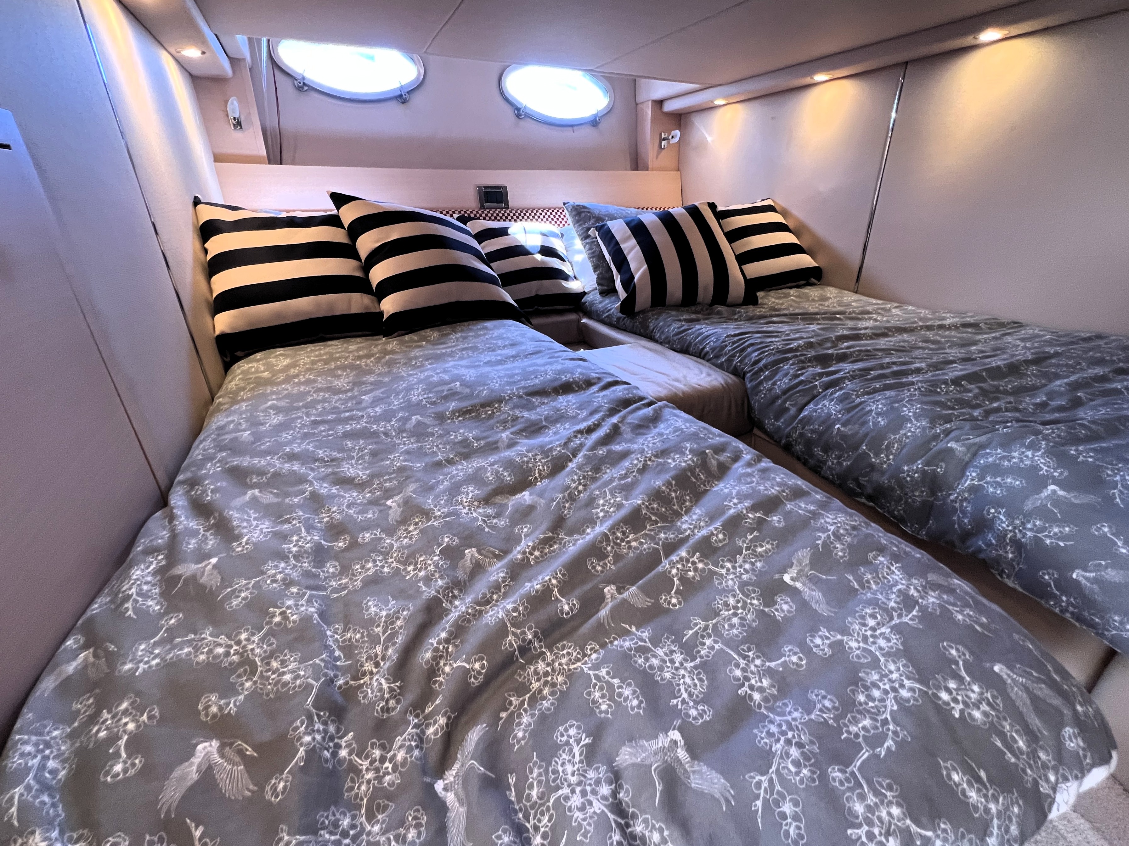 Aft cabin with 2 single beds (which slide across to make a double if required).