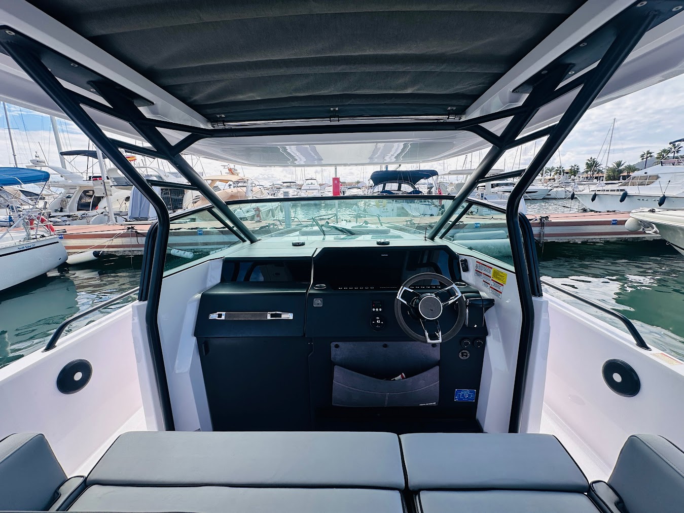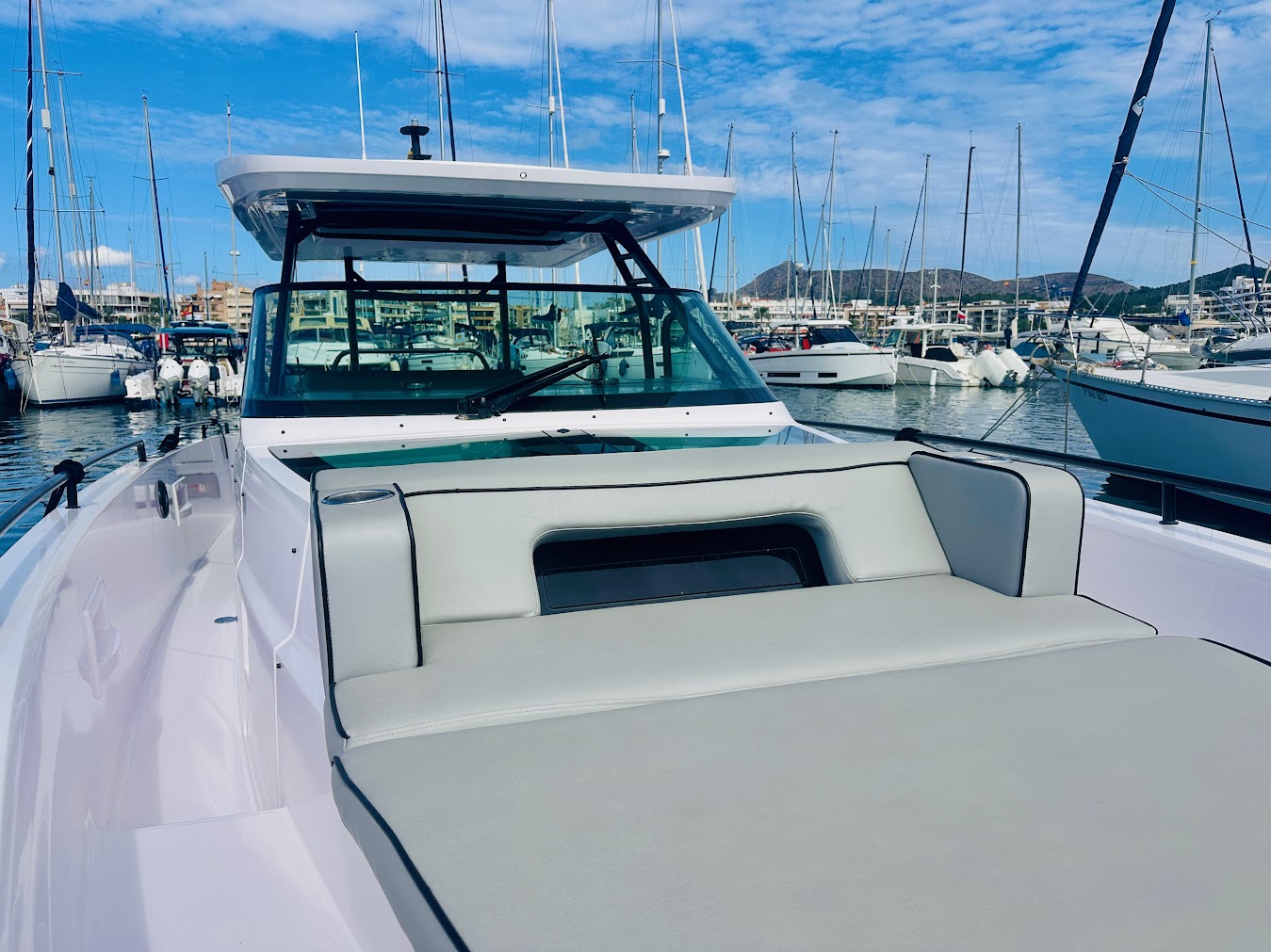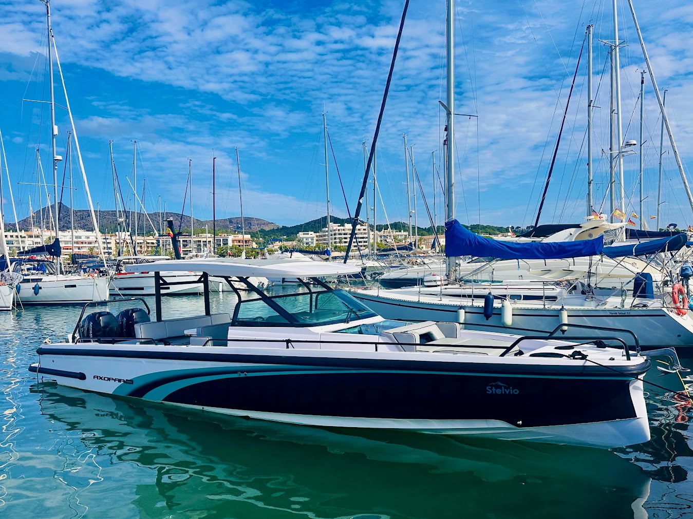 For sale in Mallorca! This 2022 Axopar 37 Sun Top is a stylish, high-performance boat with a big (opening) roof for sun protection, versatile seating, and optional sleeping space. It is perfect for day trips or weekend cruising! The berth in Alcudiamar can be taken over. Boat with Spanish charter licence!