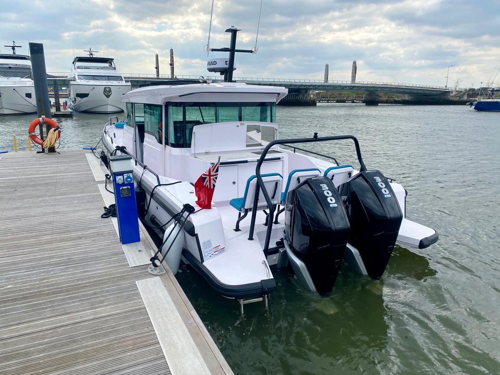 Powered by twin 300 hp V8 petrol four stroke Mercury Outboard engines with stainless steel propellors