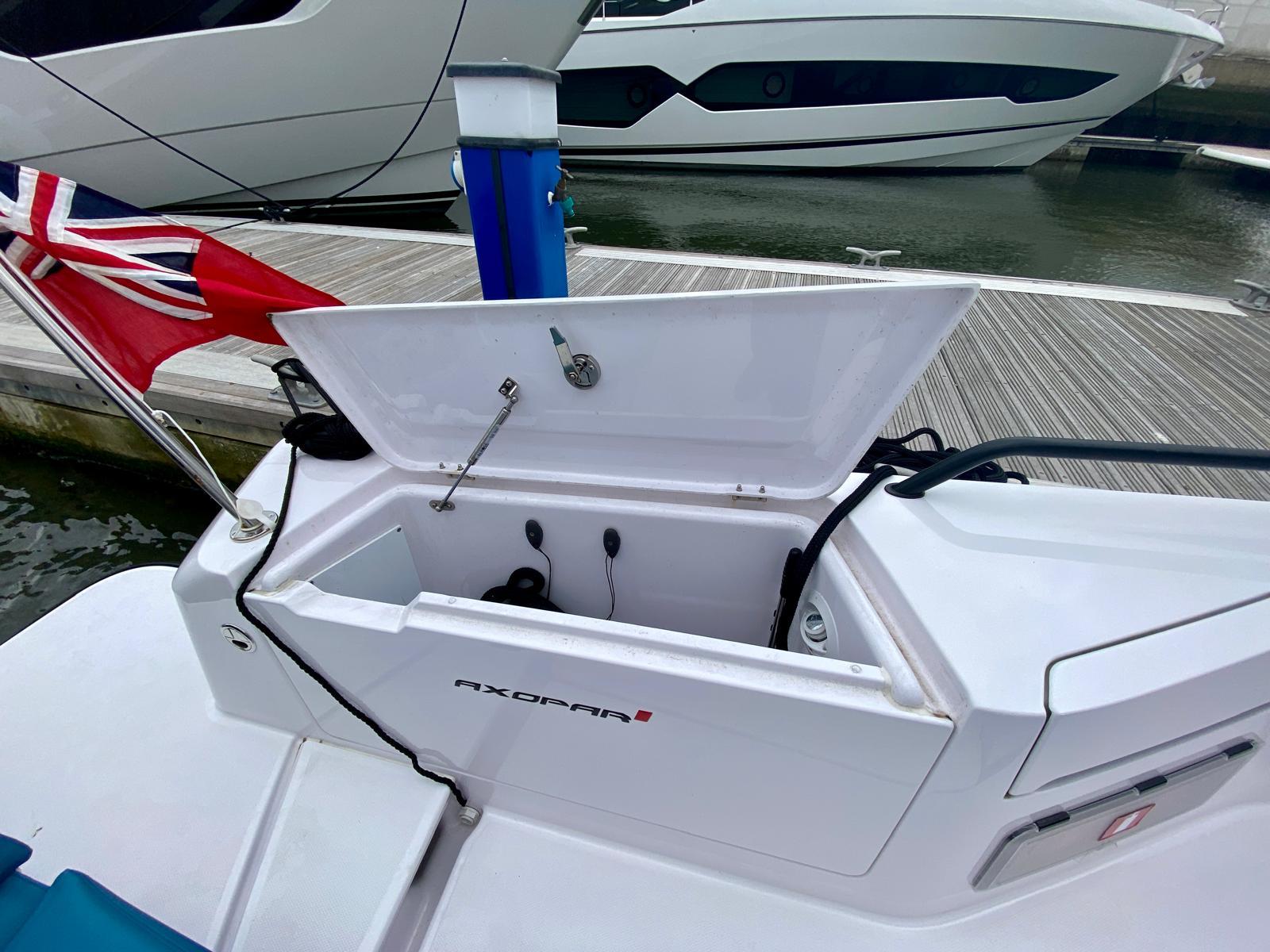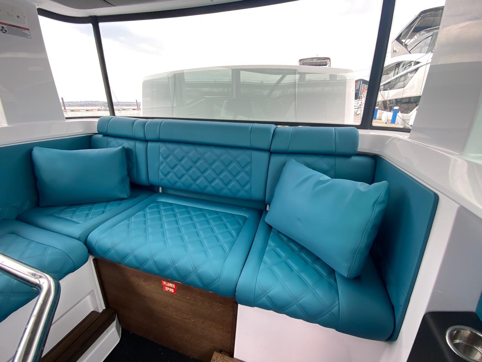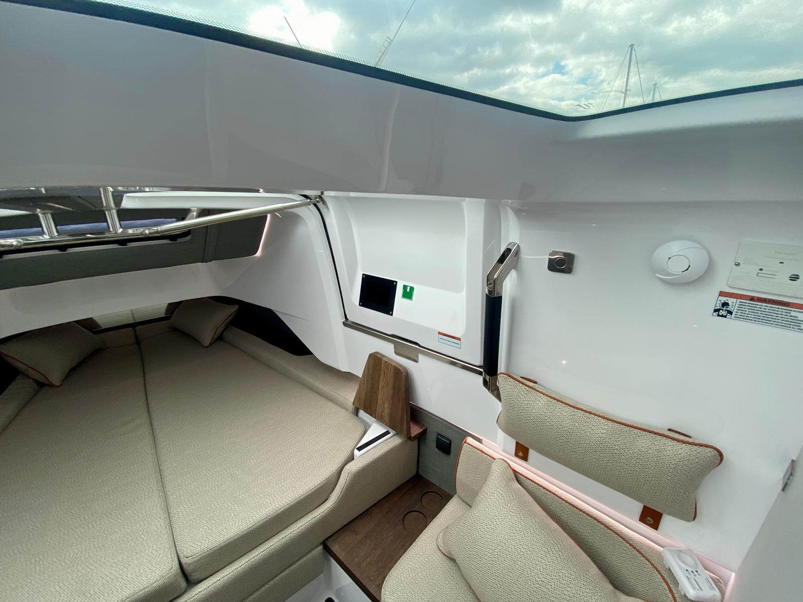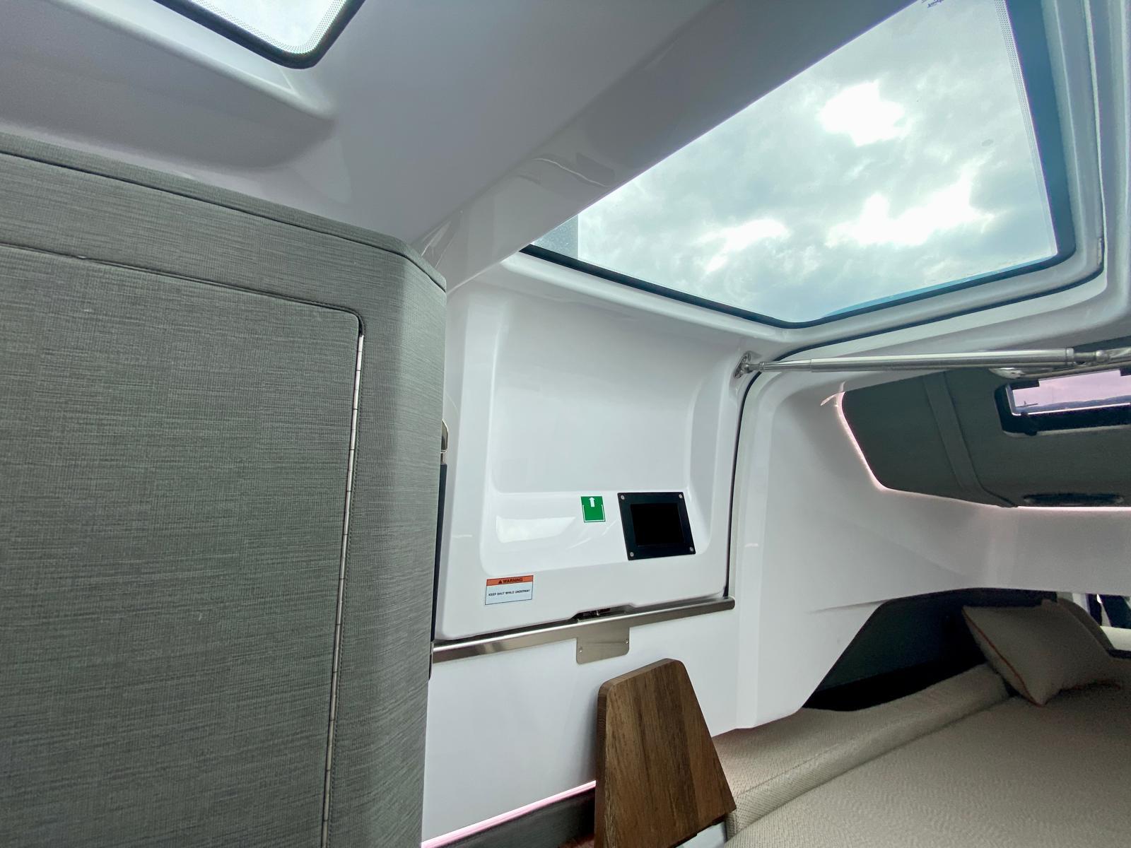 In addition to this she also has the open aft cockpit option with the benefit of a wet bar arrangement with plenty of storage beneath, perfect for a set of directors chairs or water sports activities.