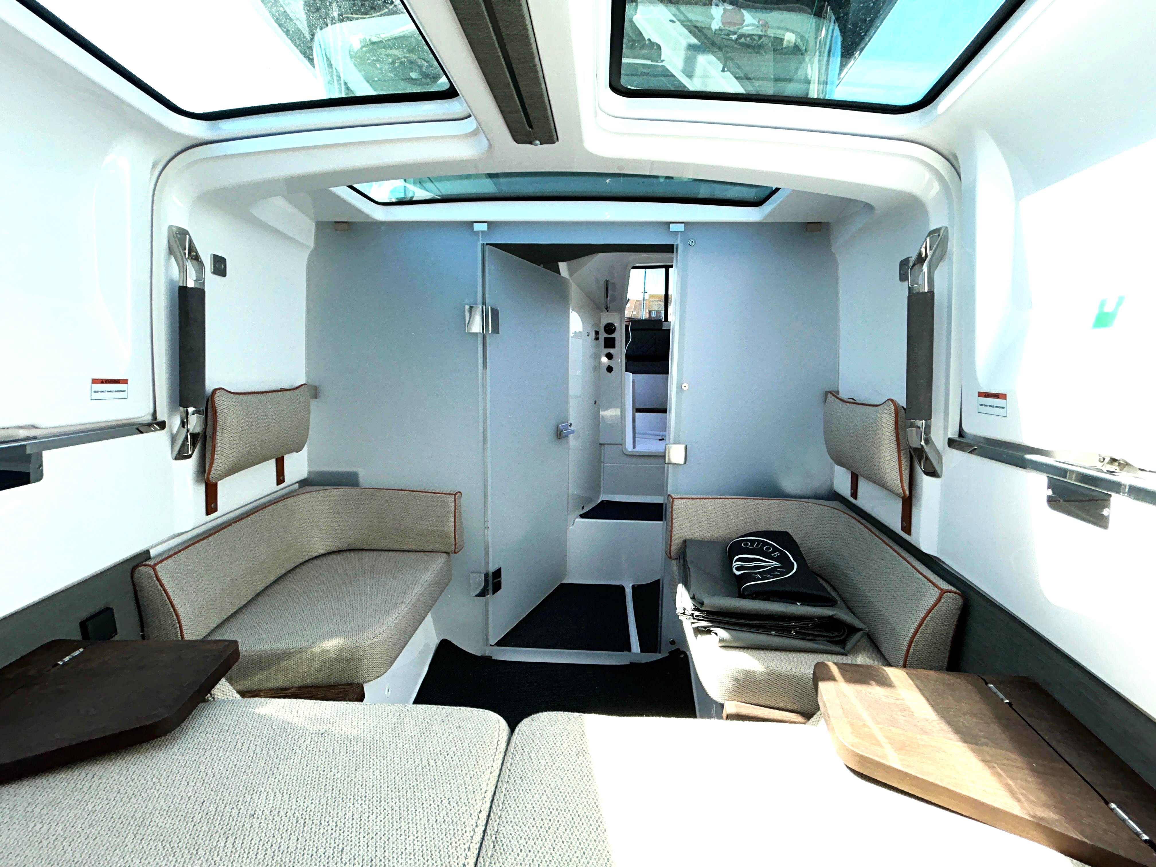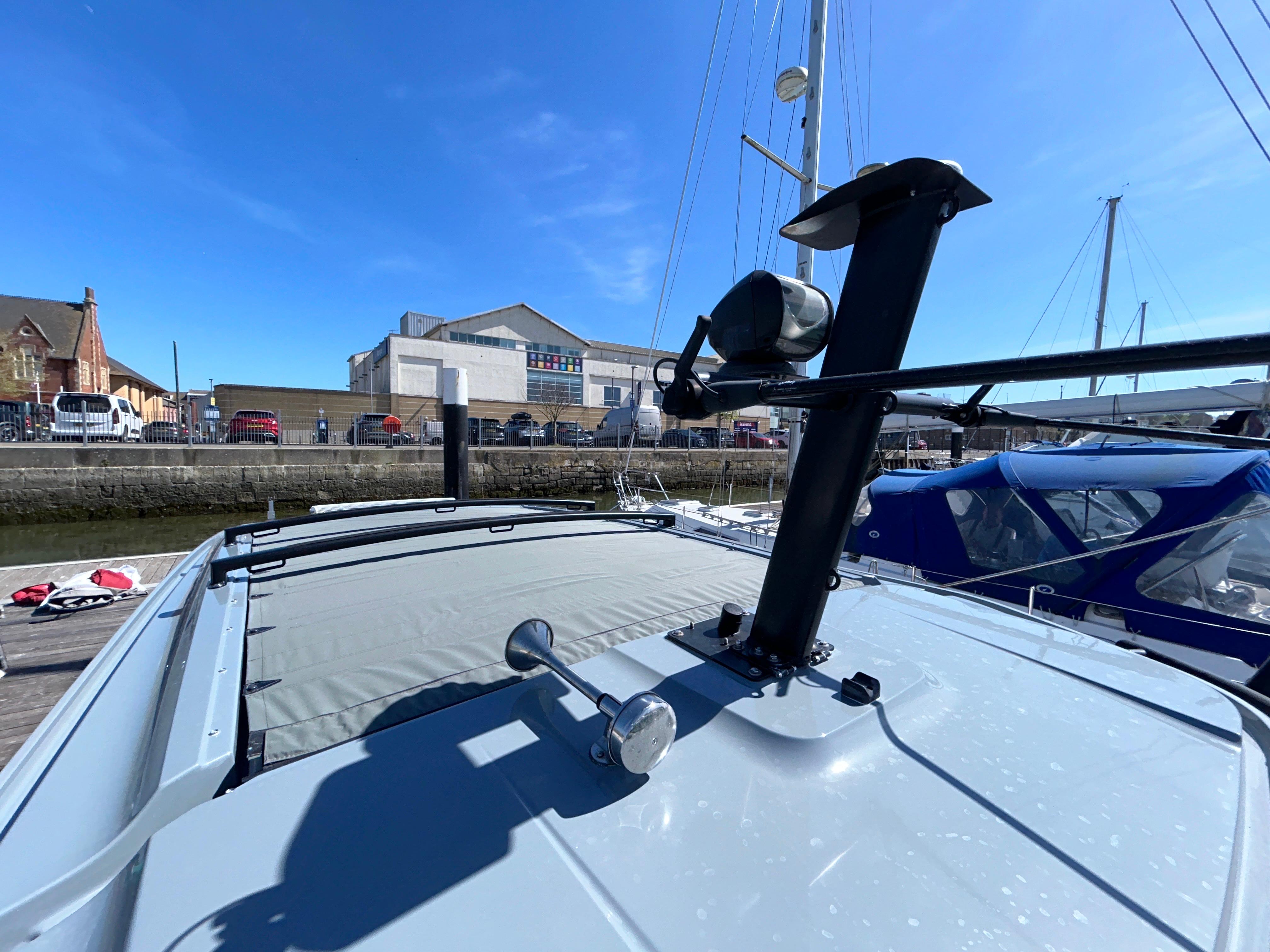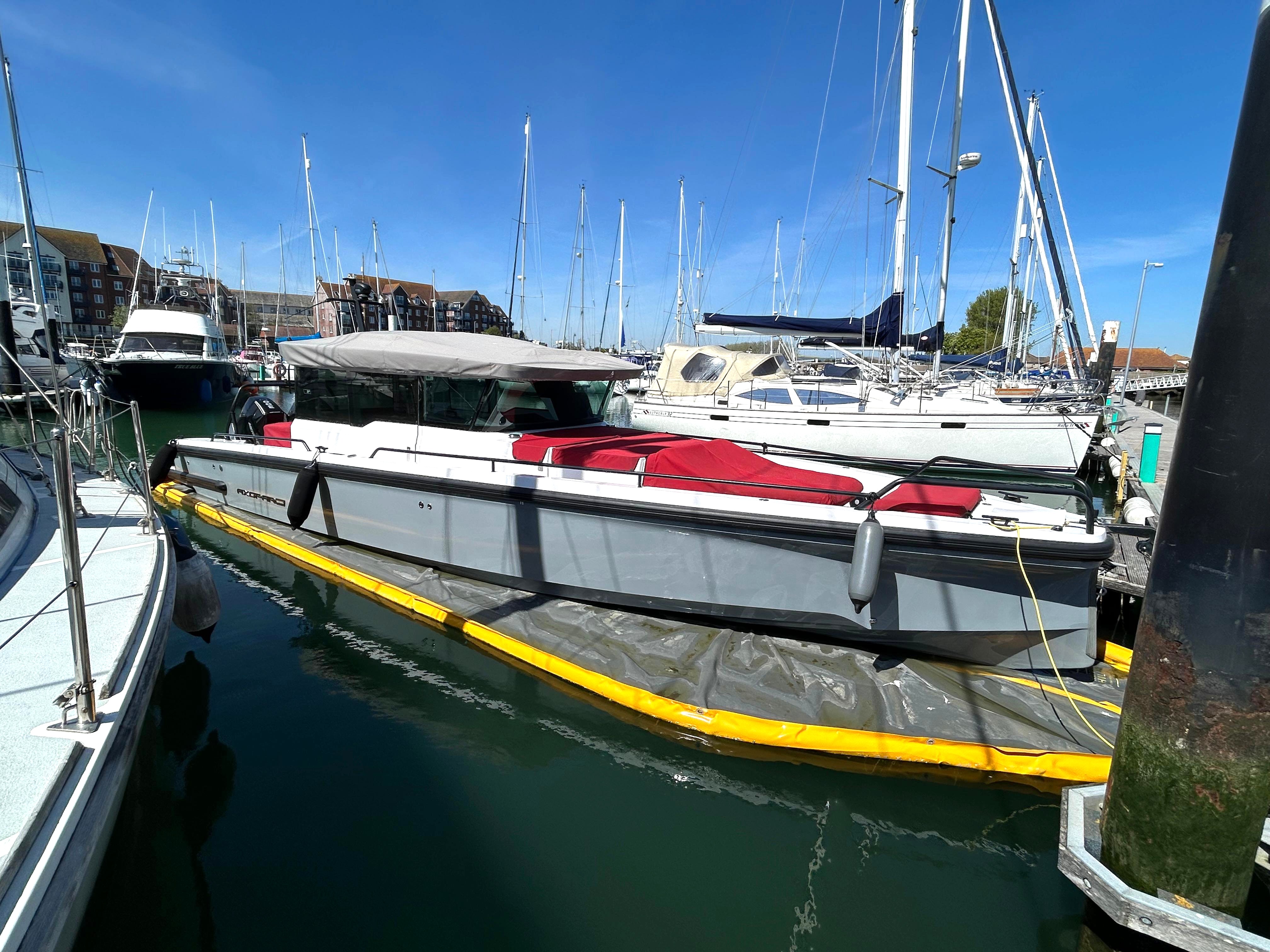 A great opportunity to get afloat this season on one of Axopars most popular models finished with a stunning grey hull and Brabus line package. "Pace" Was supplied by Axopar London Group to her current owner approx two seasons ago and had the benefit of 2 new Mercury outboard engines fitted and supplied by the local Mercury dealer Holes Bay Marine, Fully commissioned and receiving large full service which brings her up to date and having still remaining manufactures warranty. She has since had very little use but always maintained to the highest standards including a recent hull and superstructure polish. A true all round season practical boating come rain or shine with central heating throughout , Pace also offers the aft cabin layout option for those who requires second cabin and more storage space for the occasional guests or family members. She has the benefit of being afloat withing a very cleaver "Happy Hull" storage arrangement which is included in the sale and avoids growth and weed on the underwater section. refer to " happyhull.com".