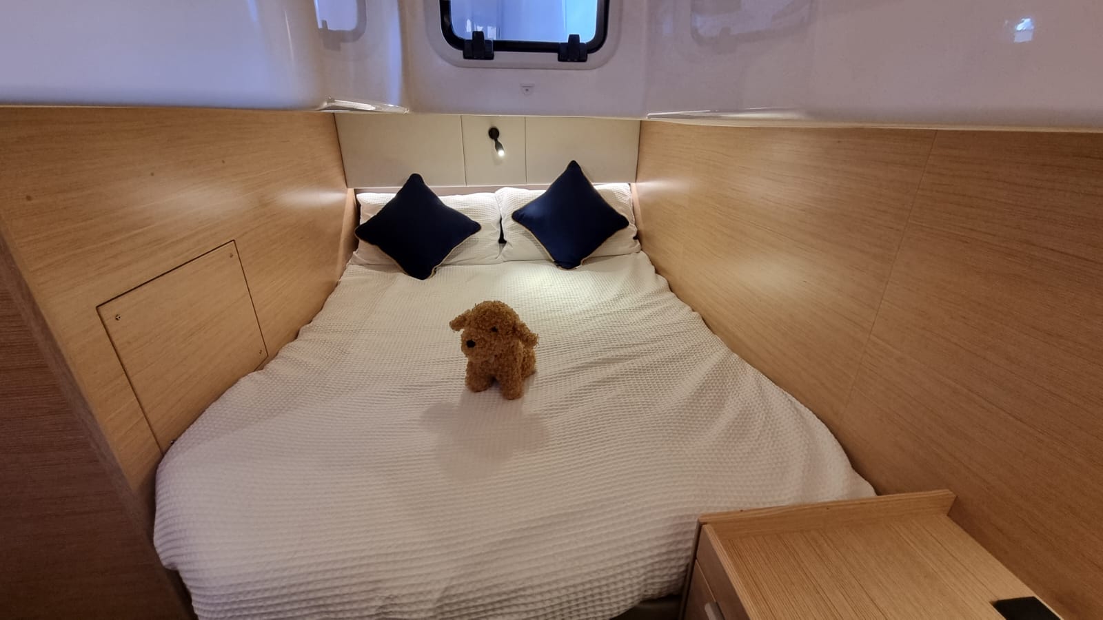 Blinds in saloon, aft and forward cabins,