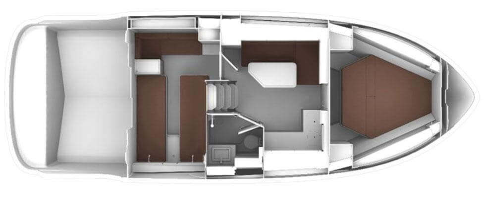 SLEEPS FOUR IN TWO CABINS WITH FORWARD DOUBLE AND TWIN AFT CABIN