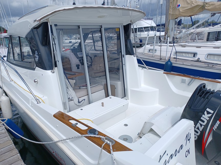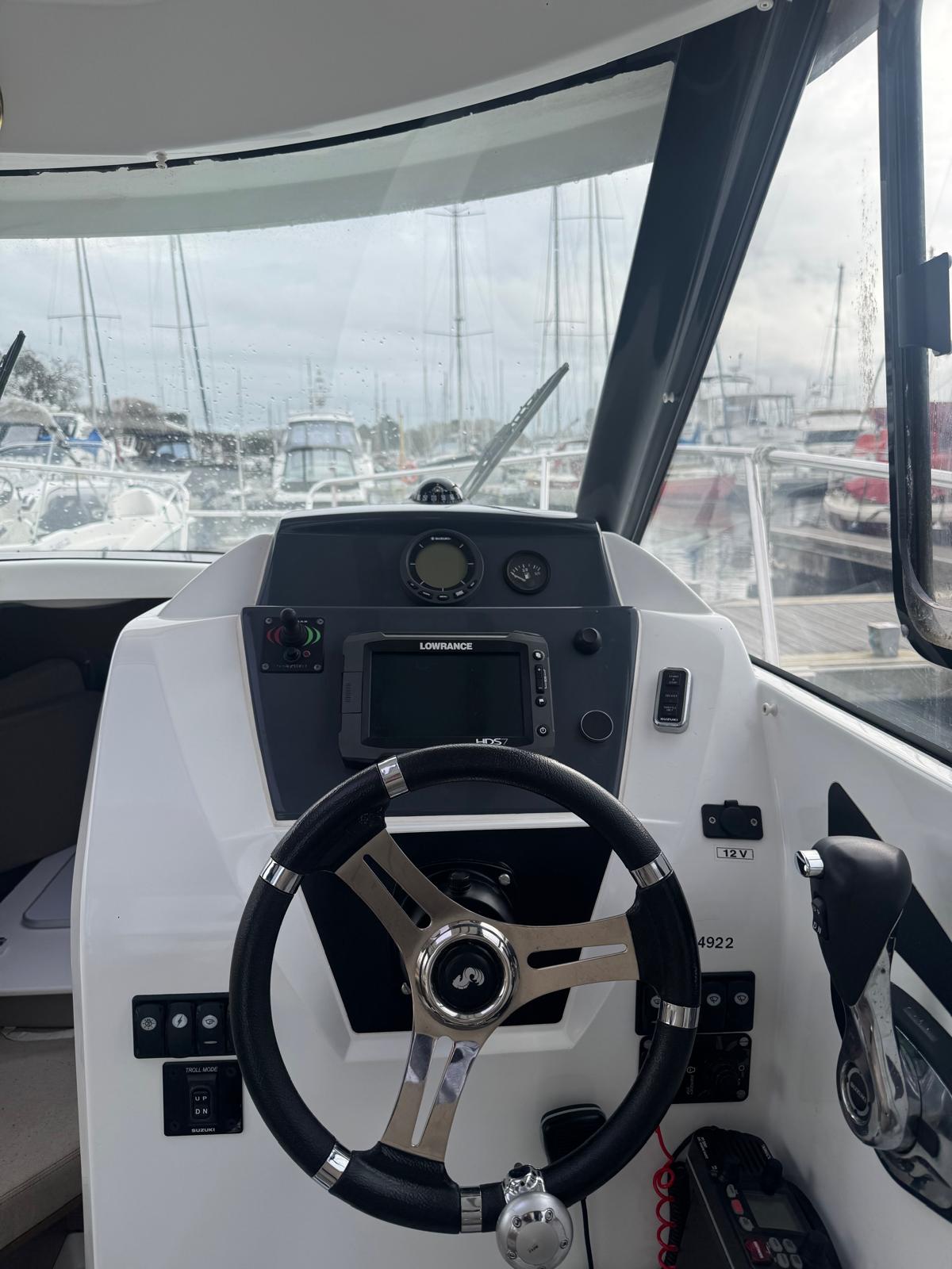 BENETEAU ANTARES 7.80 built in 2014 'Kiara' is a classic pilothouse boat ideal for coastal cruising with family and friends. The safety and seaworthiness comes from her flared hull design and coupled with a Suzuki 150hp outboard engine she gives excellent performance on the water. 'Kiara' has a great specification including a Lowrance plotter & VHF, electric windlass, full cockpit enclosure with removable sides and aft panel and much more.