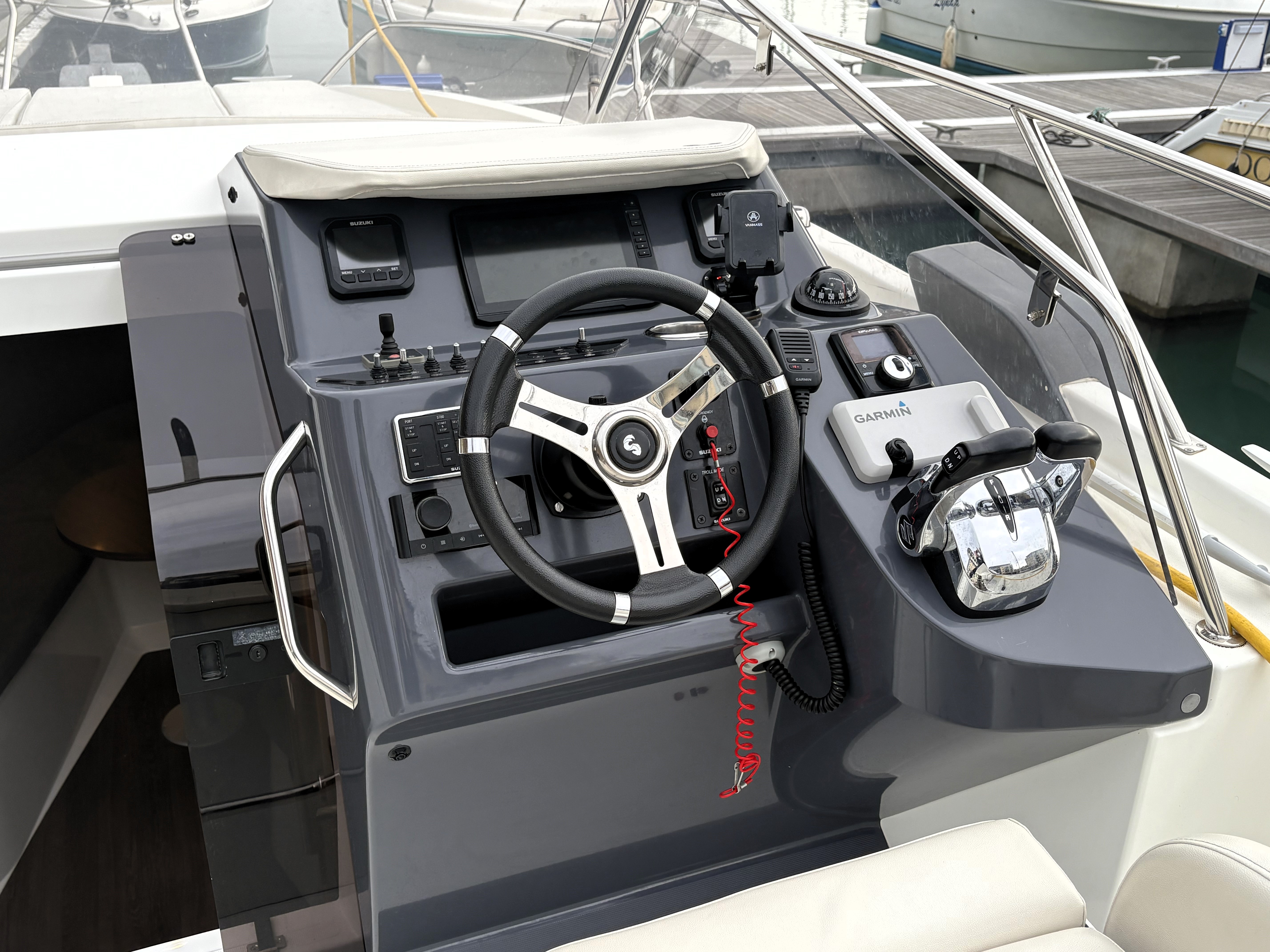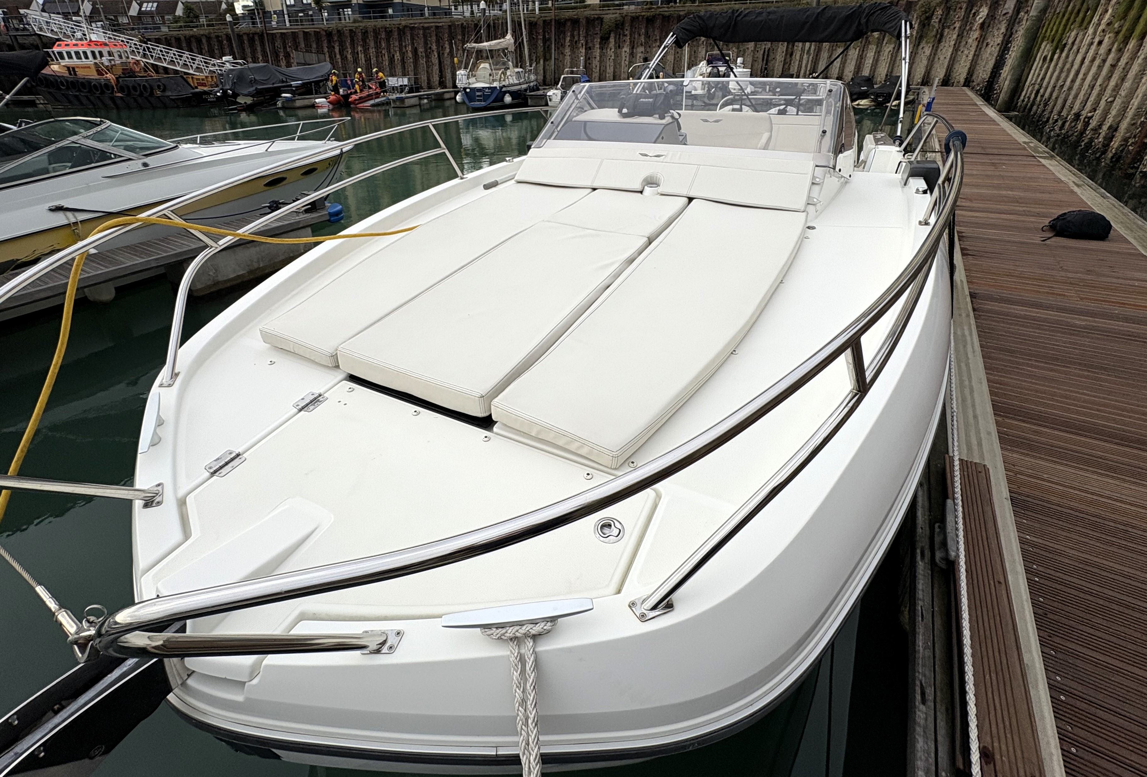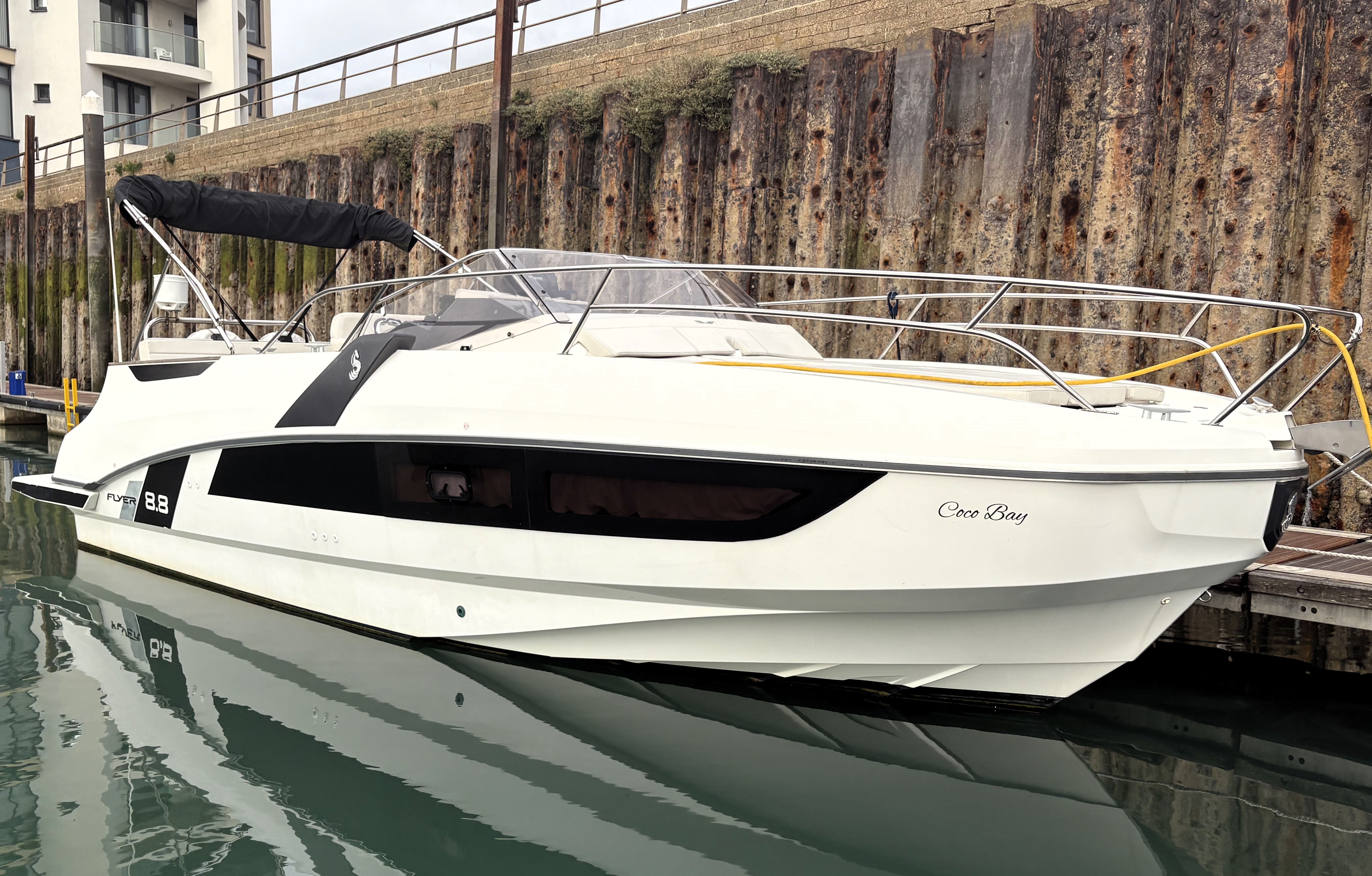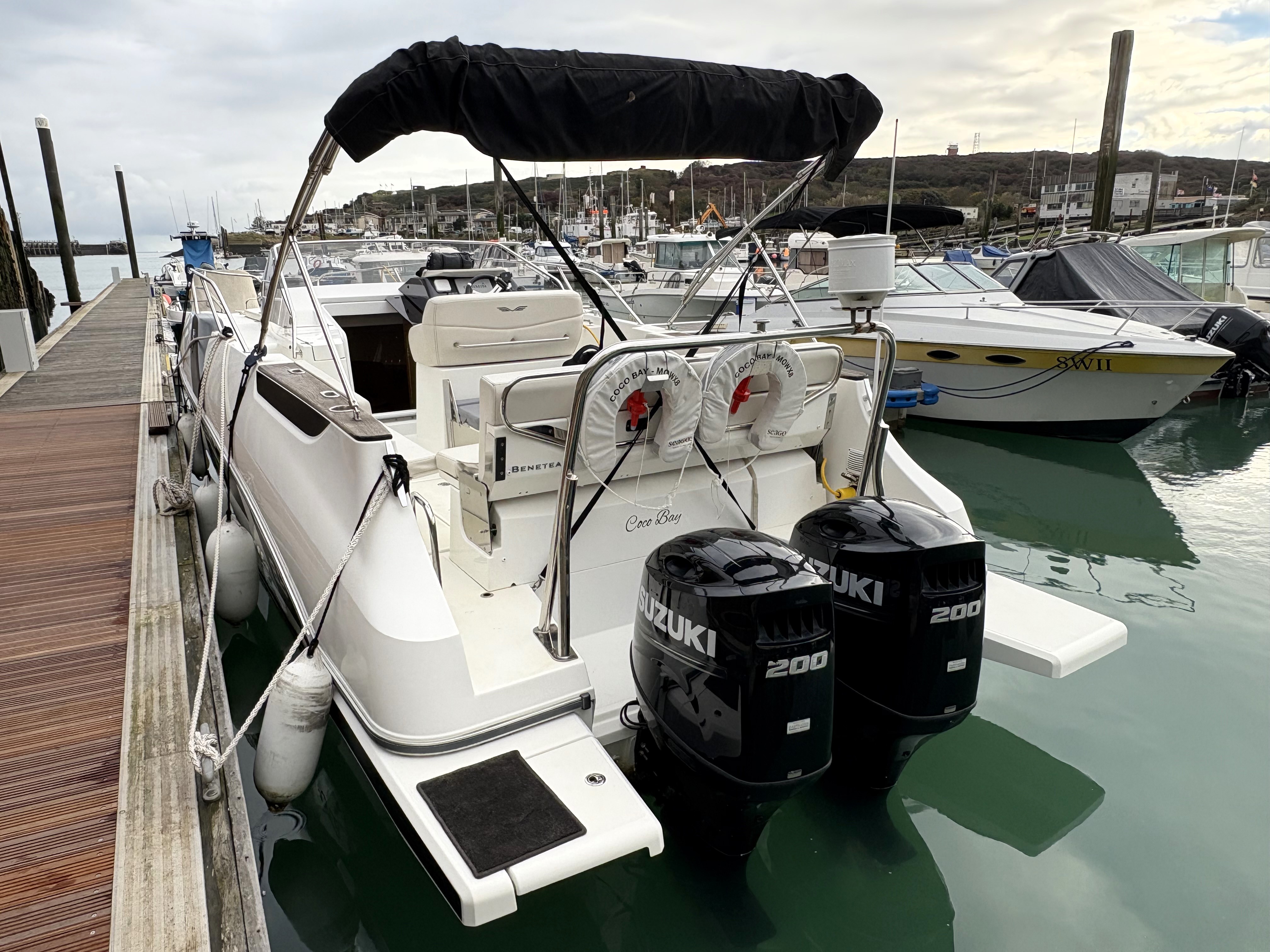 2020 Beneteau Flyer 8.8 Sundeck. Large open dayboat with the benefit of accommodation for 4 adults. Comfort trim level which includes Zipwake automatic trim system, Bow Thruster, electric windlass and water heater. Upgraded electronics and external upholstery, aft and forward sun awnings and powered by twin Suzuki DF200 outboard engines with low hours. Fast, fun and friendly option for a family or couple. Fully Equipped for Coding.