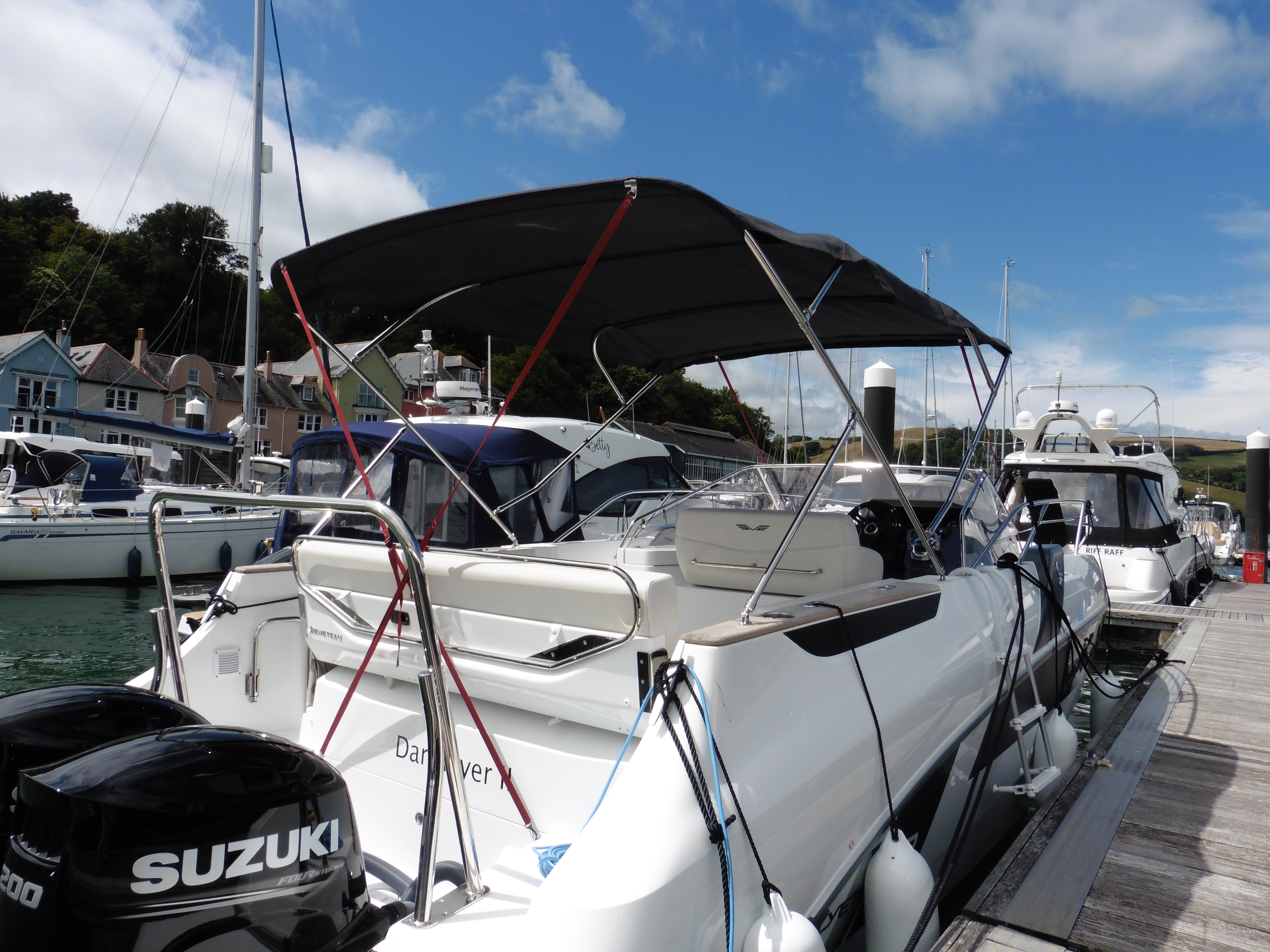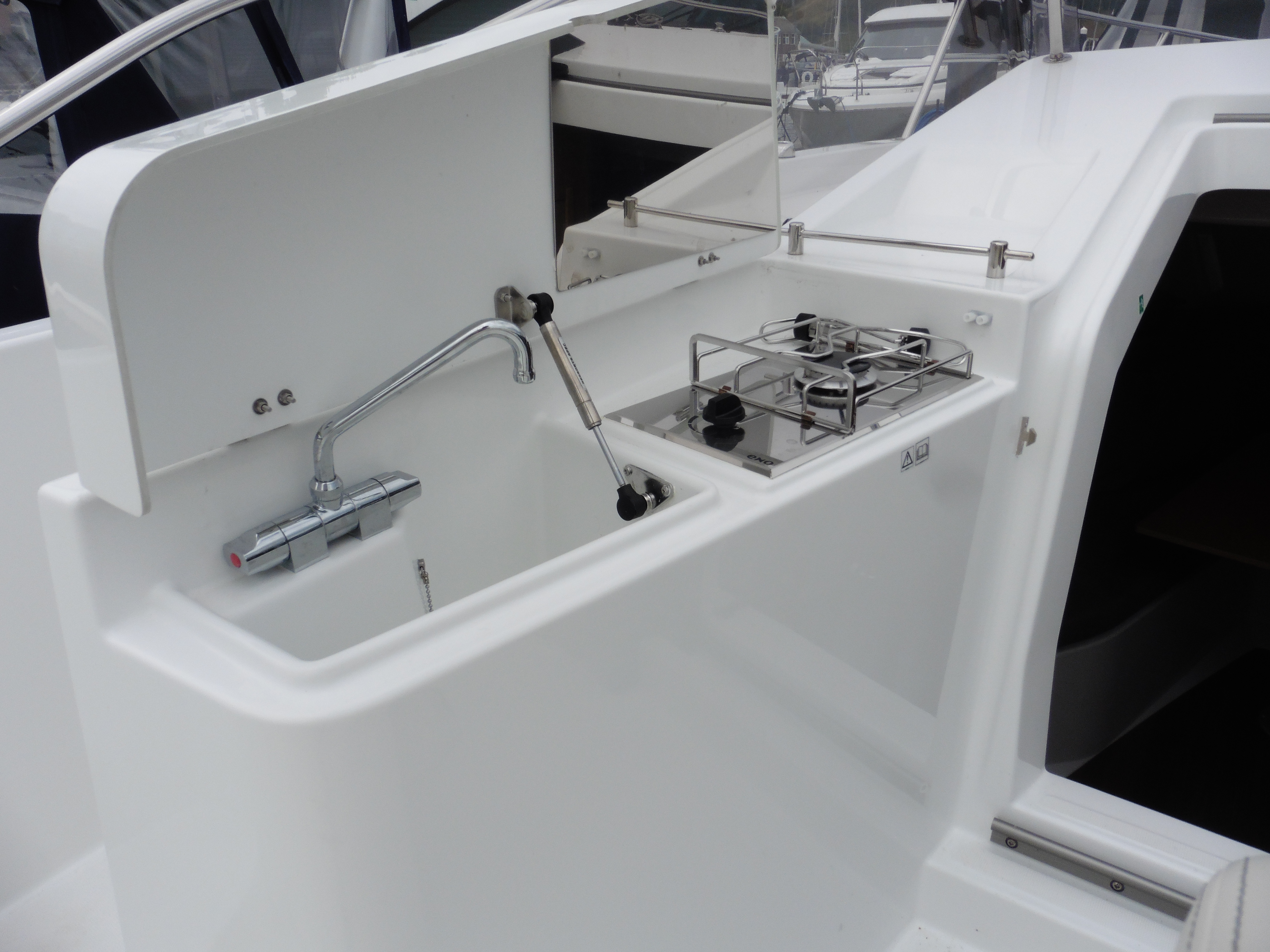 The Flyer 8.8 is as shining example in the versatile dayboat world, a well thought out cockpit with plenty of seating is complimented by the cockpit bimini. The accommodation provides berths for 4 as well as a galley and full heads. Upgraded trims give extras such as automatic trim system, 220V circuit, electric windlass and high quality exterior upholstery. In her second ownership she has had all annual maintenance carried out.