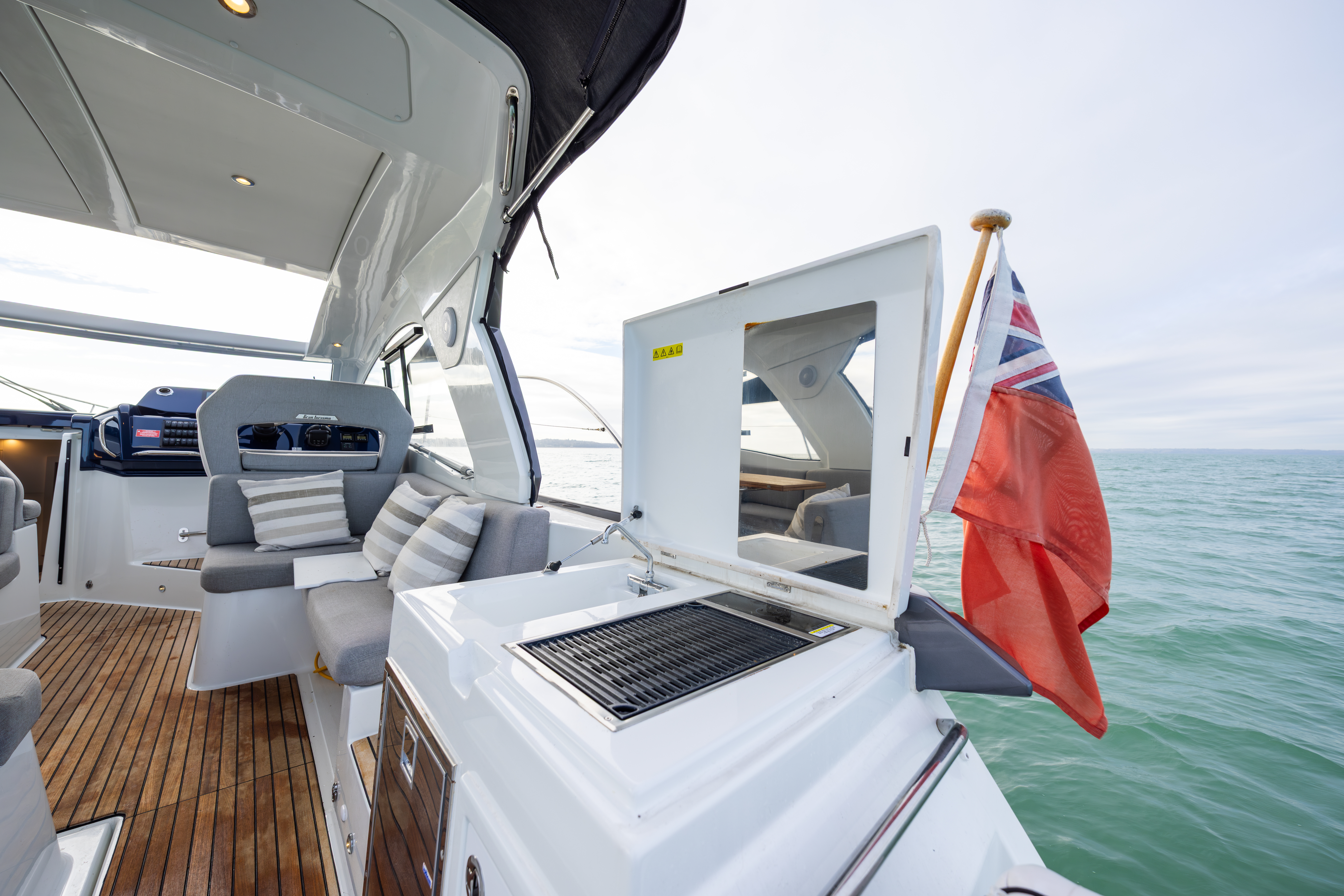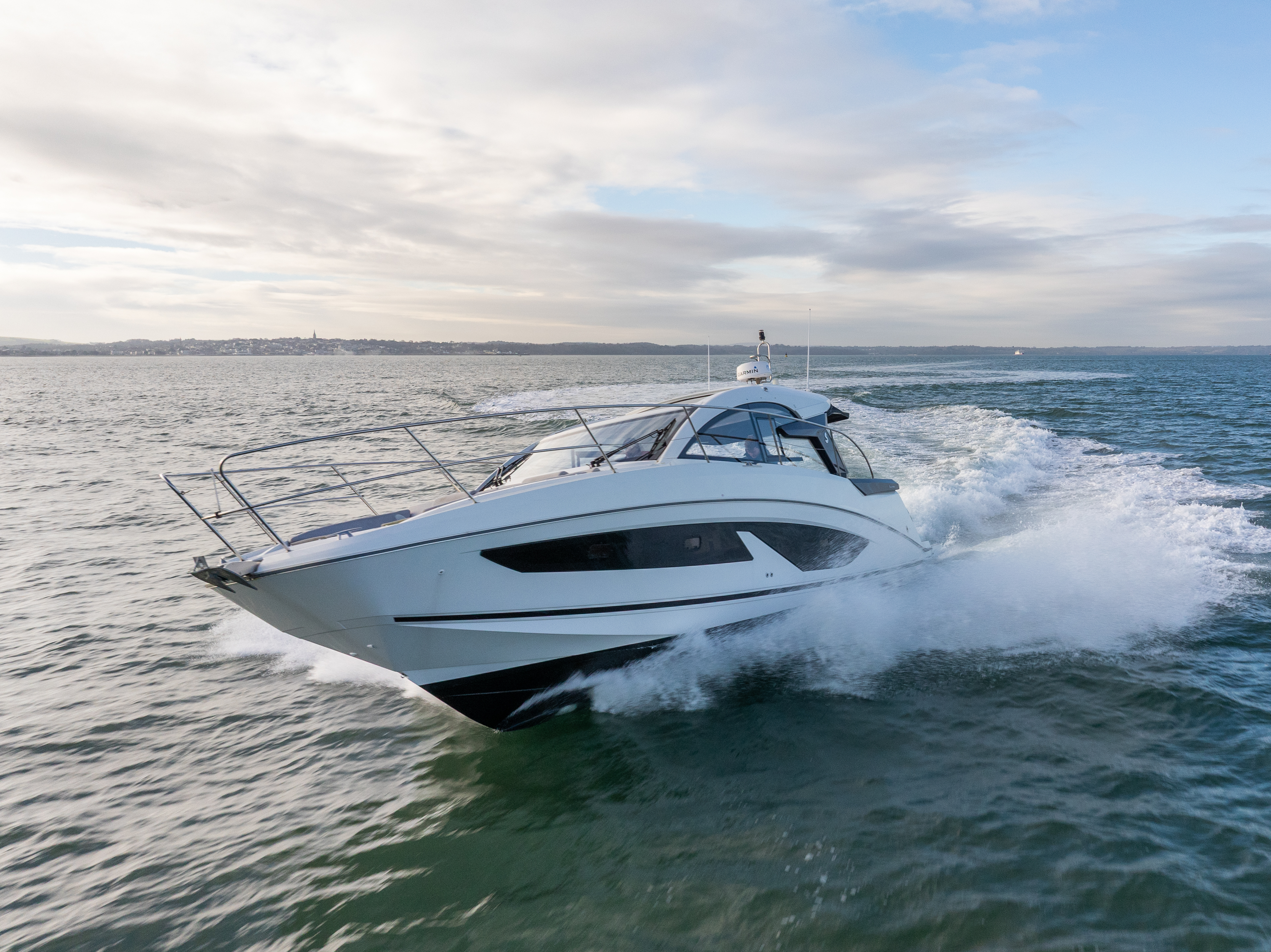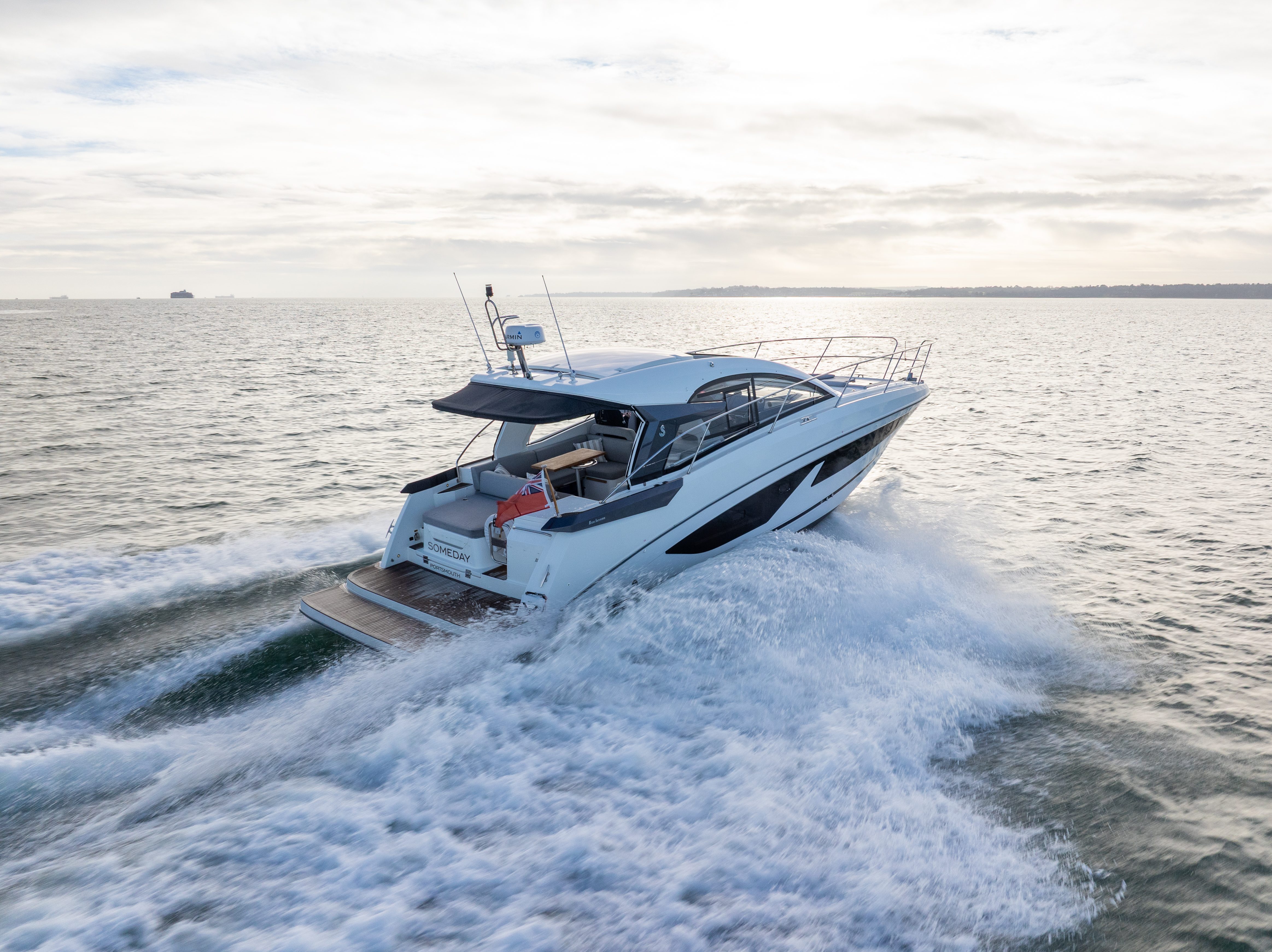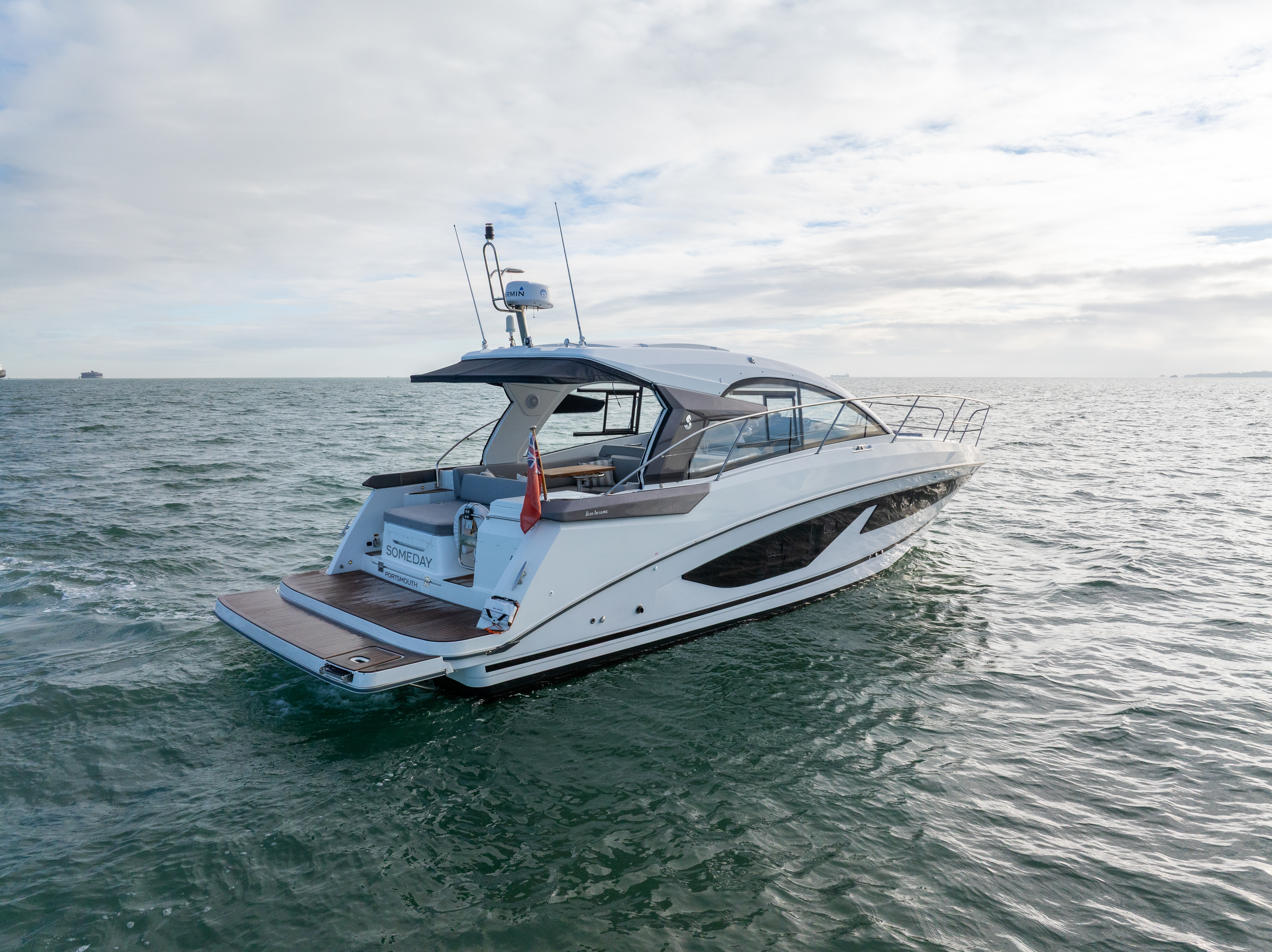 BENETEAU GRAN TURISMO 36 Built in 2022 to a 2023 model. Powered by Twin D4 300HP diesel engines with joystick control making close quarters handling a breeze. The exterior layout is fully optimised for comfort and entertaining with electric sunroof, aft sunpad, large built-in sun mattress on the foredeck with built in speakers and awning, spacious cockpit with ample seating, grill, wetbar and fridge. The interior is cosy with two double cabins, heads with shower compartment and galley with 2-burner glass hob and microwave. ‘SOMEDAY’ is a great example of this very popular performance cruiser and comes with a great spec including bow thruster, generator, extended bathing platform, heating, Garmin electronics, cockpit enclosure and much more