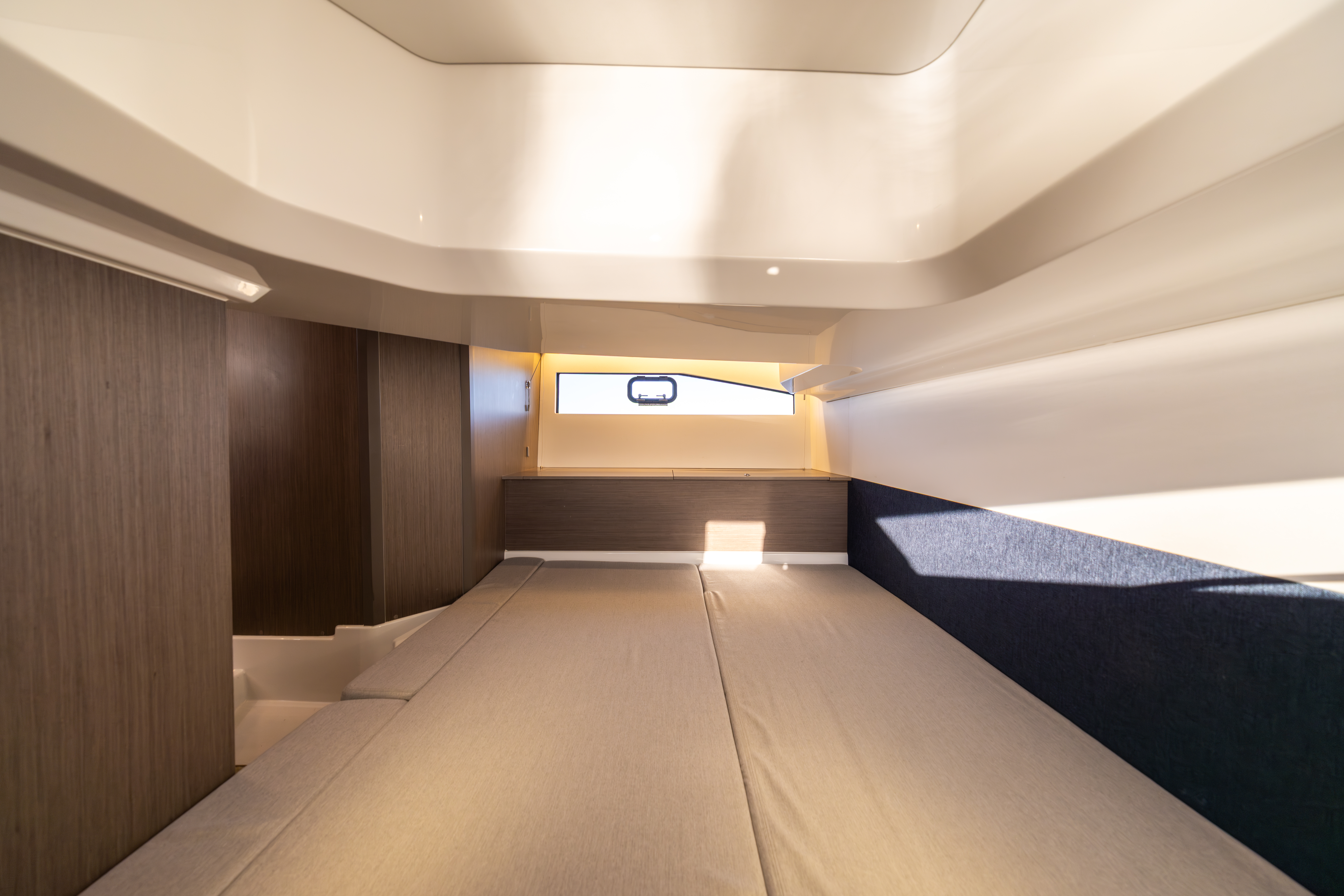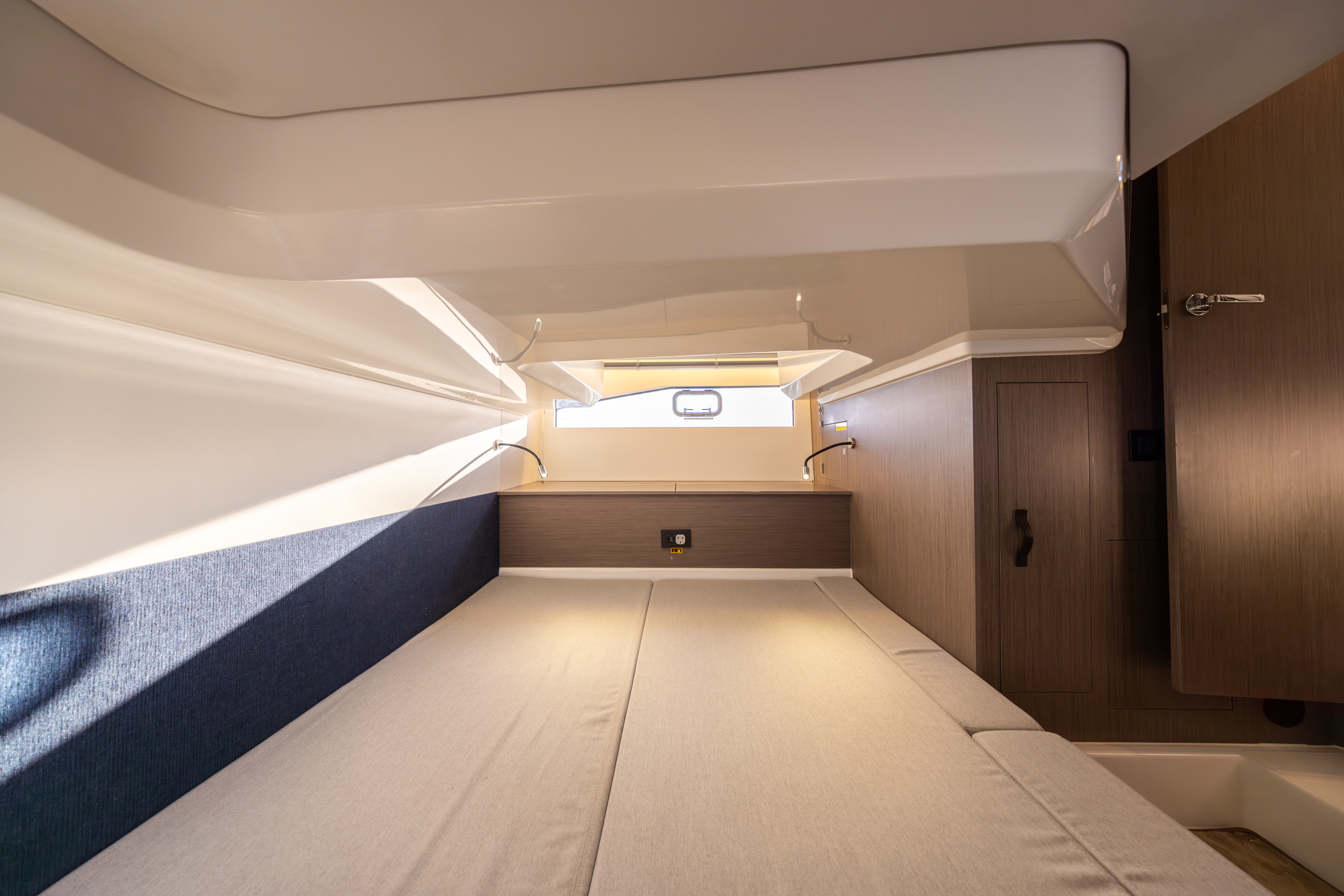 Owners cabins forward with centre line double berth and storage under