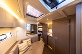 The exterior layout is fully optimised for comfort and entertaining with electric sunroof, aft sunpad, large built-in sun mattress on the foredeck with built in speakers and awning, spacious cockpit with ample seating, grill, wetbar and fridge.