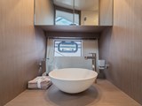 Basin with mixer tap, mirror, storage cupboards and opening porthole