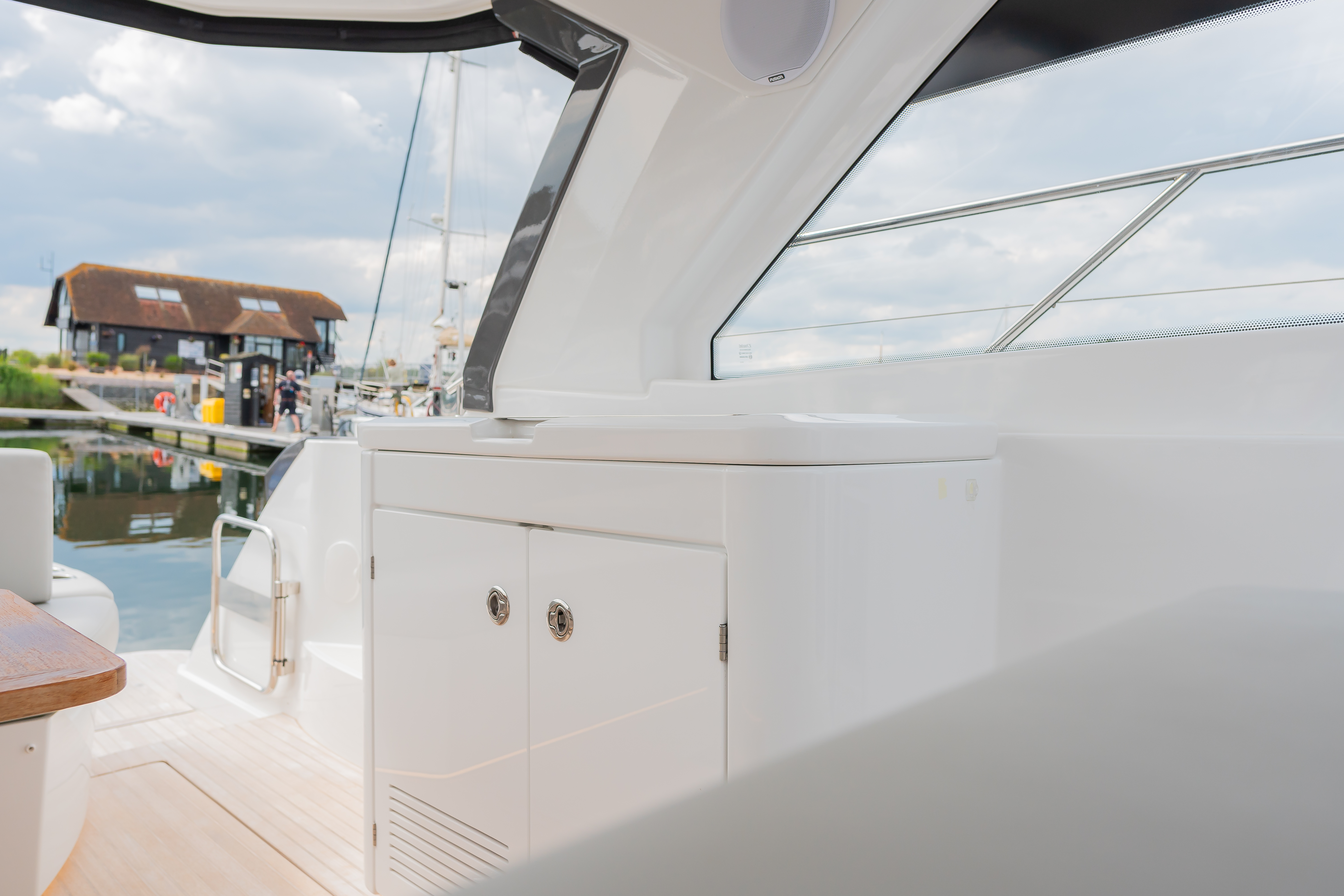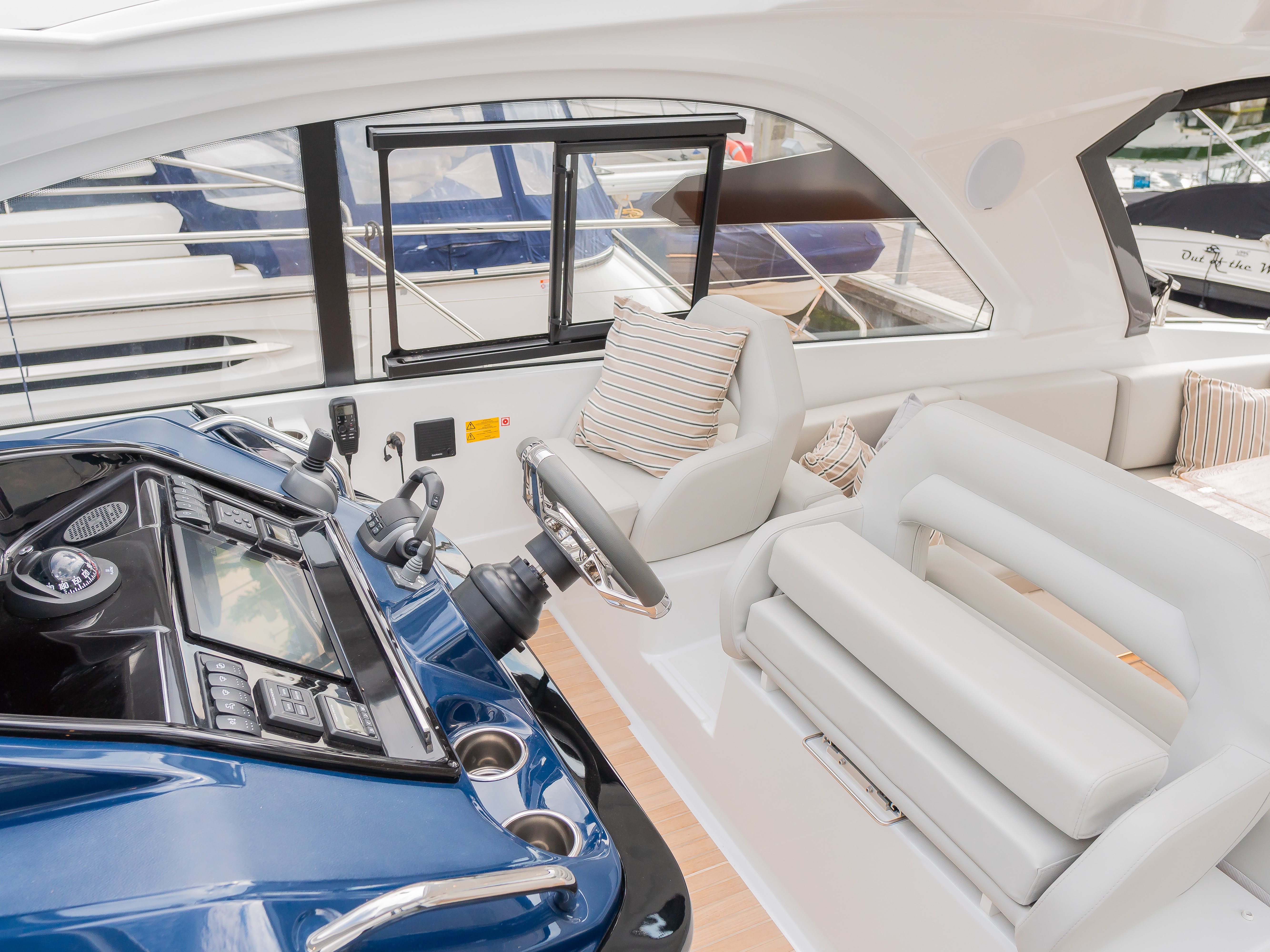 A well-specified example of the popular Gran Turismo range. ‘Christine II’ benefits from joystick control and bow thruster for easy manoeuvring, as well as, Hi/Lo bathing platform, generator and cockpit wetbar with icemaker and grill. Powered by twin Volvo D4-300hp engines, duoprops and air-step hull technology, the GT41 provides stable, fun and fast performance. Engines serviced, Hull antifouled, props painted, and anodes replaced October 2025.