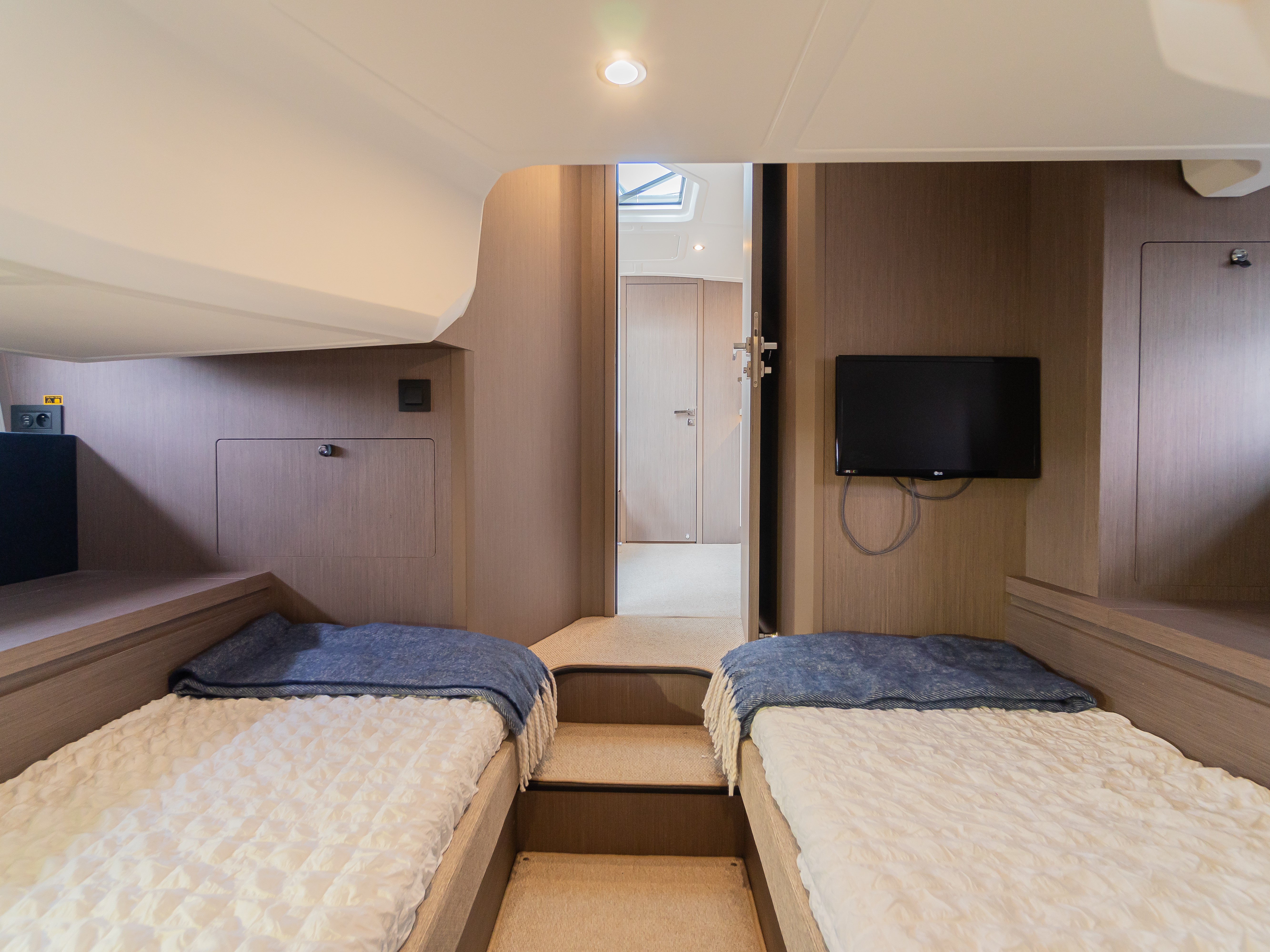 2 single berths which converts to one large double berth (0.7m x 1.95m, 2'4" x 6'5" or 1.4m x 1.95m, 4'7" x 6'5")