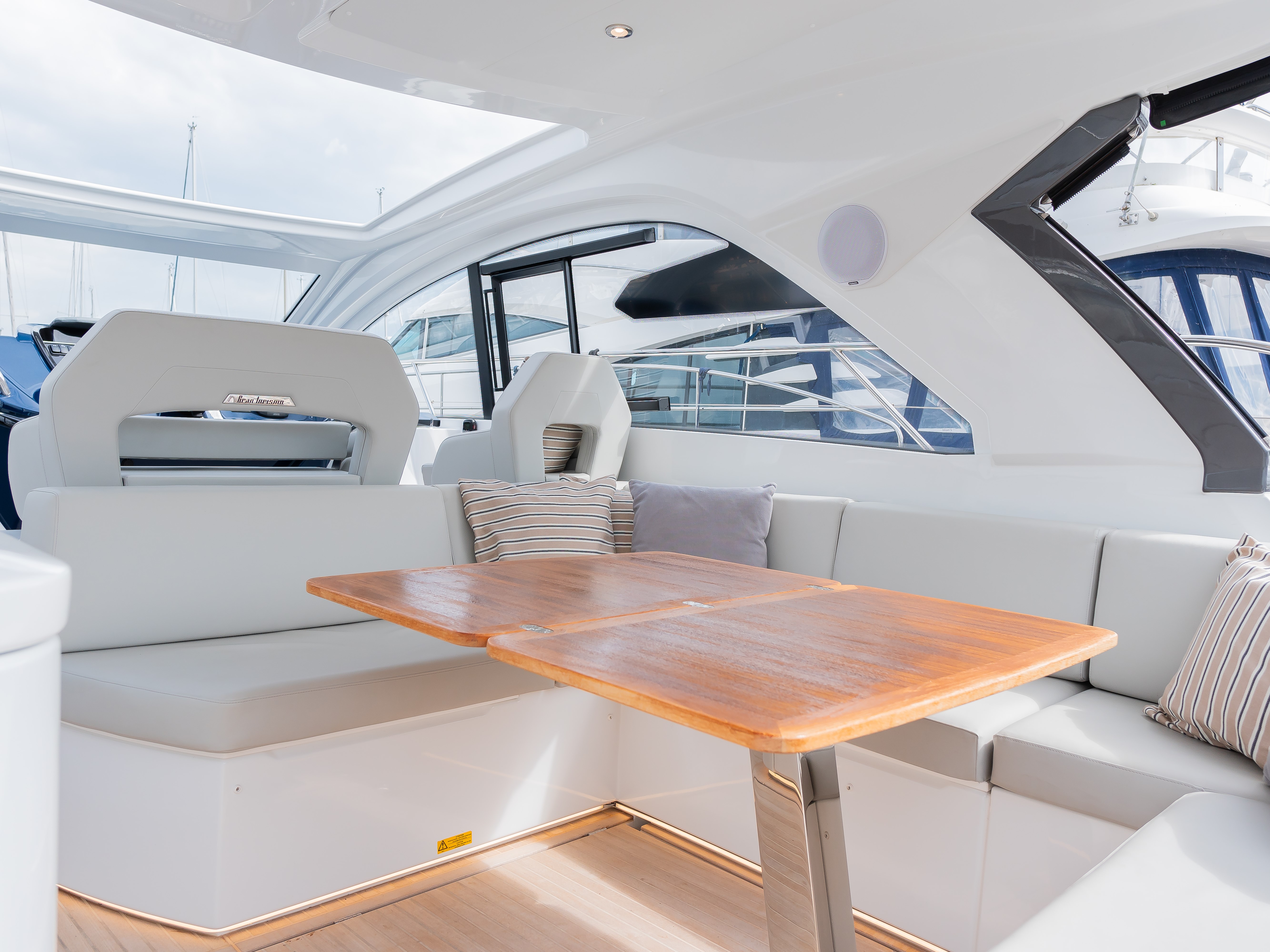 6 person saloon with solid wood cockpit table (convertible to sun pad)