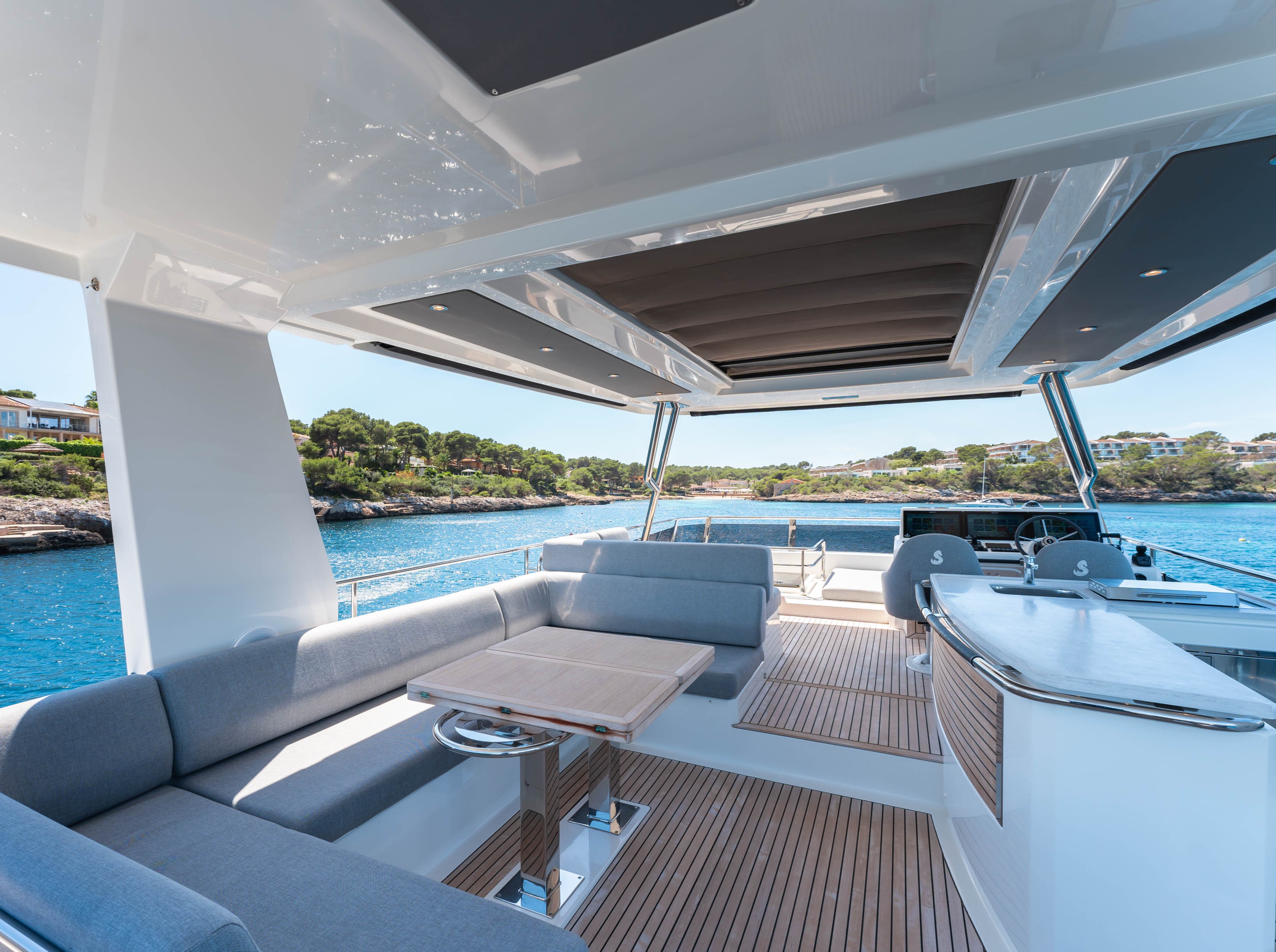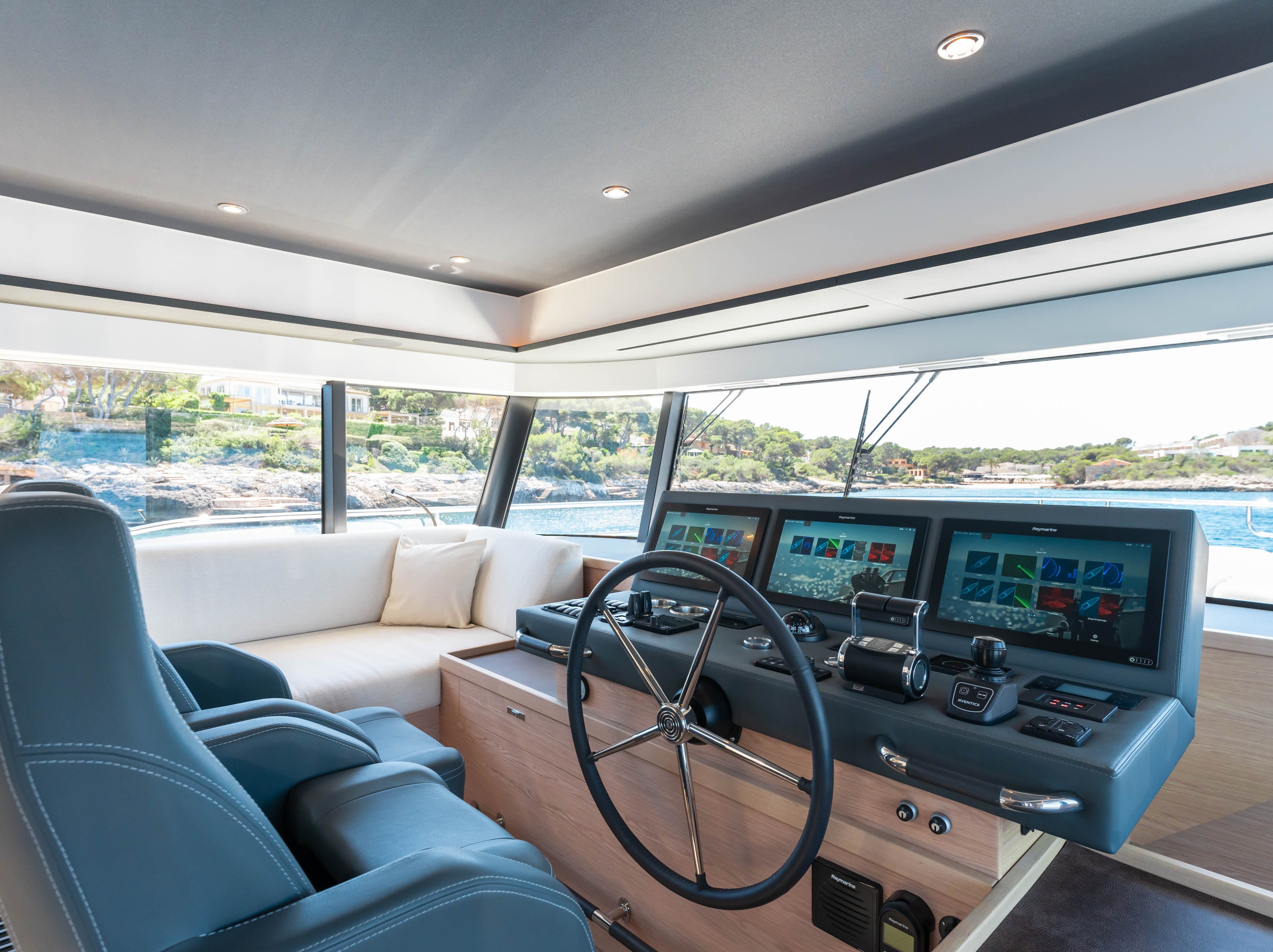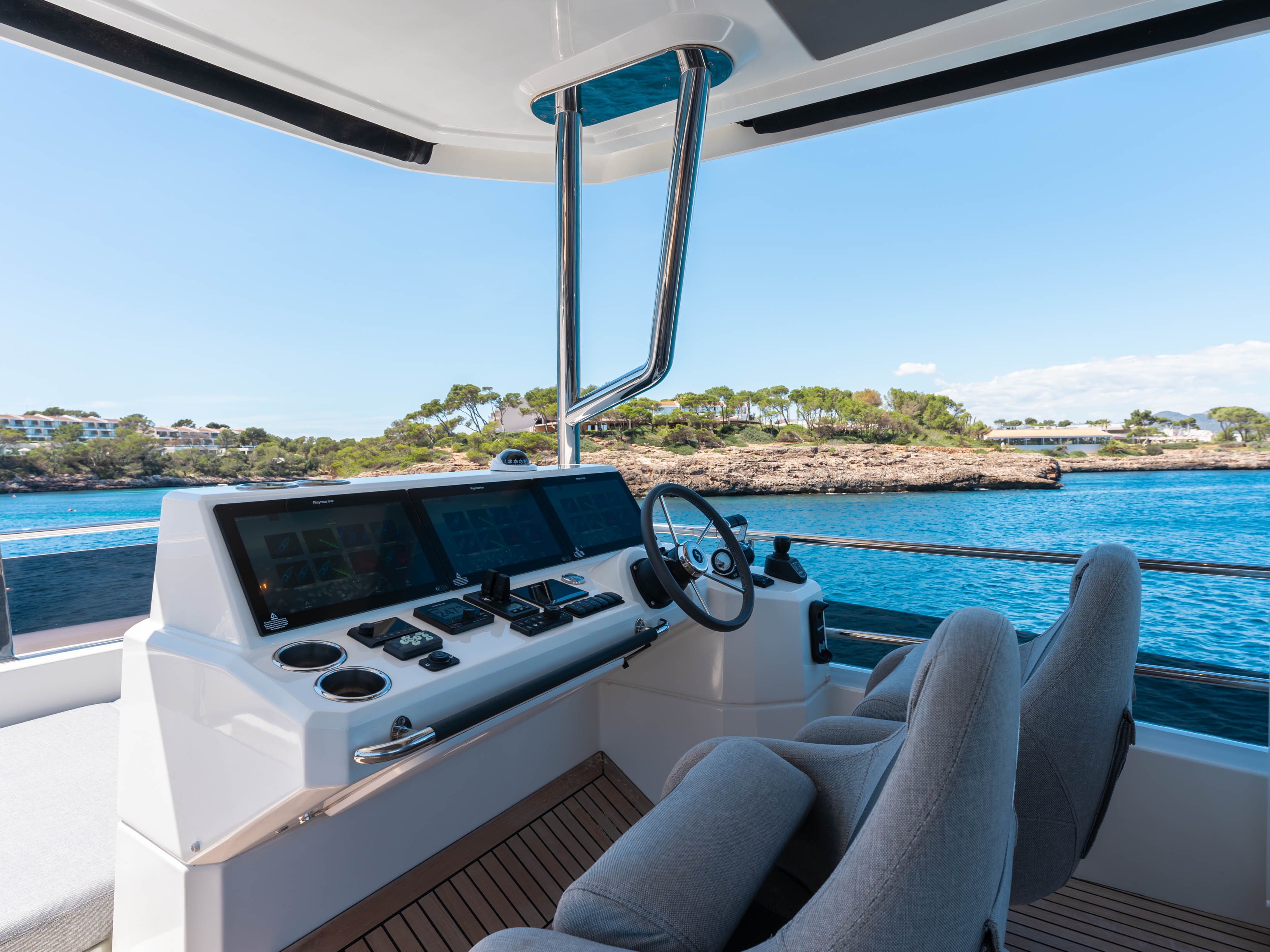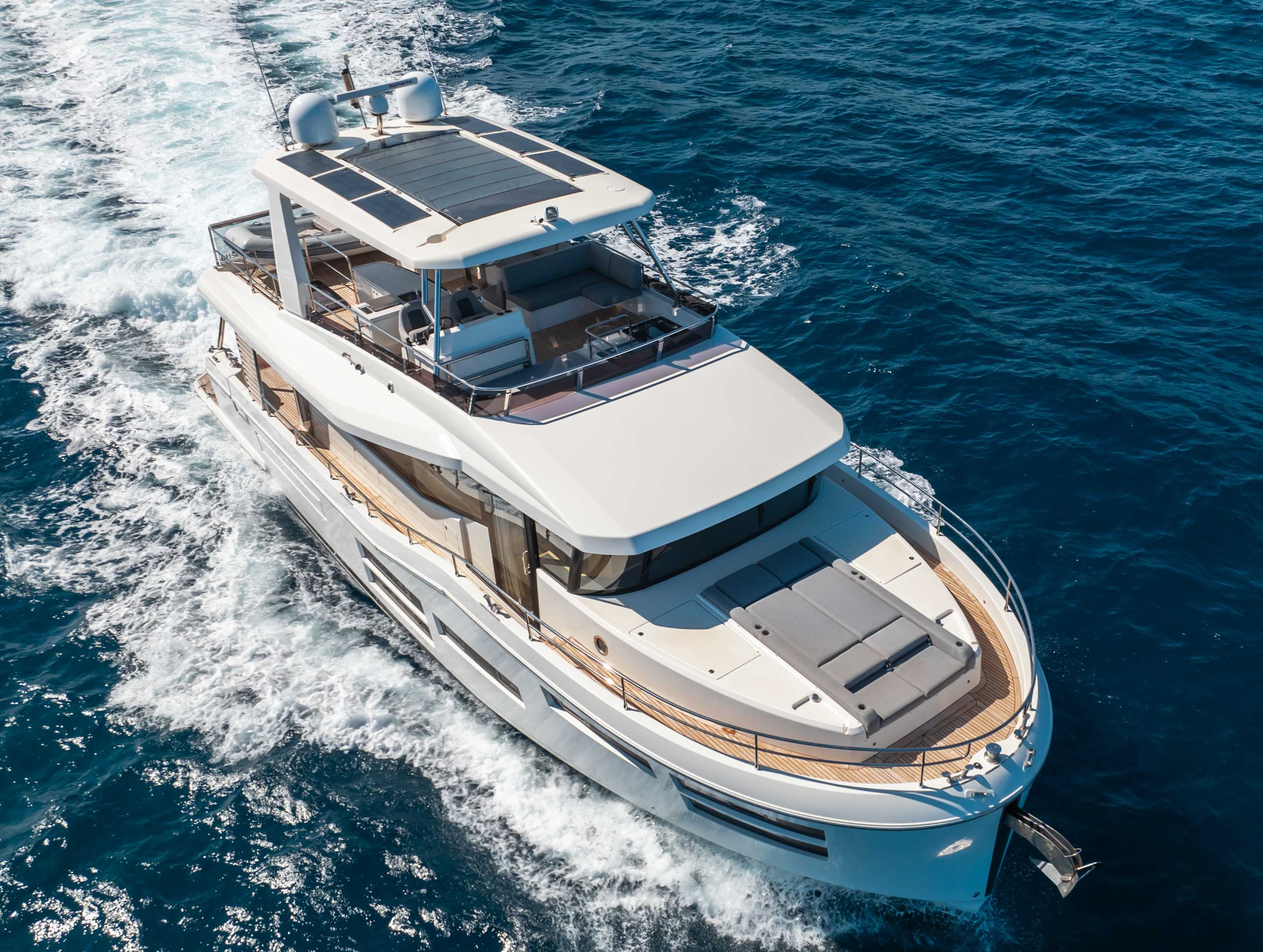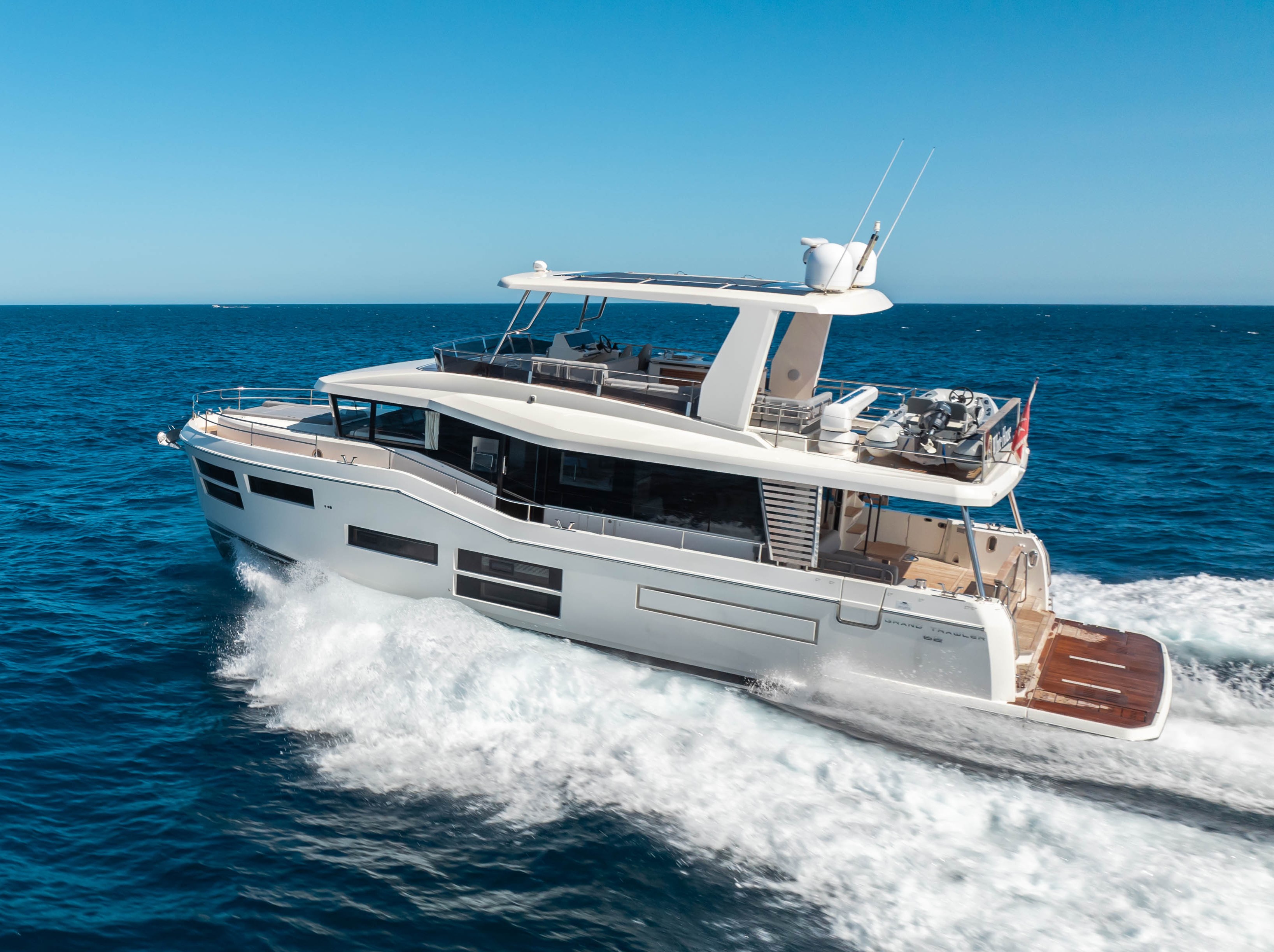 The Beneteau Grand Trawler 62 is a stylish, long-range motor yacht designed for comfortable cruising. Featuring spacious living areas, a large flybridge, and luxurious cabins, offering a perfect blend of efficiency, elegance, and seaworthiness for extended journeys.
