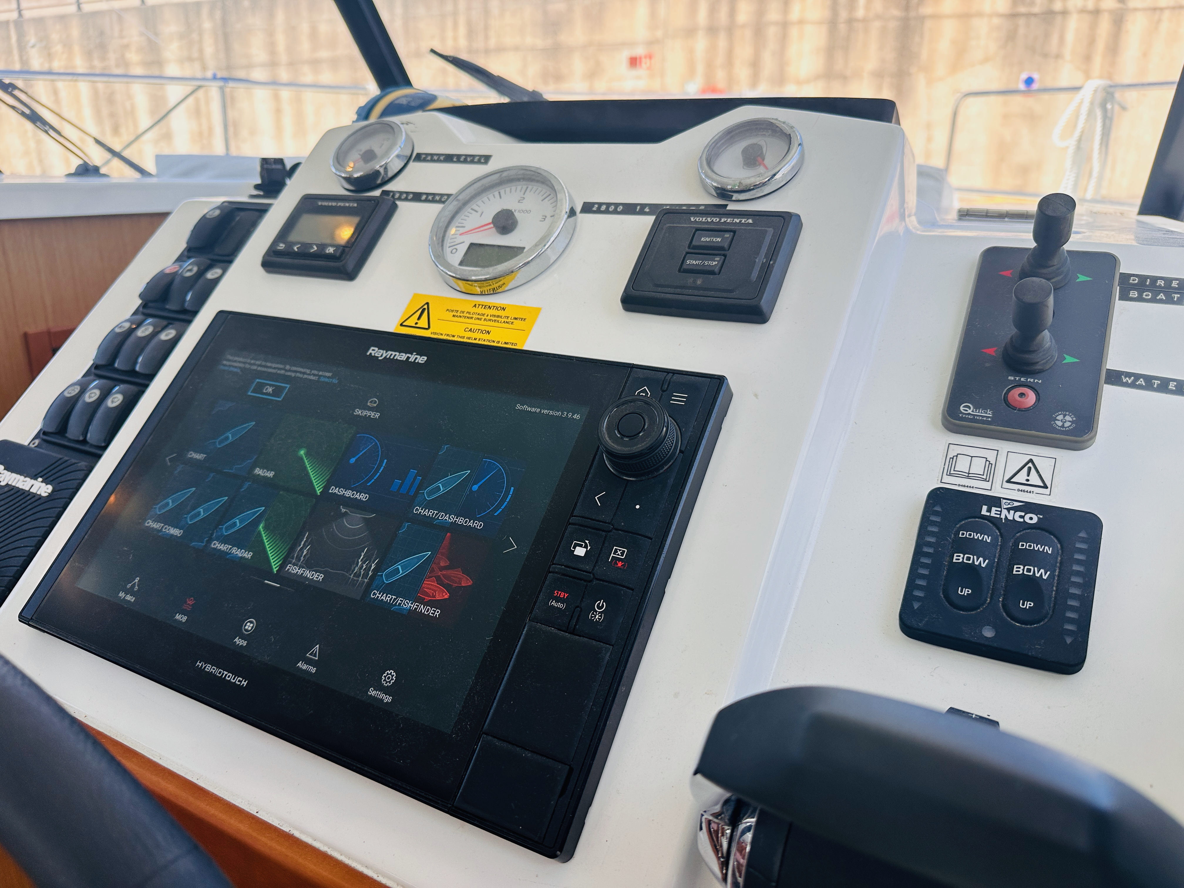 Helm console (engine, windlass, trim tabs, bow & stern thruster controls)