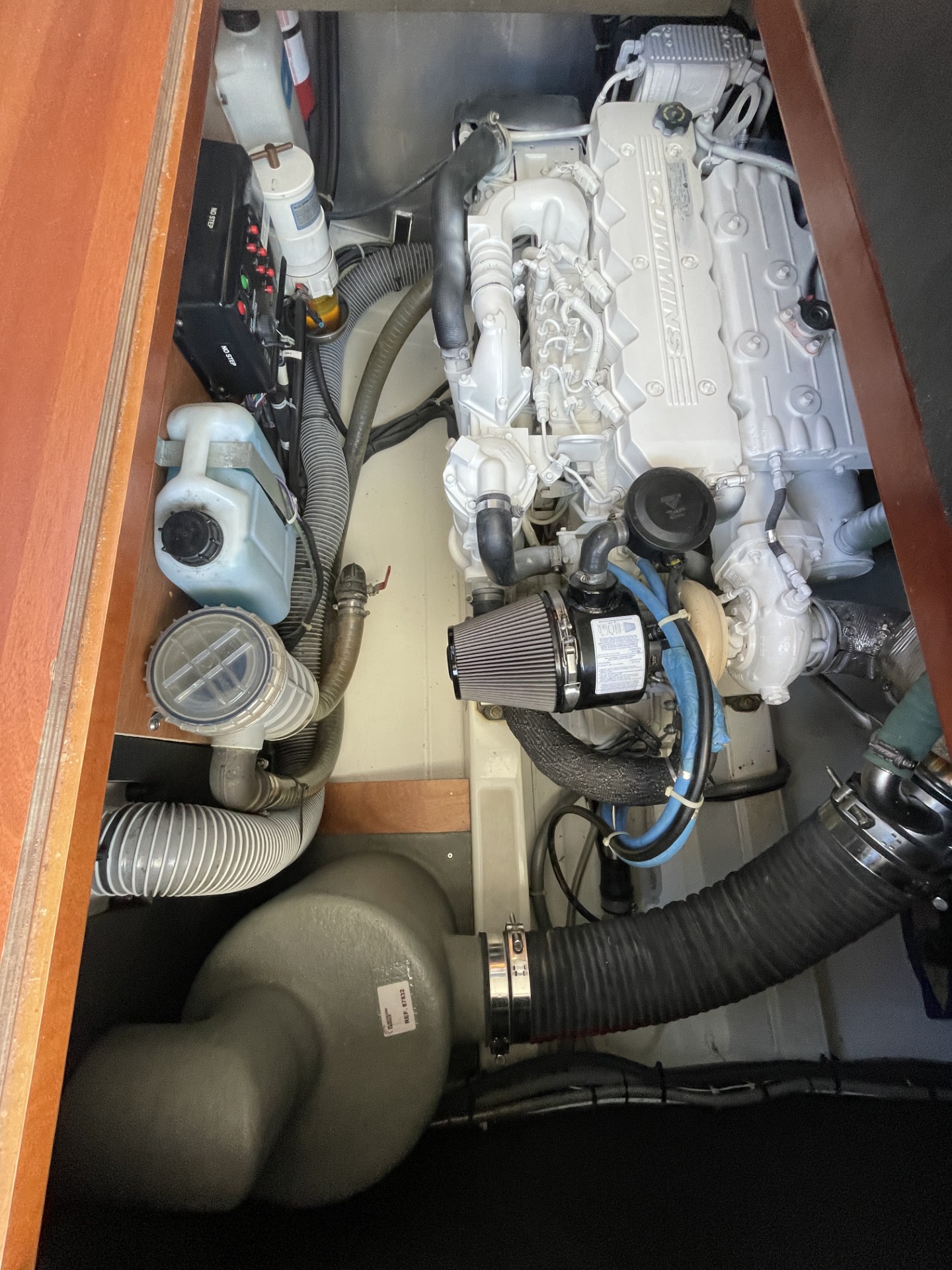 Equipment: Bow and stern thrusters, Air-conditioning, heating, RAYMARINE electronics including new chartplotter being installed in March 2026, cushions for cockpit & flybridge & deck, ELECTROLUX washing machine and extra fridge under cockpit floor