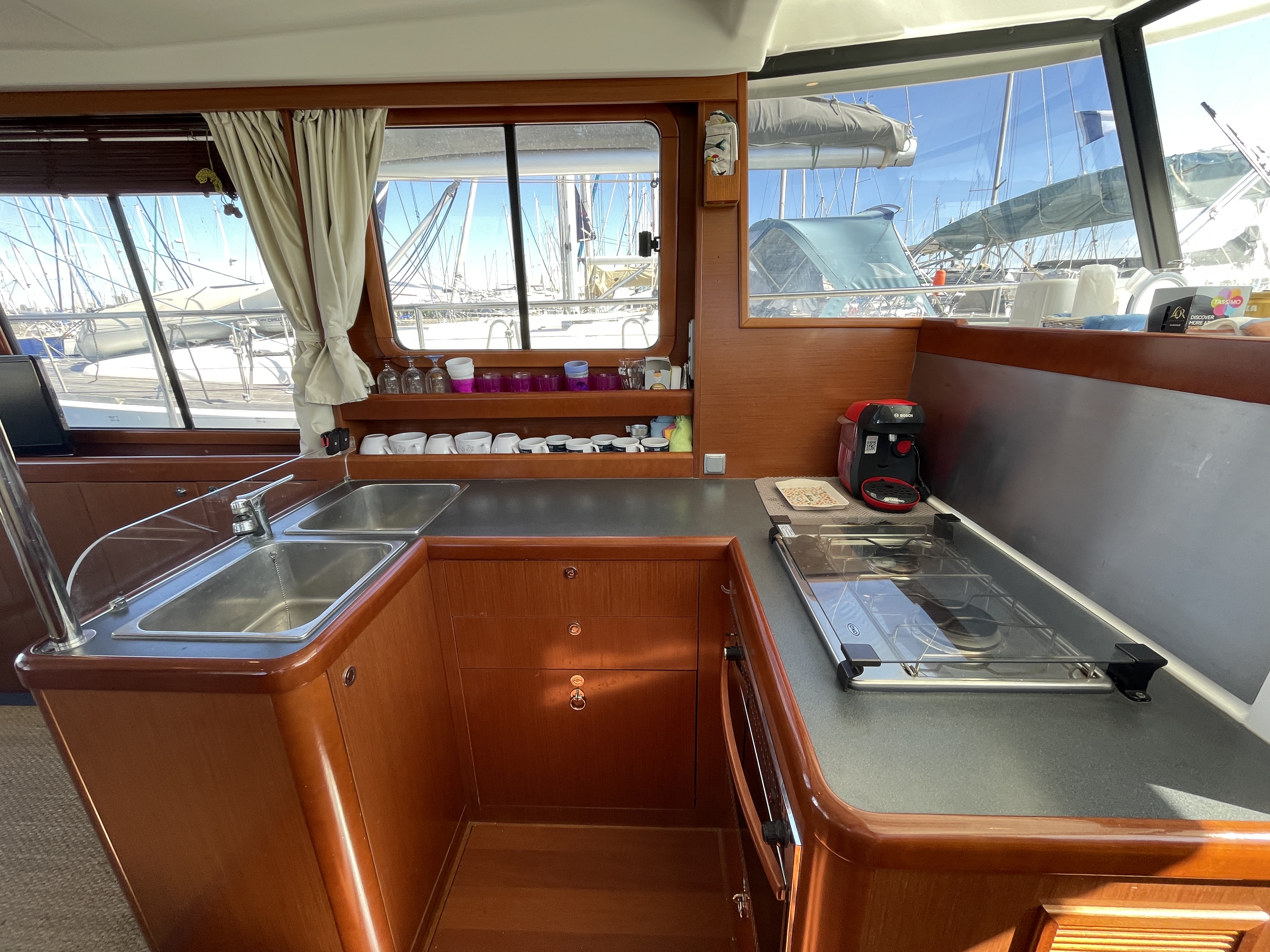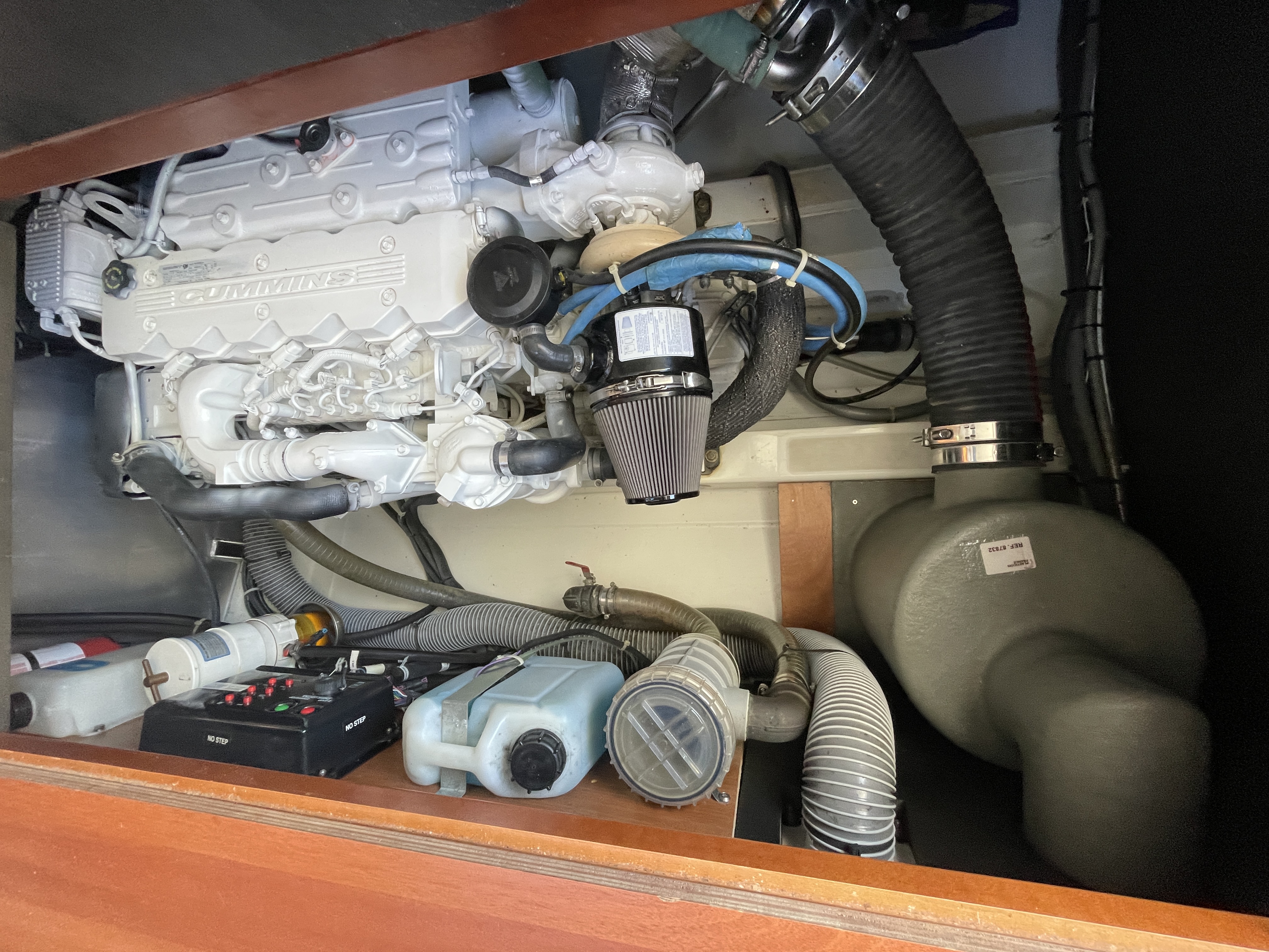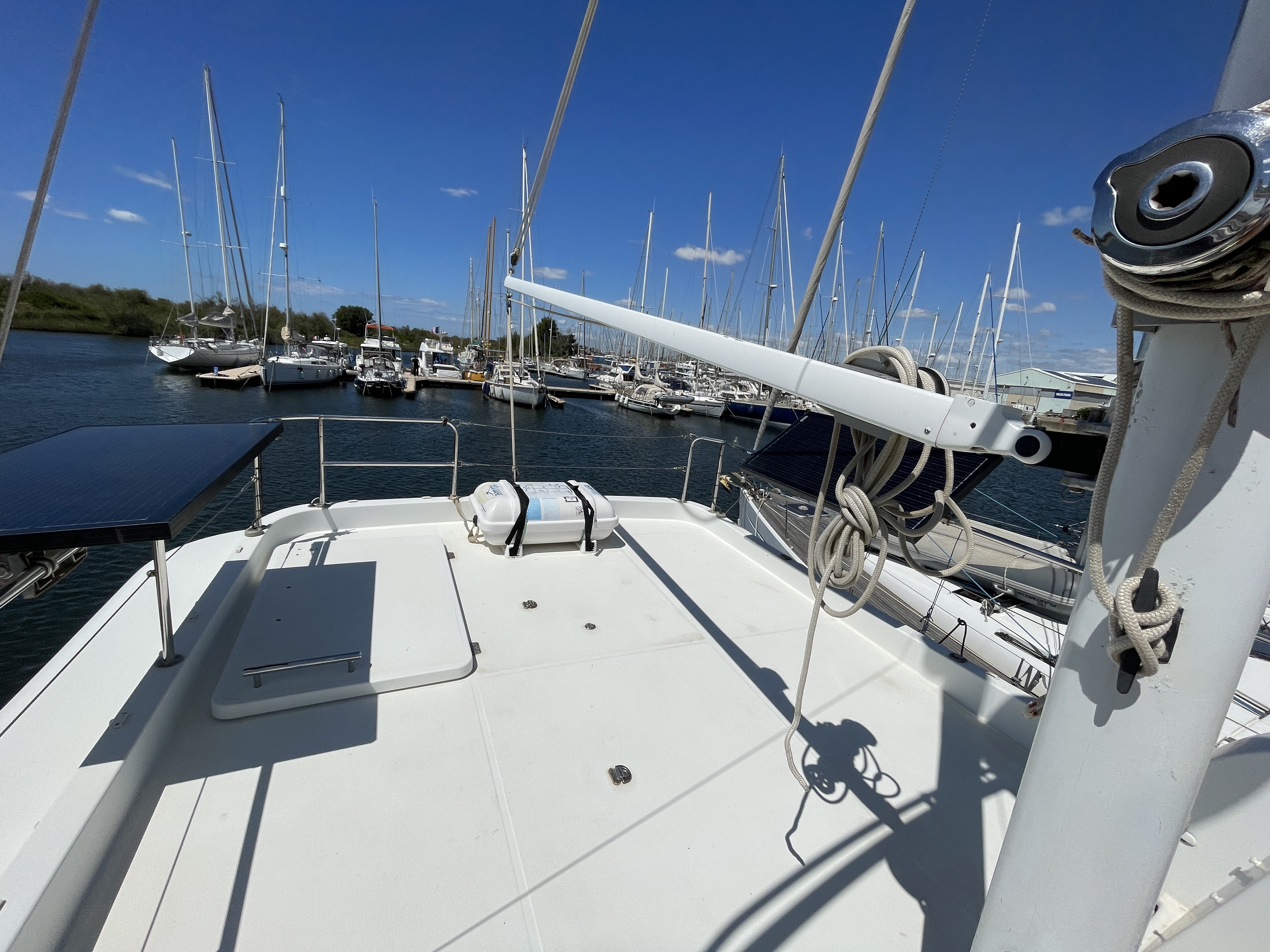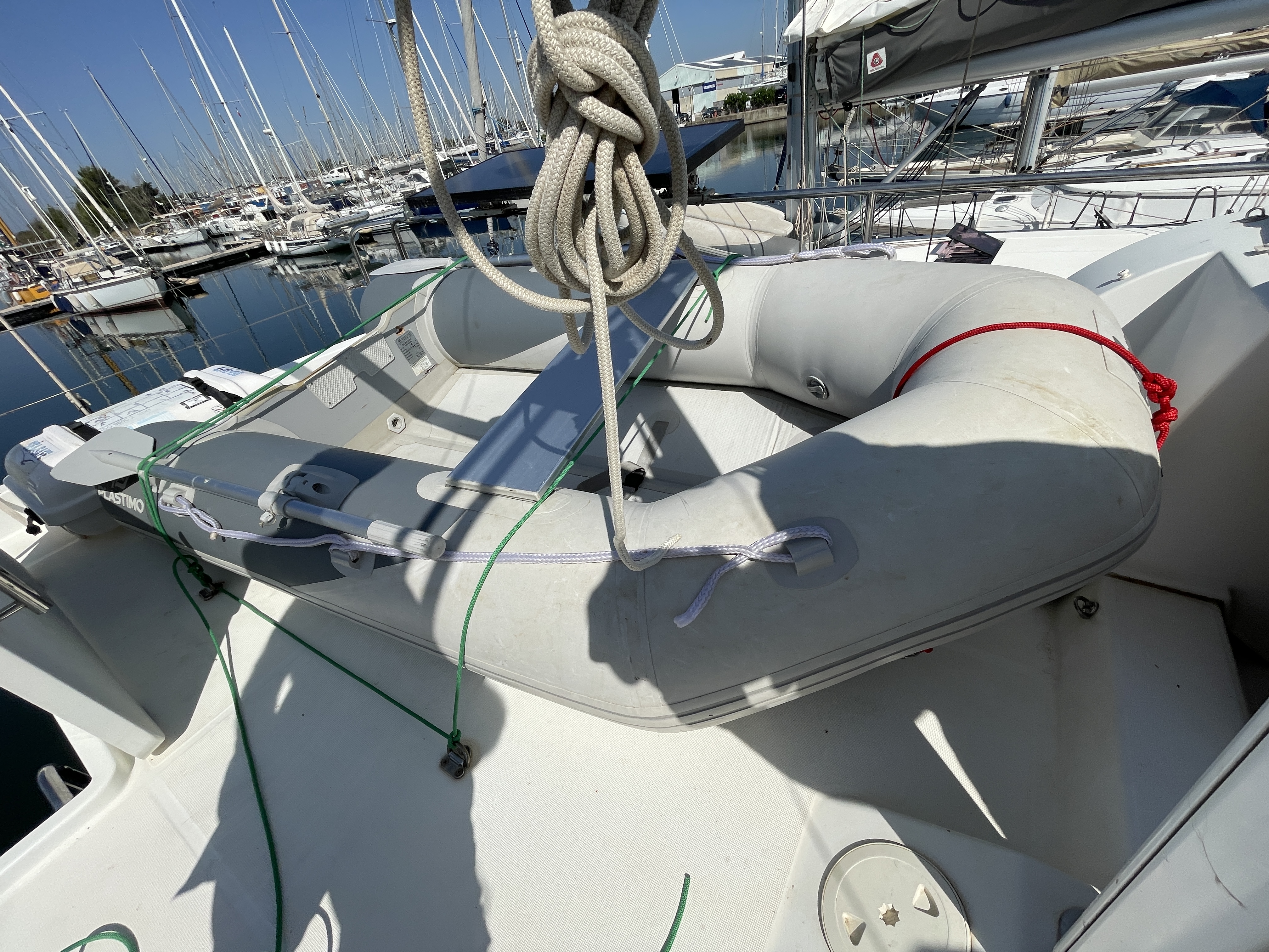 Équipement : propulseurs d'étrave et de poupe, climatisation, chauffage, électronique RAYMARINE, radar RAYMARINE, coussins pour le cockpit, le flybridge et le pont, lave-linge ELECTROLUX et réfrigérateur supplémentaire sous le plancher du cockpit