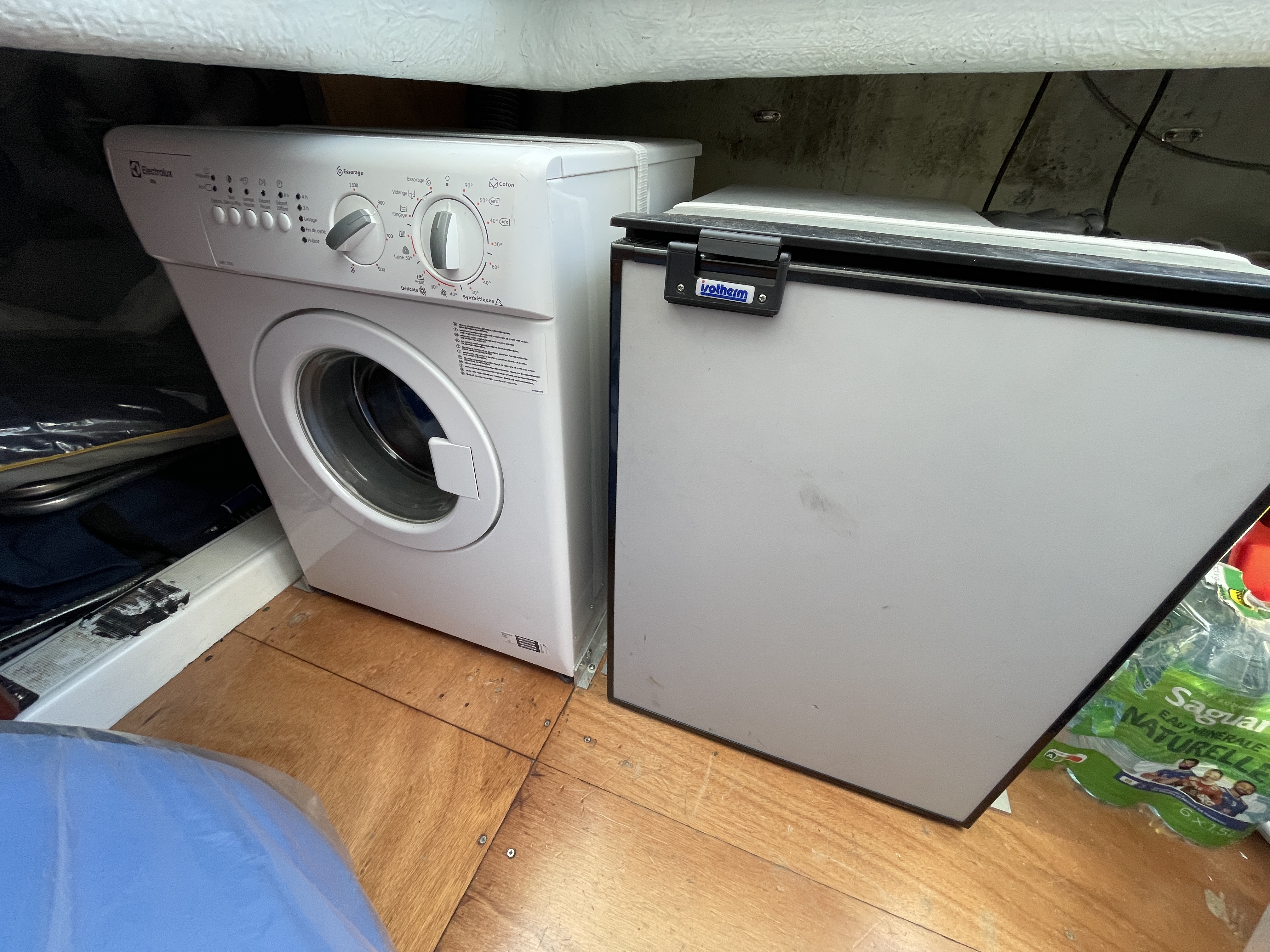 Réfrigérateur ISOTHERM sous le plancher du cockpit