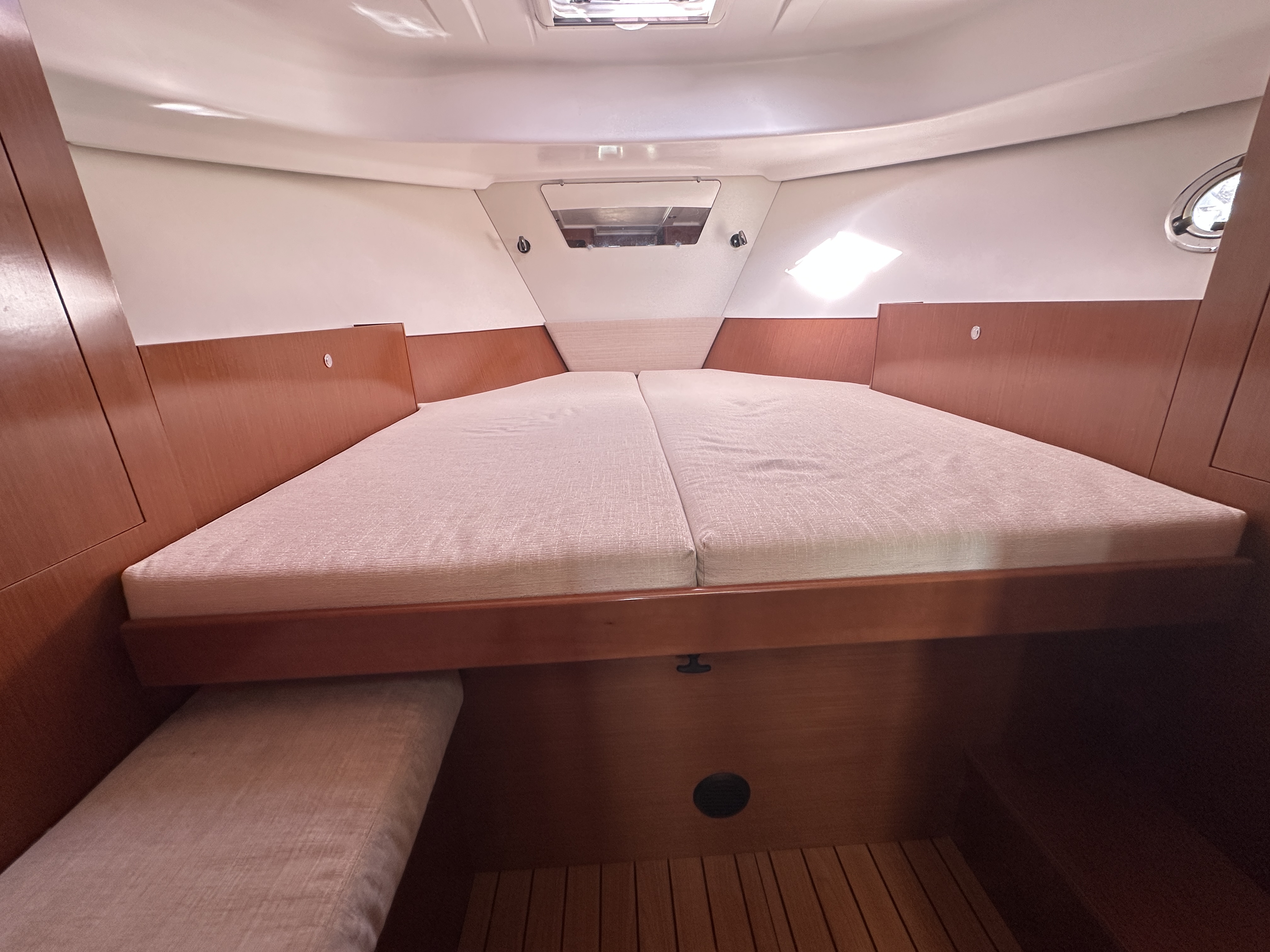 Centreline double berth (1,99 x 1,60 m / 6’6’’ x 5’3’’) with large storage space under