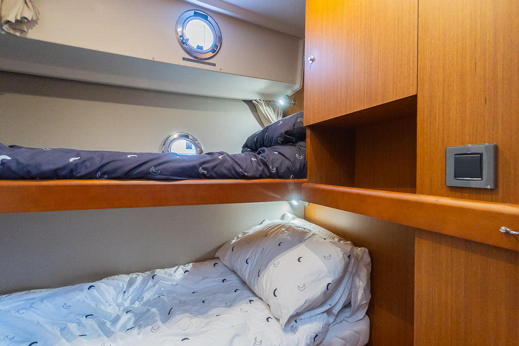 Bunk cabin to port with stowage