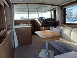 L-shaped bench seating to port aft of pilot seats with integral lockers and large folding teak table