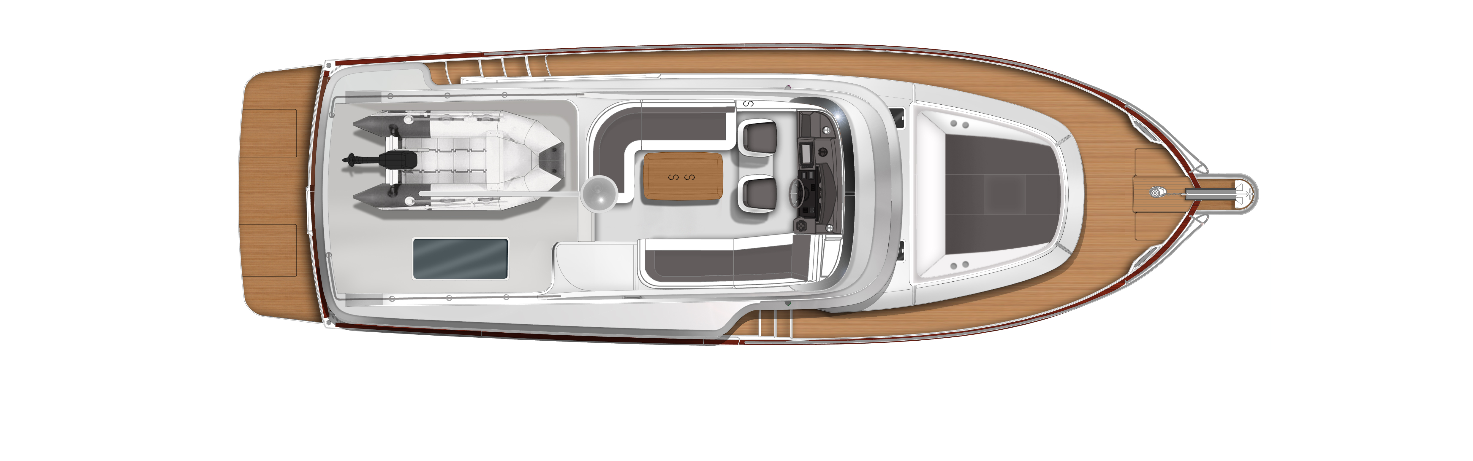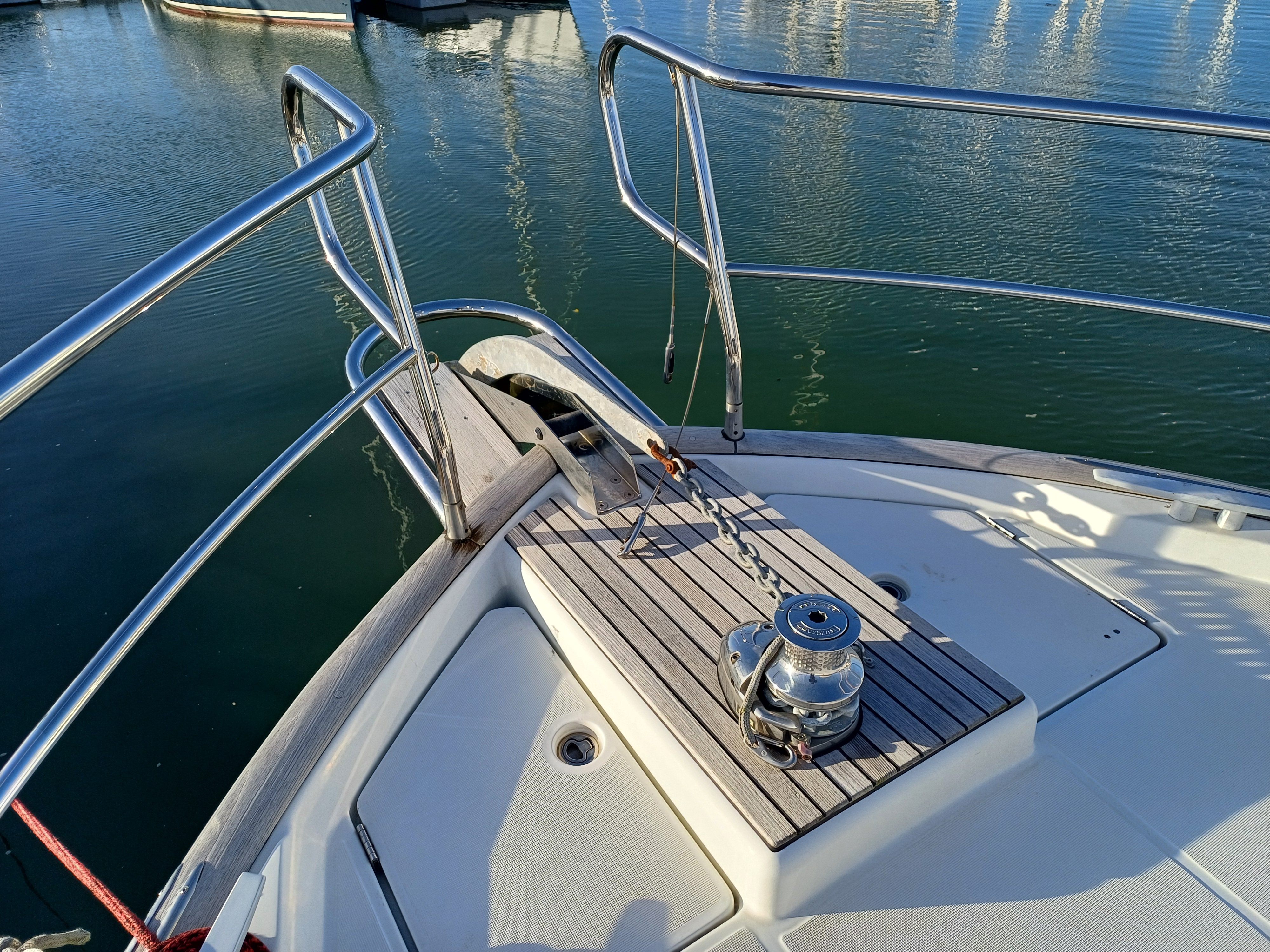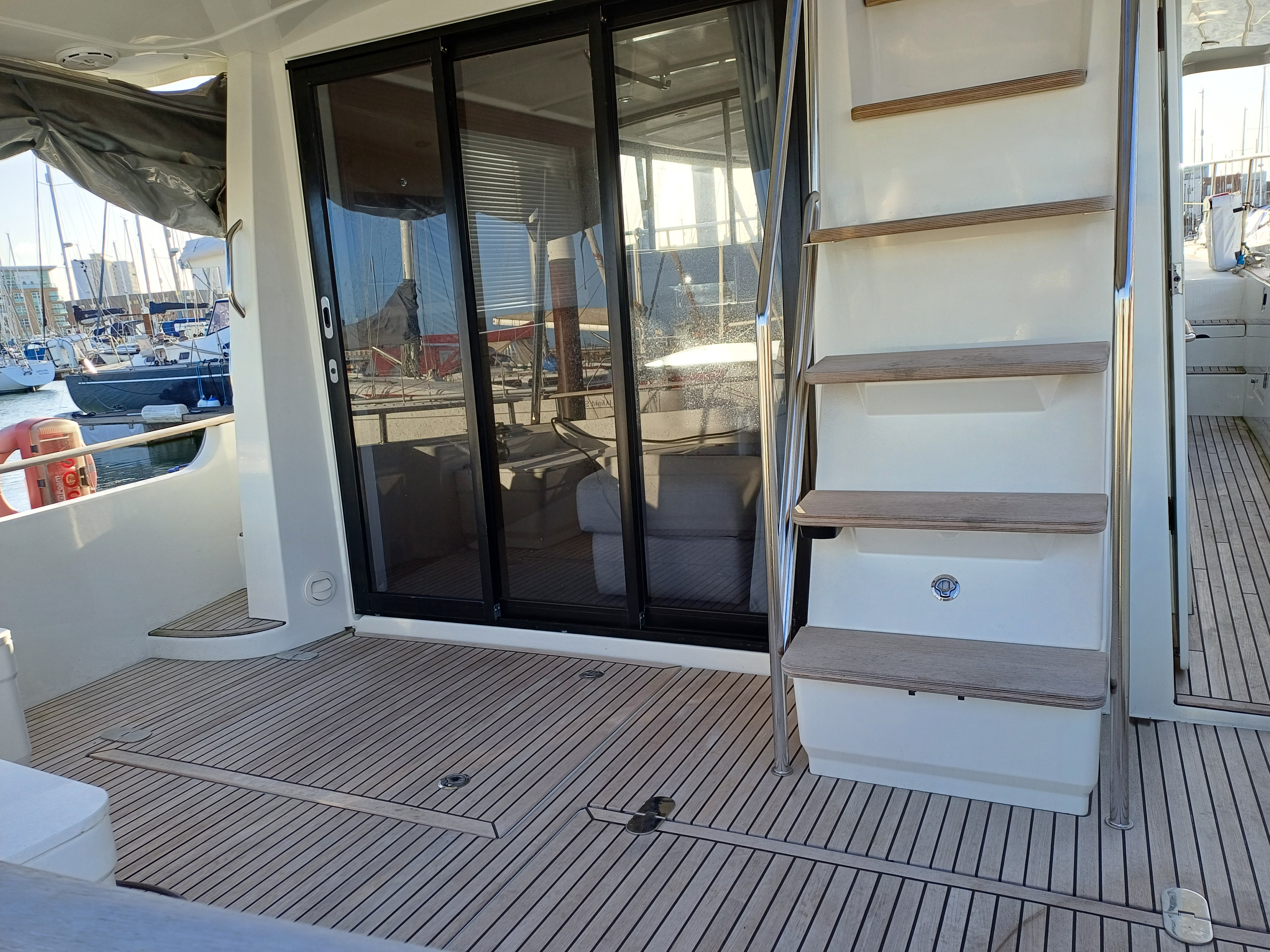 Teak decks to bathing platform, cockpit, and starboard sidewalk