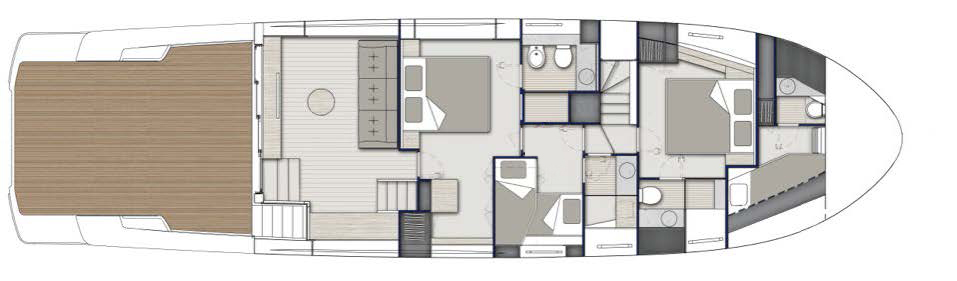 THREE CABINS AND THREE BATHROOM LAYOUT WITH CREW CABIN
