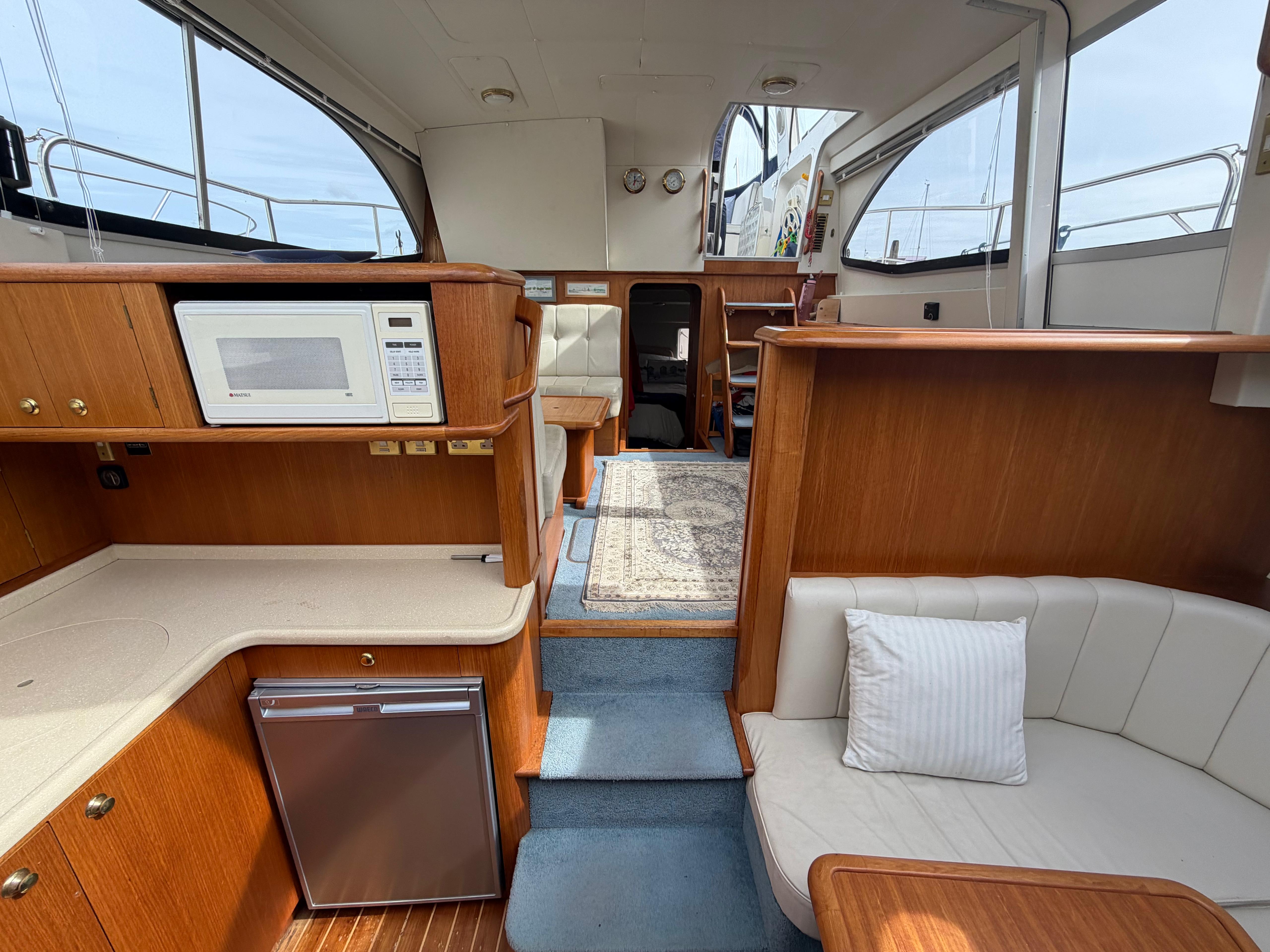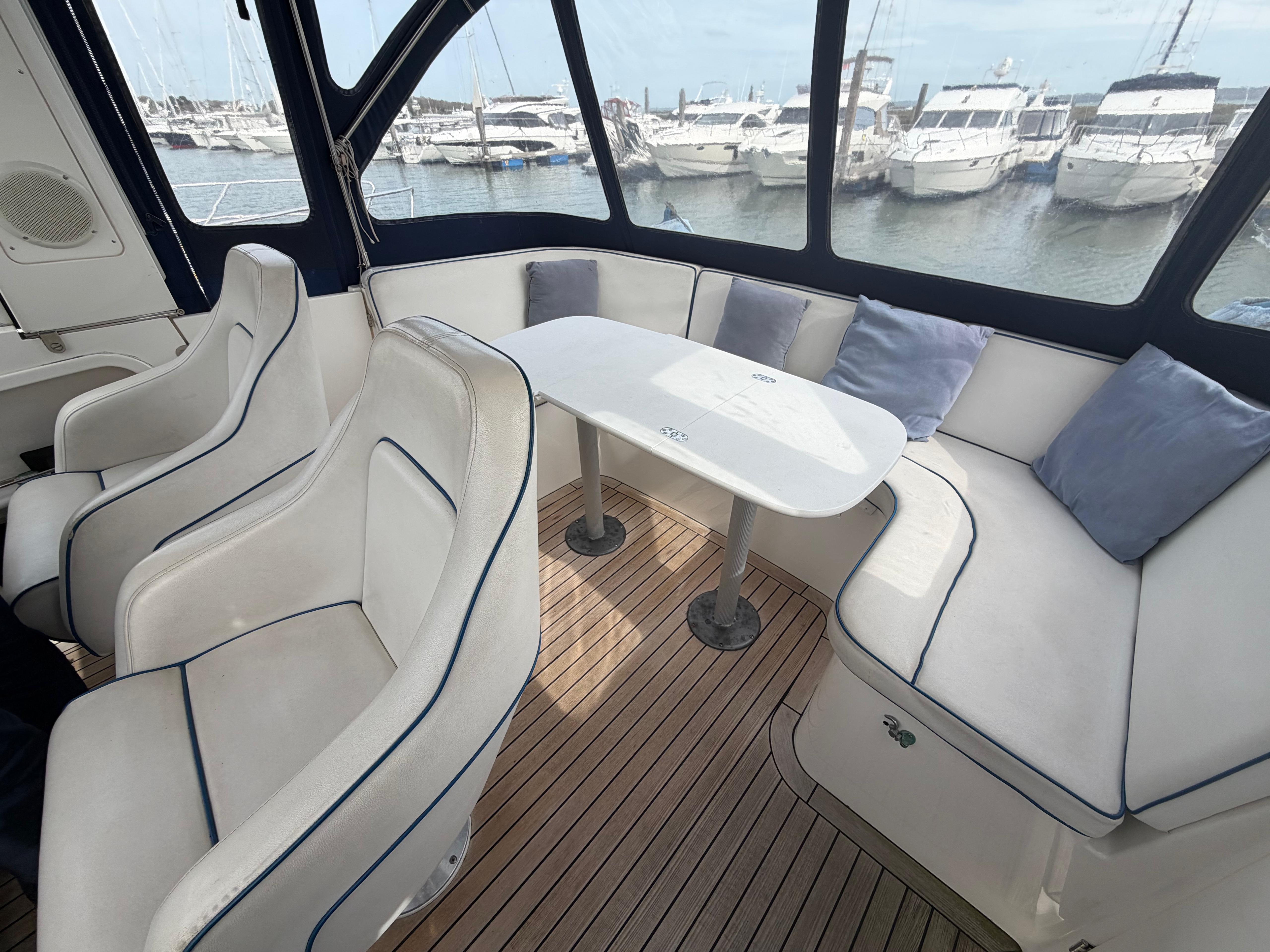 Seating area aft around table fold out leaves