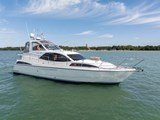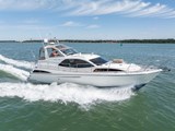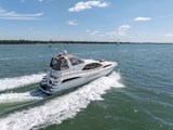 Powered by twin Volvo Penta D6 370hp engines, this example of the Broom 425 is equally at home offshore cruising or on inland waterways. Air draft is not an issue with the folding radar arch.