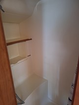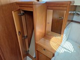 Forward  double cabin which converts to a 'V' berth, hanging wardrobe, small dressing table unit, storage and under and opening skylight hatch.