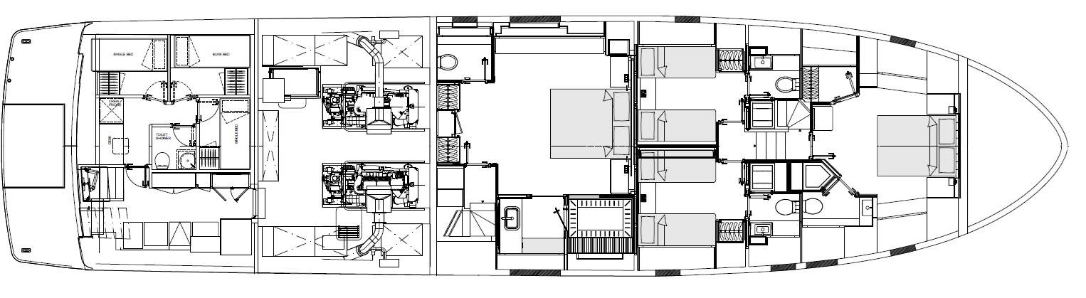FOUR CABIN LAYOUT WITH THREE CREW CABINS