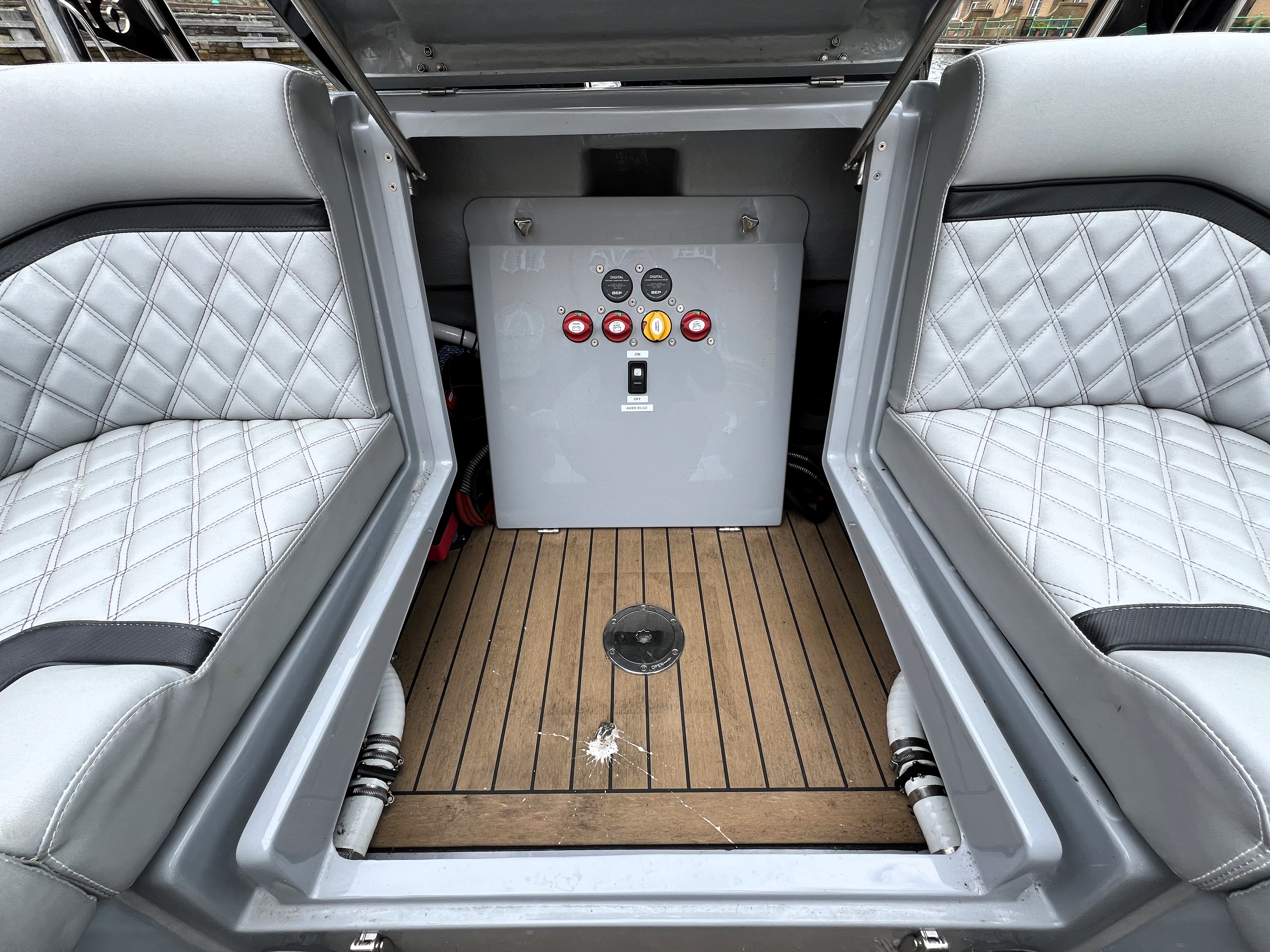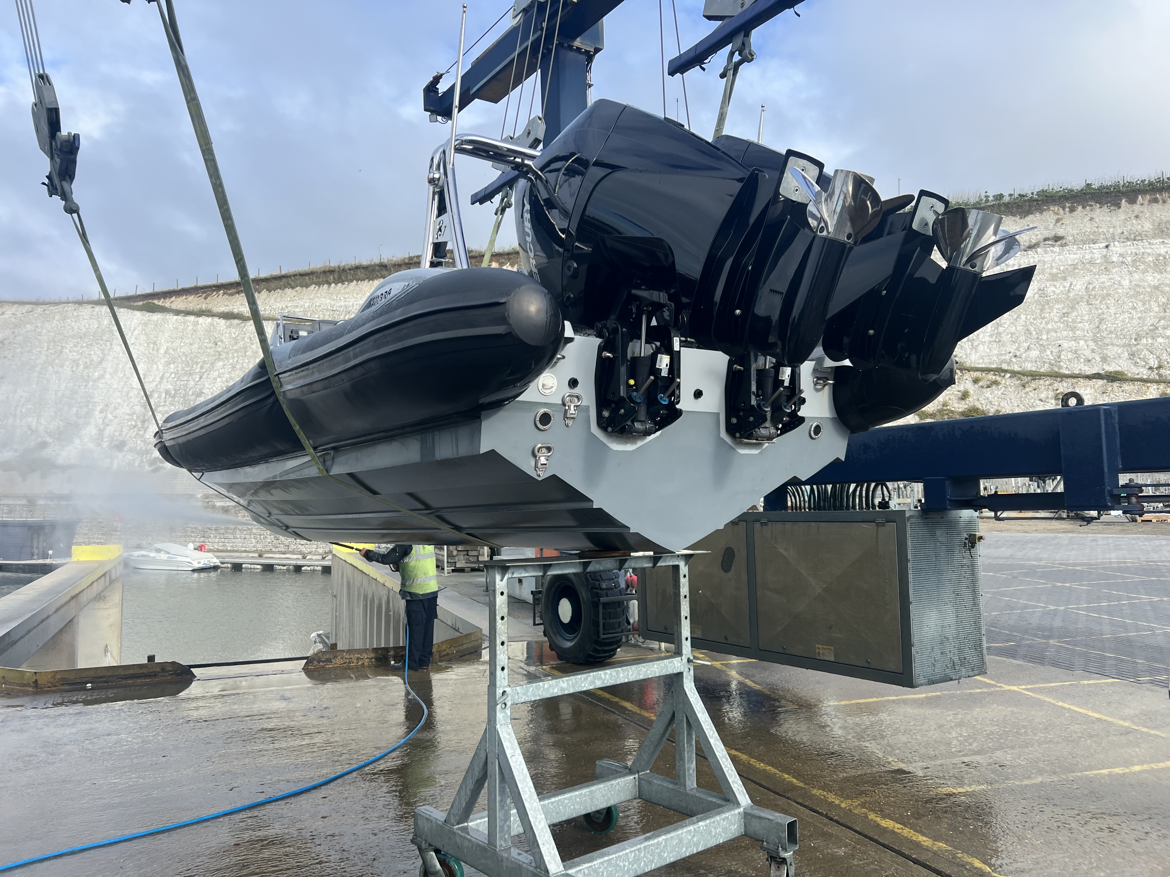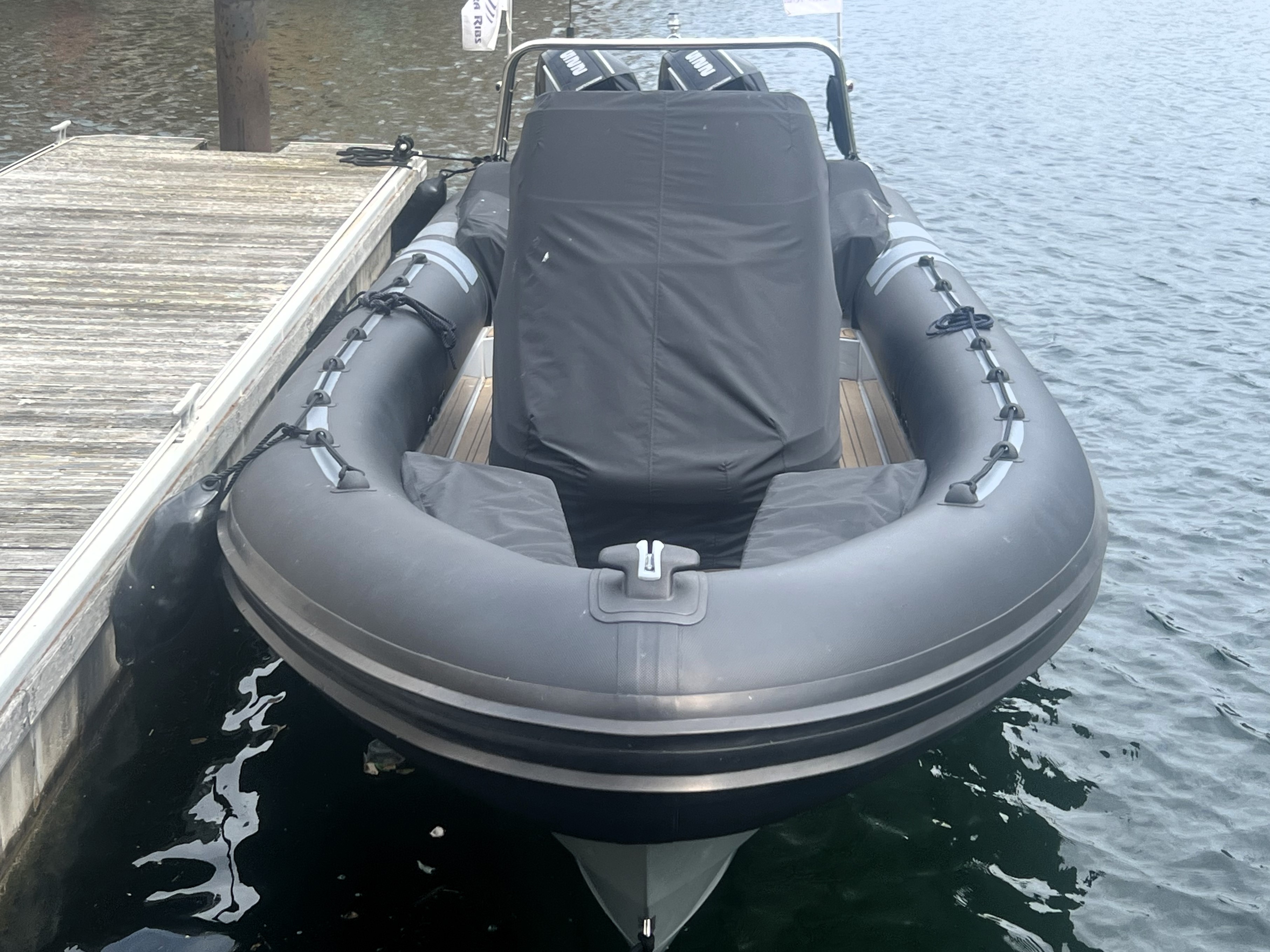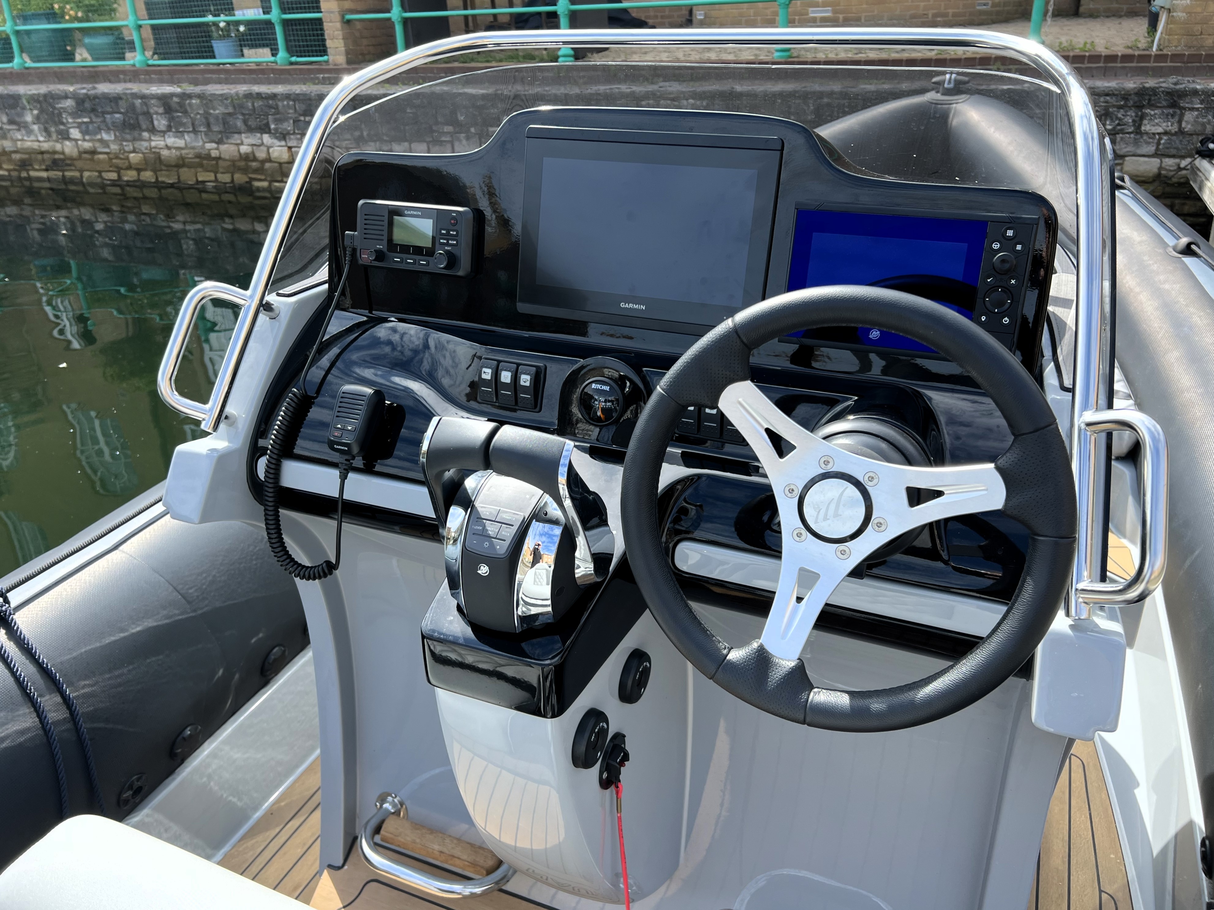 One owner from new. 2023 launch, '22 model; Cobra Nautique 8.7m fitted with Twin Mercury 225hp V6 Outboards. Speeds up to 50 knots and handling only expected from Cobra! Stylish finishings such as Black Carbon Hypalon tubes, grey grp and black accents, she is sure to stand out from the crowd. 'Banksy' is packed full of extras with suppression seats, 12" Garmin plotter, AIS, wireless phone charging, low hours and just serviced ready for the season. We highly recommend a viewing of this performance vessel. Ashore, stored inside for winter on new twin axle SBS trailer.