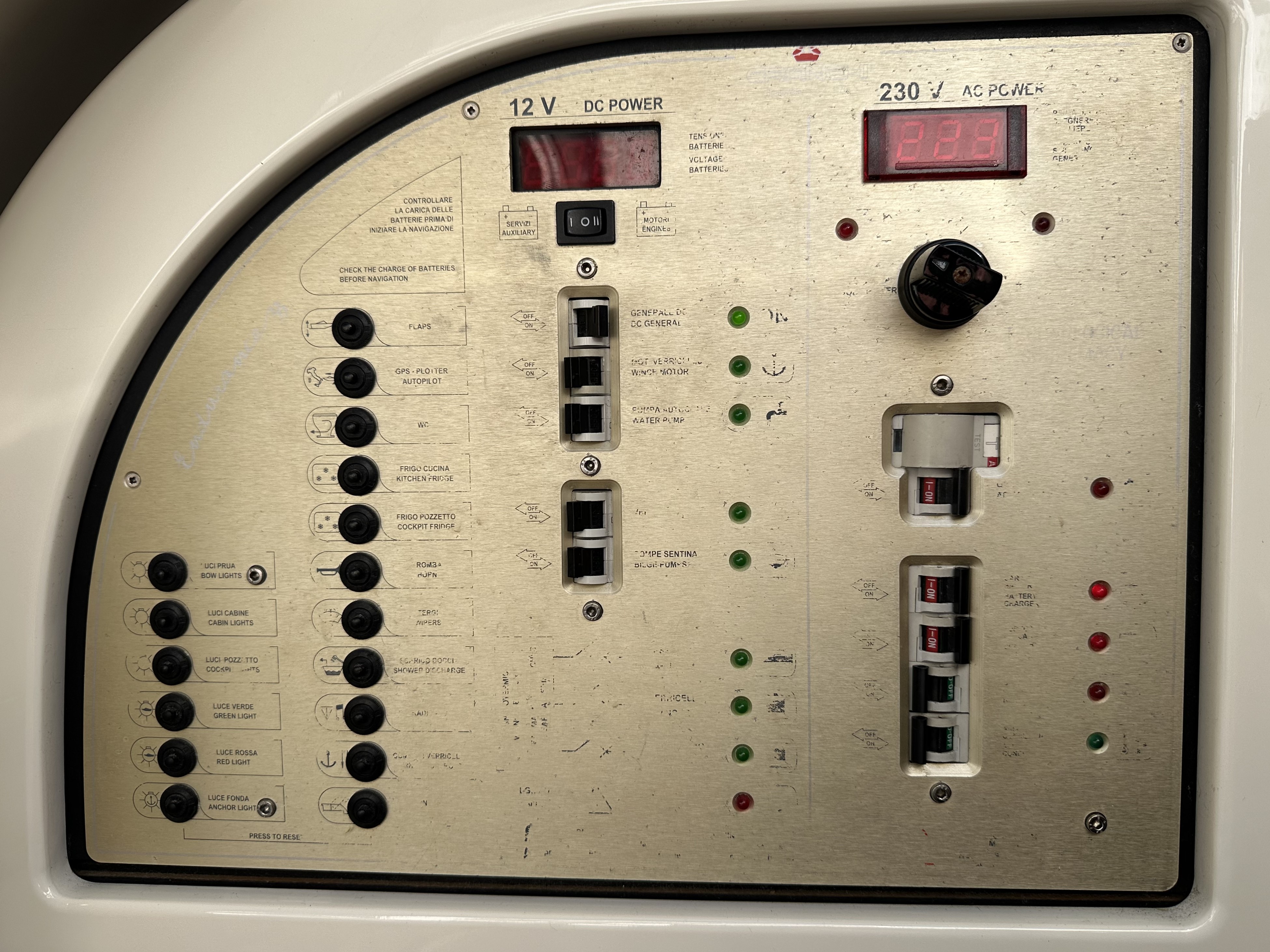 Battery isolators located in cupboard beneath cockpit wet-bar
