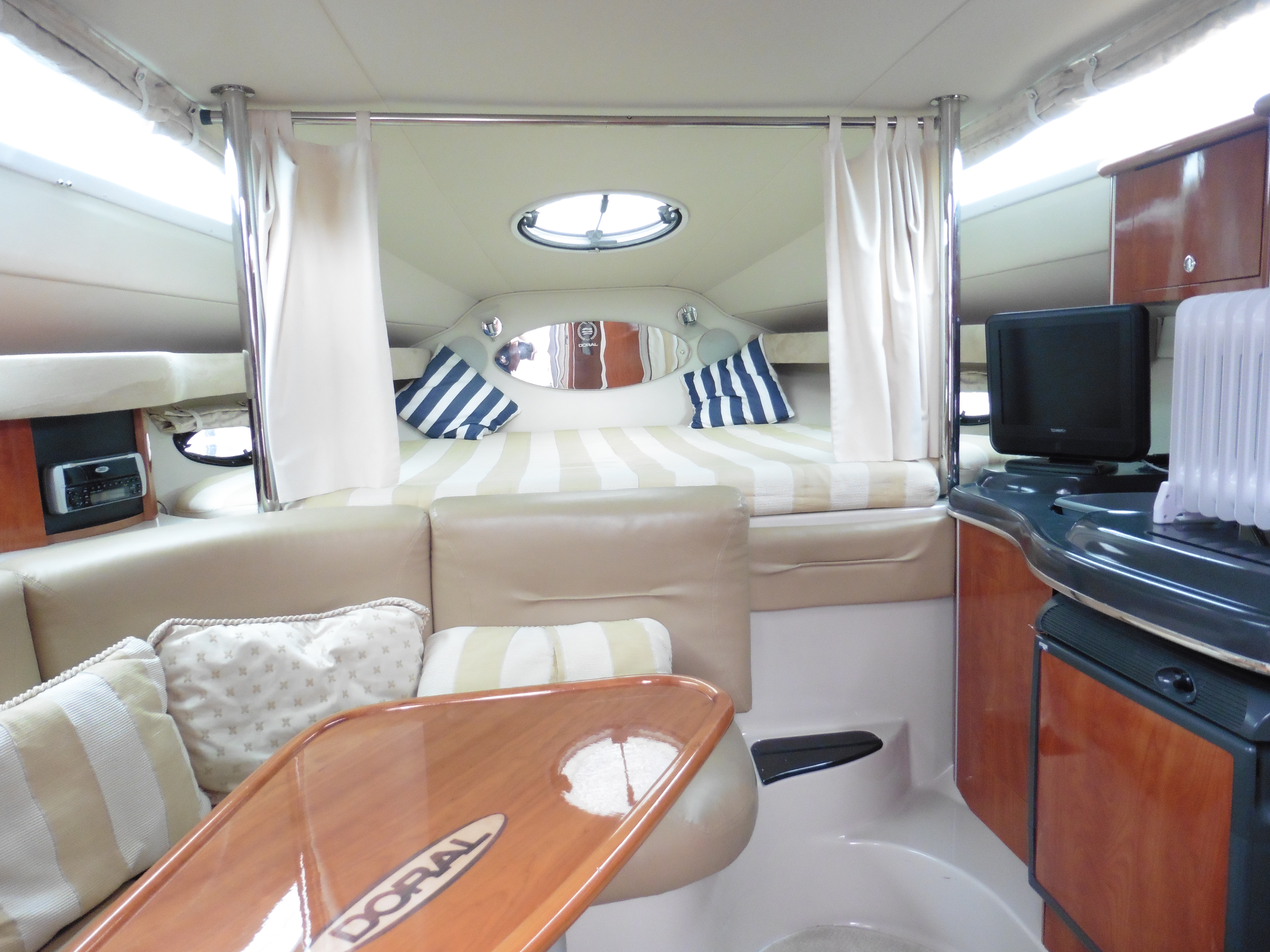 The Doral Prestancia is a stylish boat that has an individual air about it. Perfect for a couple of small family, the large cockpit provides ample seating as well as an excellent helm position. Dedicated berths for four with an occasional berth in the saloon means everyone has a comfortable bed and the galley has all the necessary equipment to whip up a quick meal. At 32ft the boat is a great for both coastal and inland waterways and far surpasses the perceived space for a boat of this size.