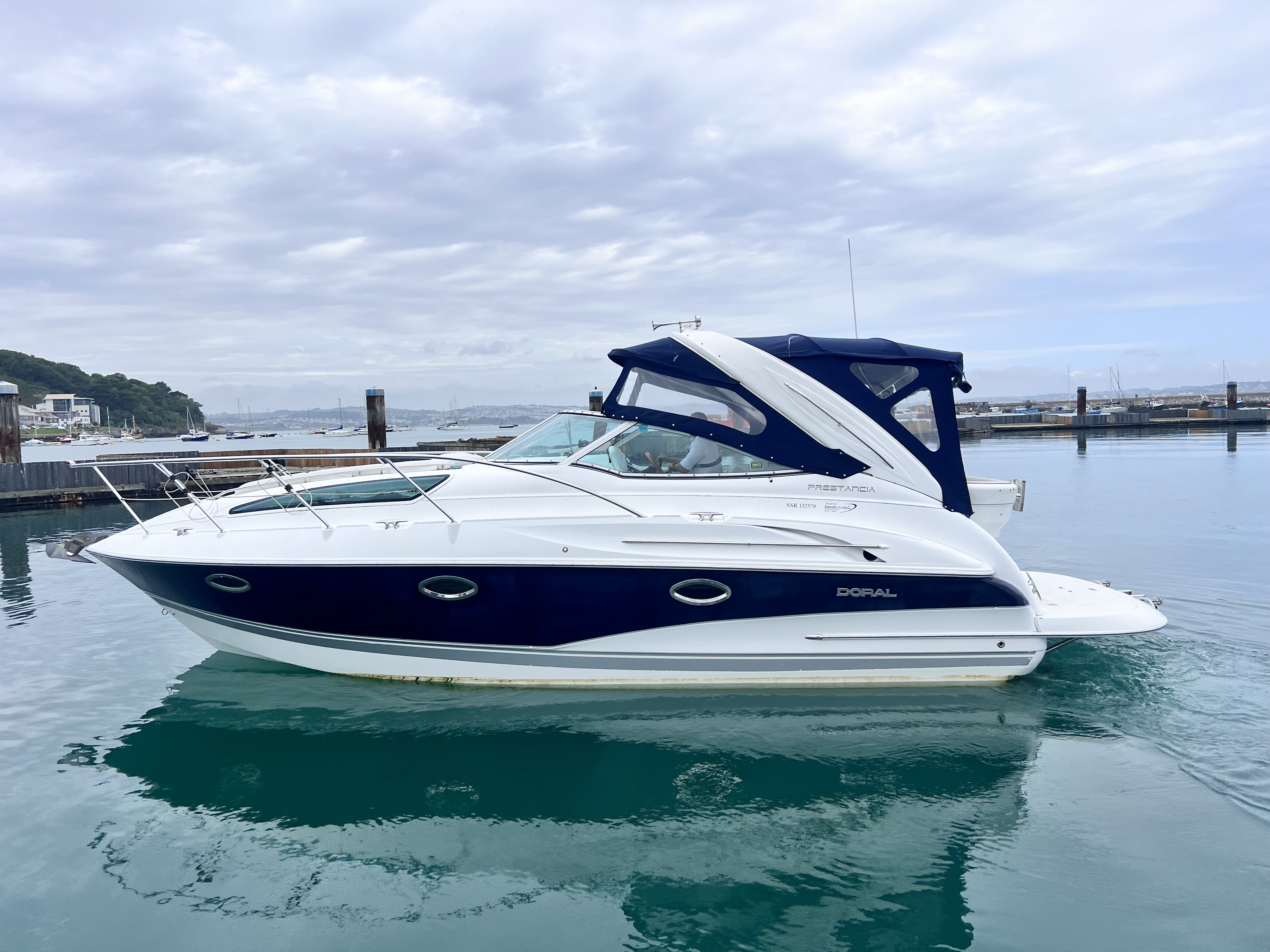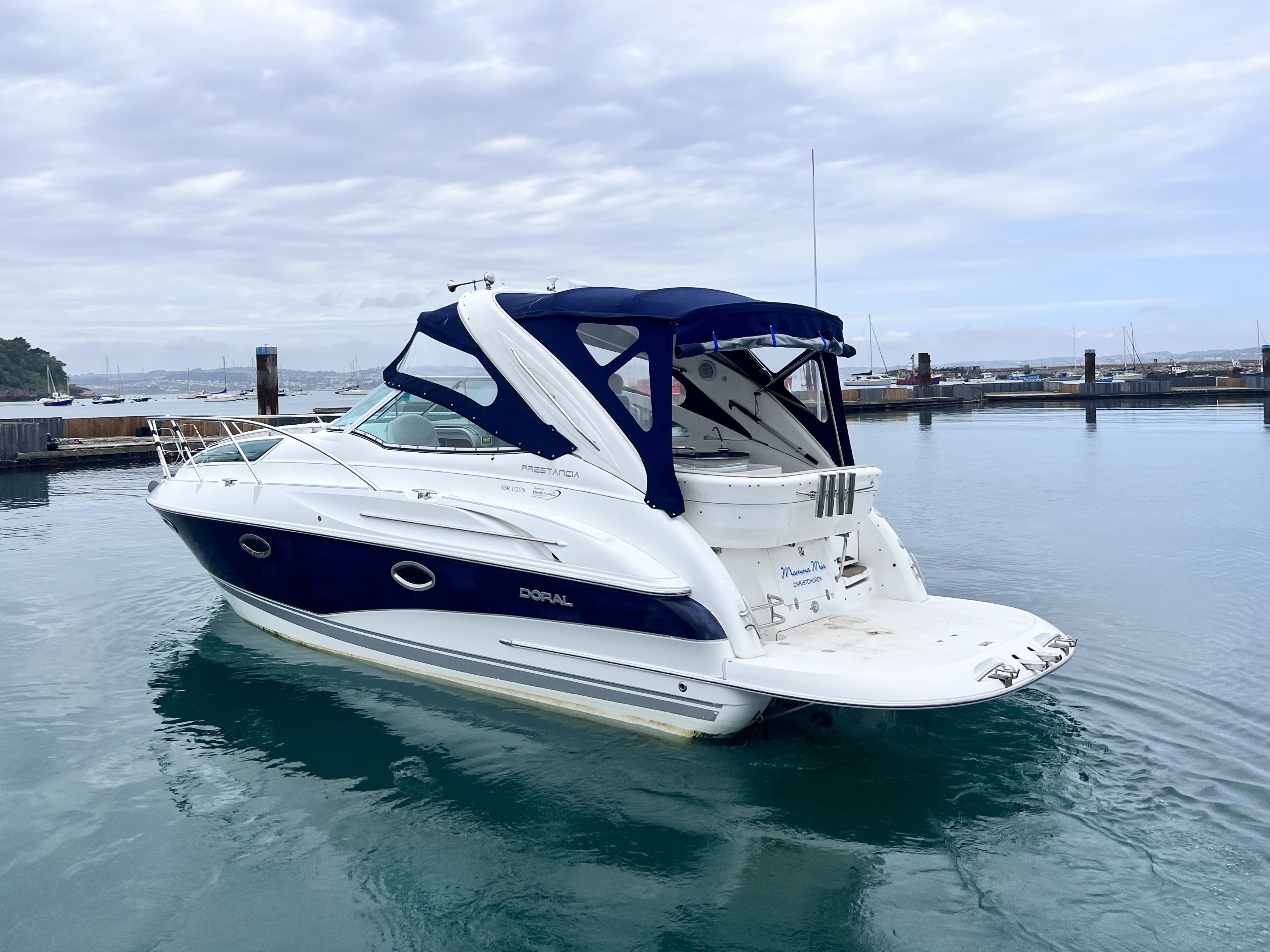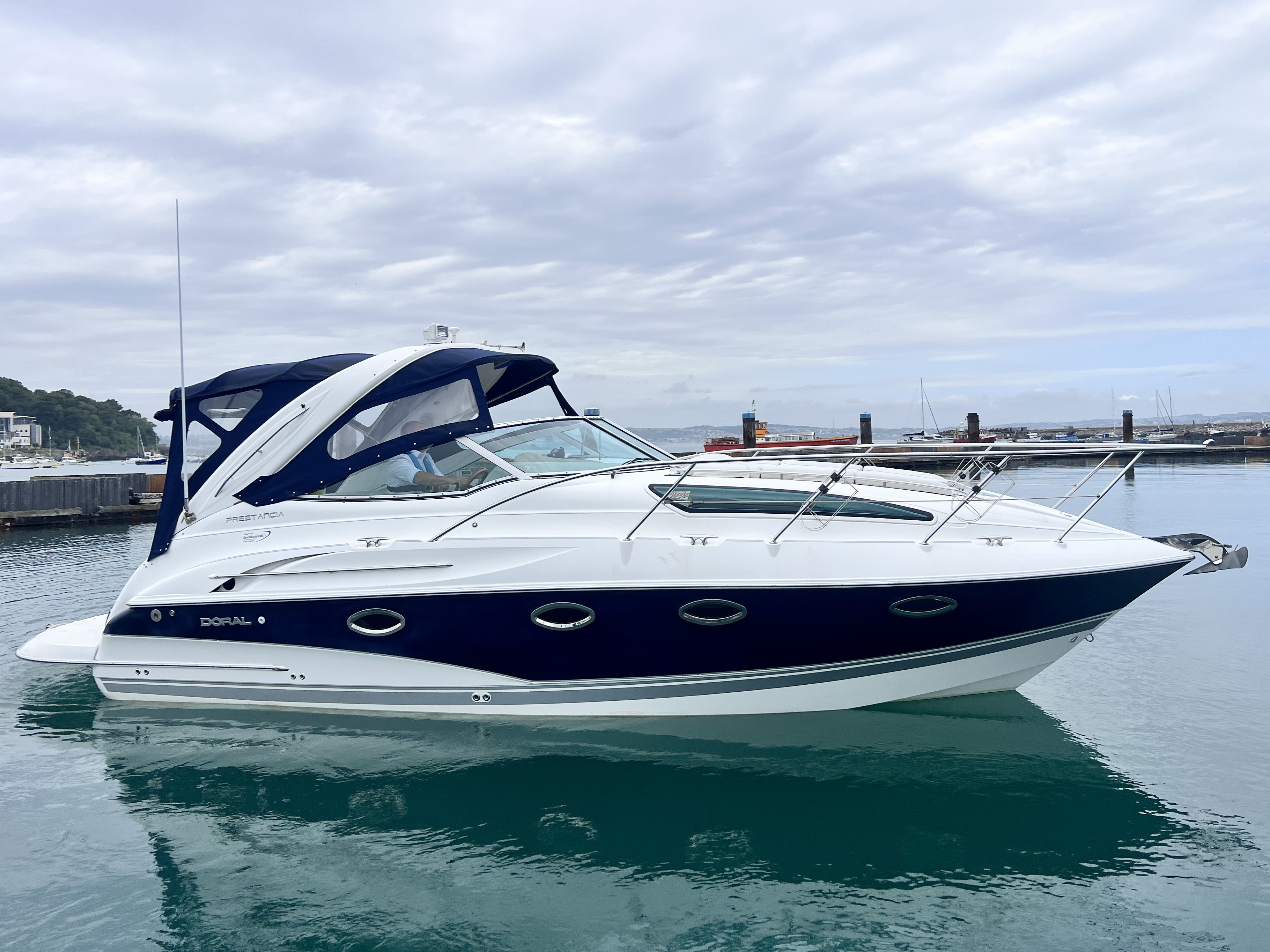 2005 Doral Prestancia - 'More than just a powerful and agile luxury cruiser.' This a fine example of these well built, elegant sports cruisers offering accommodation for five, a large and comfortable cockpit and well thought out galley. Powered by twin Volvo Penta D3-160 engines, she has had comprehensive servicing and maintenance in her current ownership. This is a boat that offers plenty in a neat package with everything ready to go for the season.