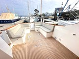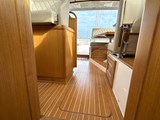The spacious saloon includes a fully equipped galley above deck. As you relax, the full-width electric sunroof opens, allowing sunlight to flood the space, while panoramic sea views surround you through all-round windows.
