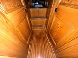 Pair of bi-fold Varnished teak doors allow access between cockpit and saloon