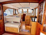 The forward-facing seating for two guests on the port side has the ability to rotate to face aft. When the port seat is rotated to face aft, this form part of a U-shaped seat on the port side of the saloon, with seating for four guests
